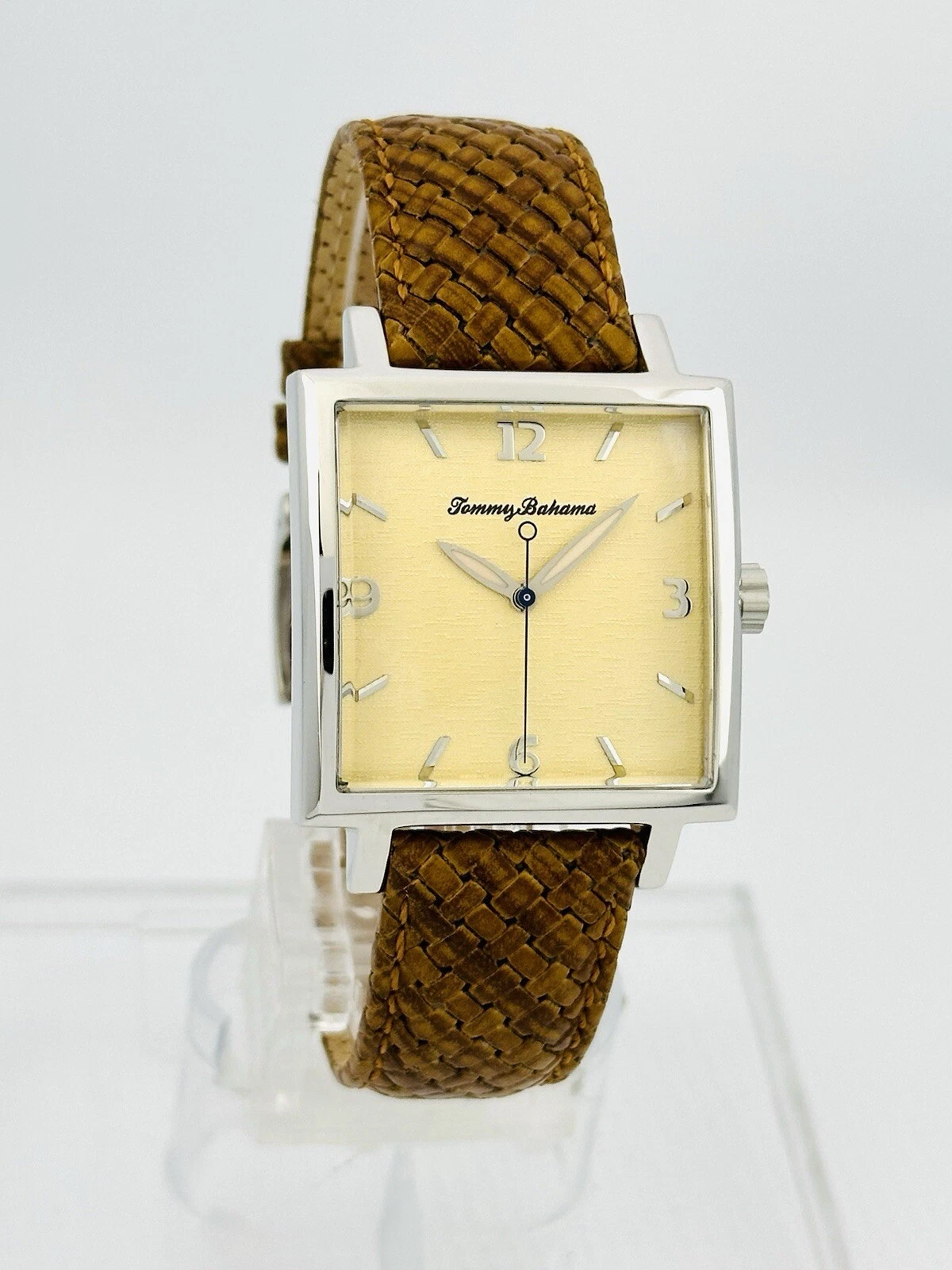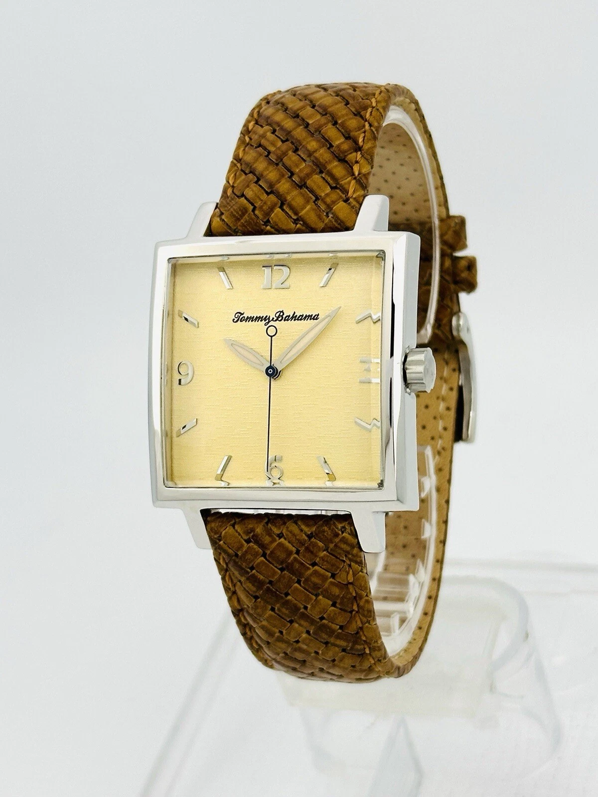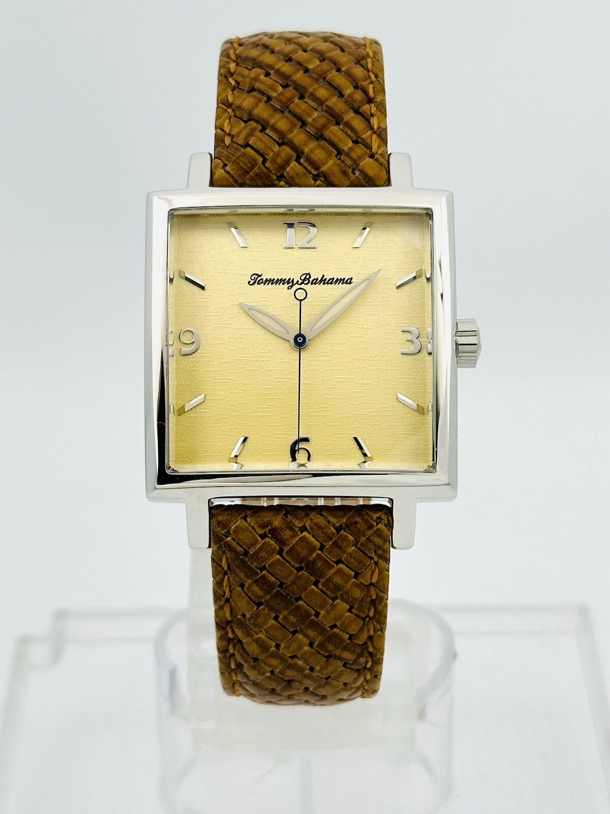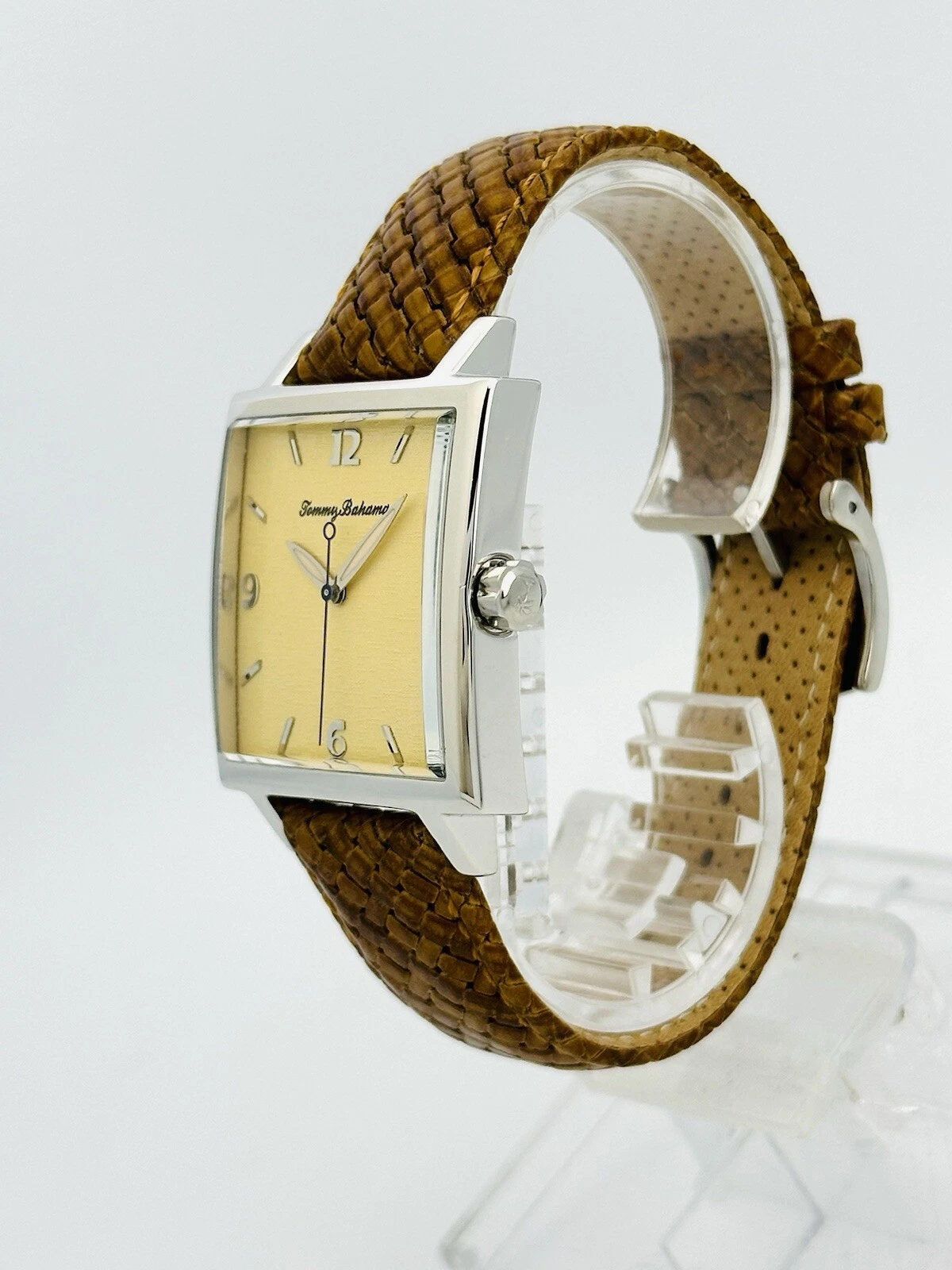Tommy Bahama TB1000 Men's Square Shape Pineapple Dial Amber/Brown Leather Watch