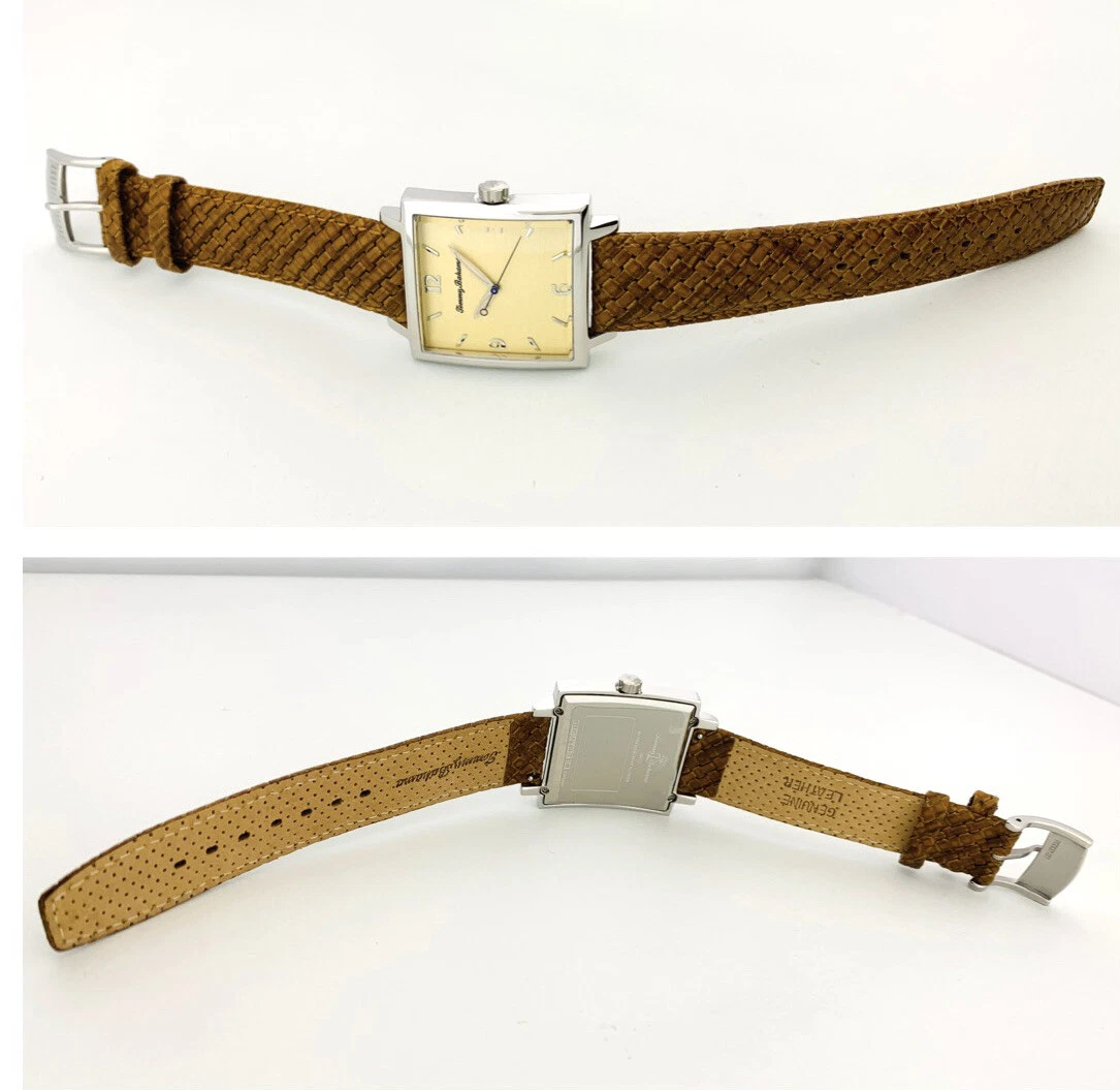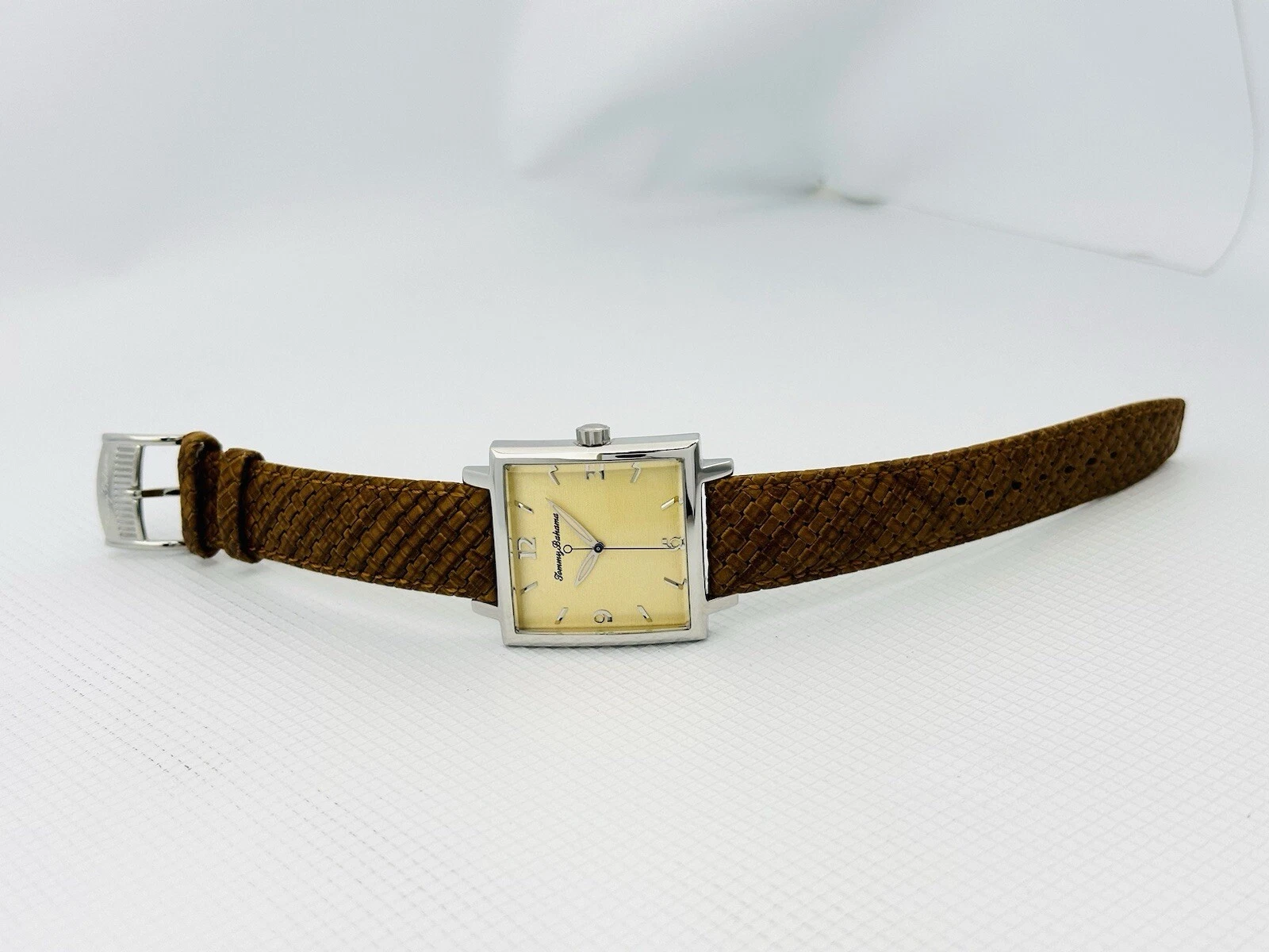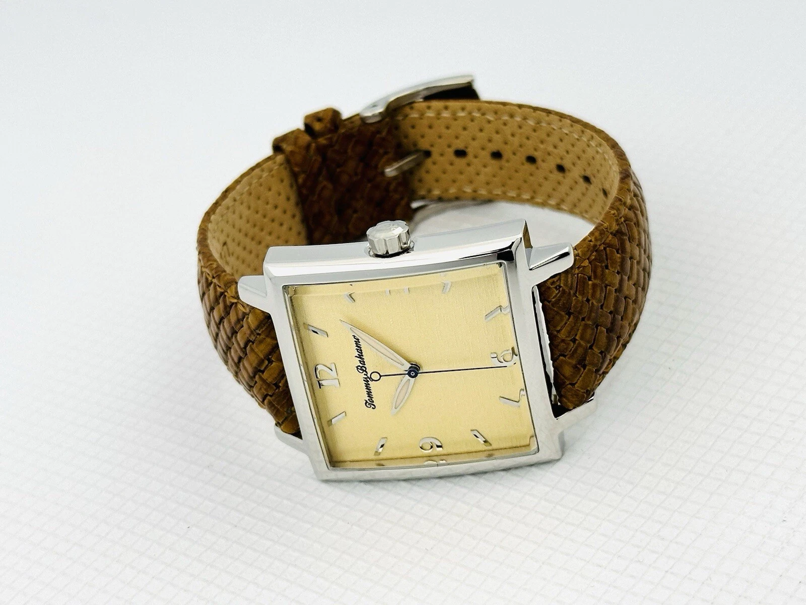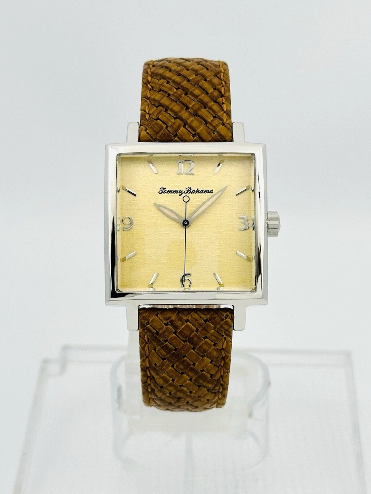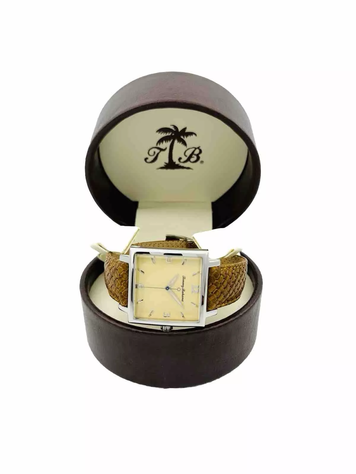 Tommy Bahama TB1000 Men's Square Shape Pineapple Dial Amber/Brown Leather Watch