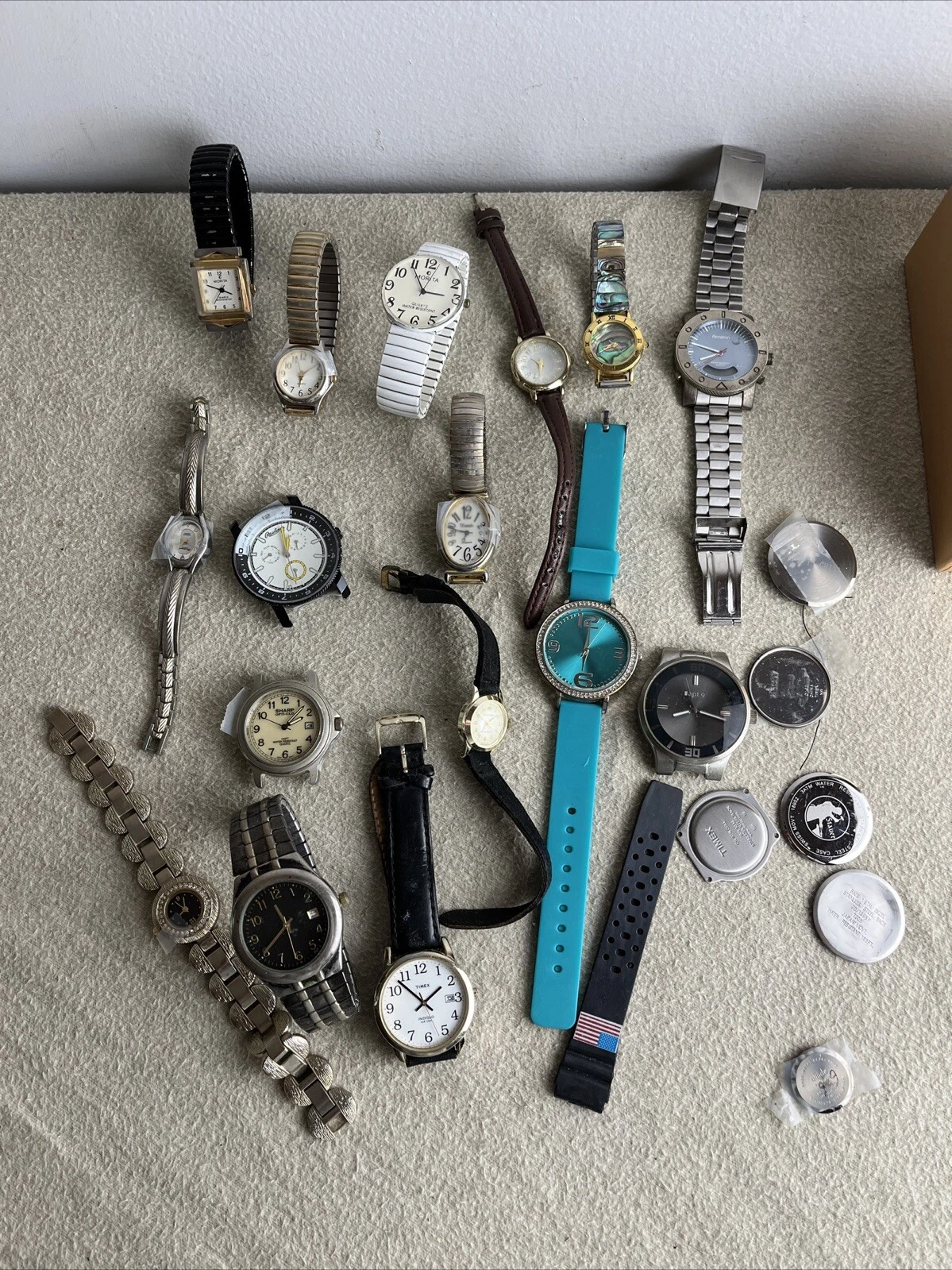A lot of 15 watches for parts repair Timex Sharp Rawlings Armitron
