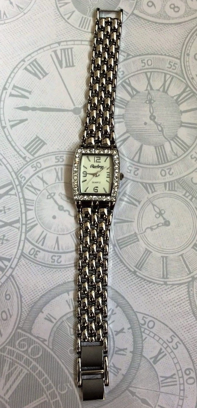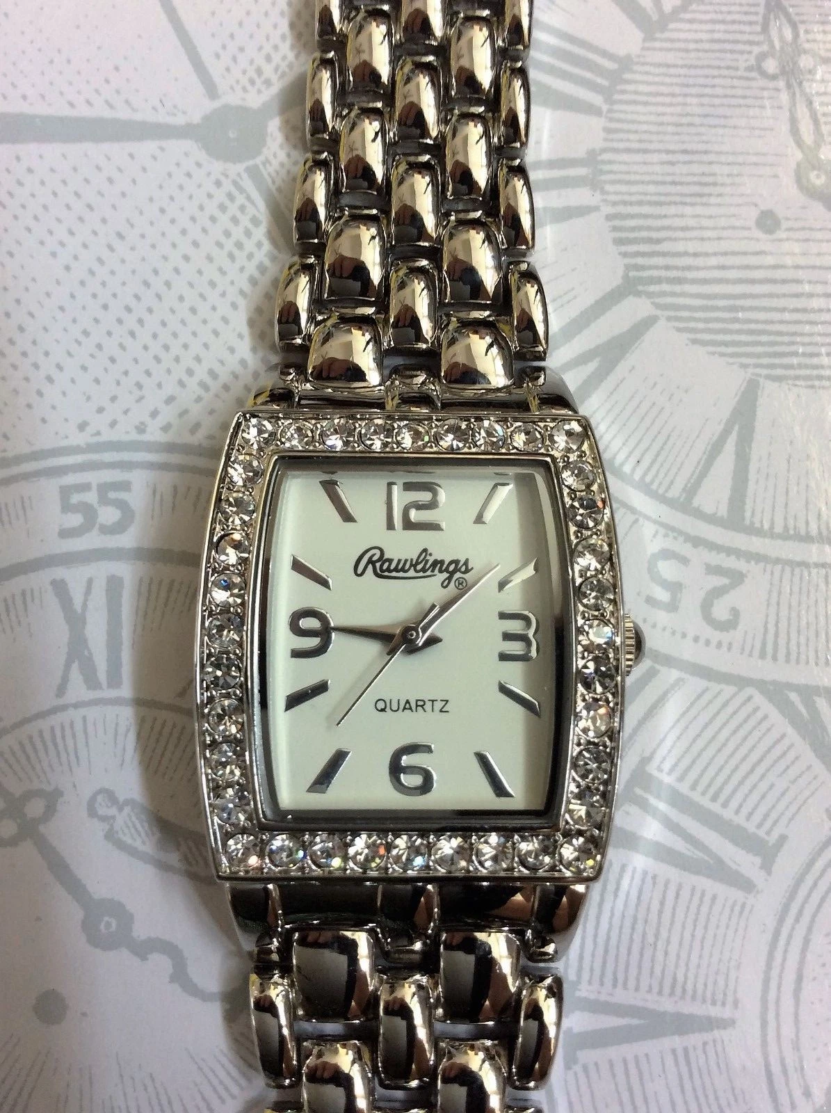 Rawlings Women's Crystal Watch Rectangle White Dial on Linked Band 77006