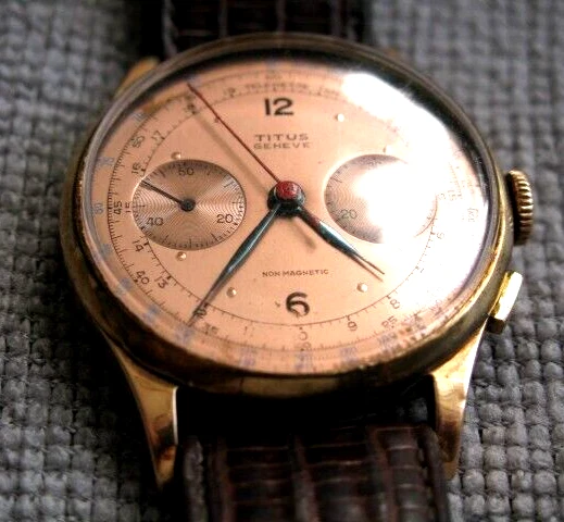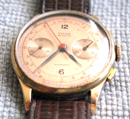 TITUS 18K CHRONO MENS 37MM WATCH W/OMEGA SWISS MADE BAND