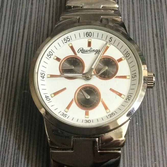 Rawlings Men's Watch Day Date Chrono Dial Stainless Steel Case & Linked Band New