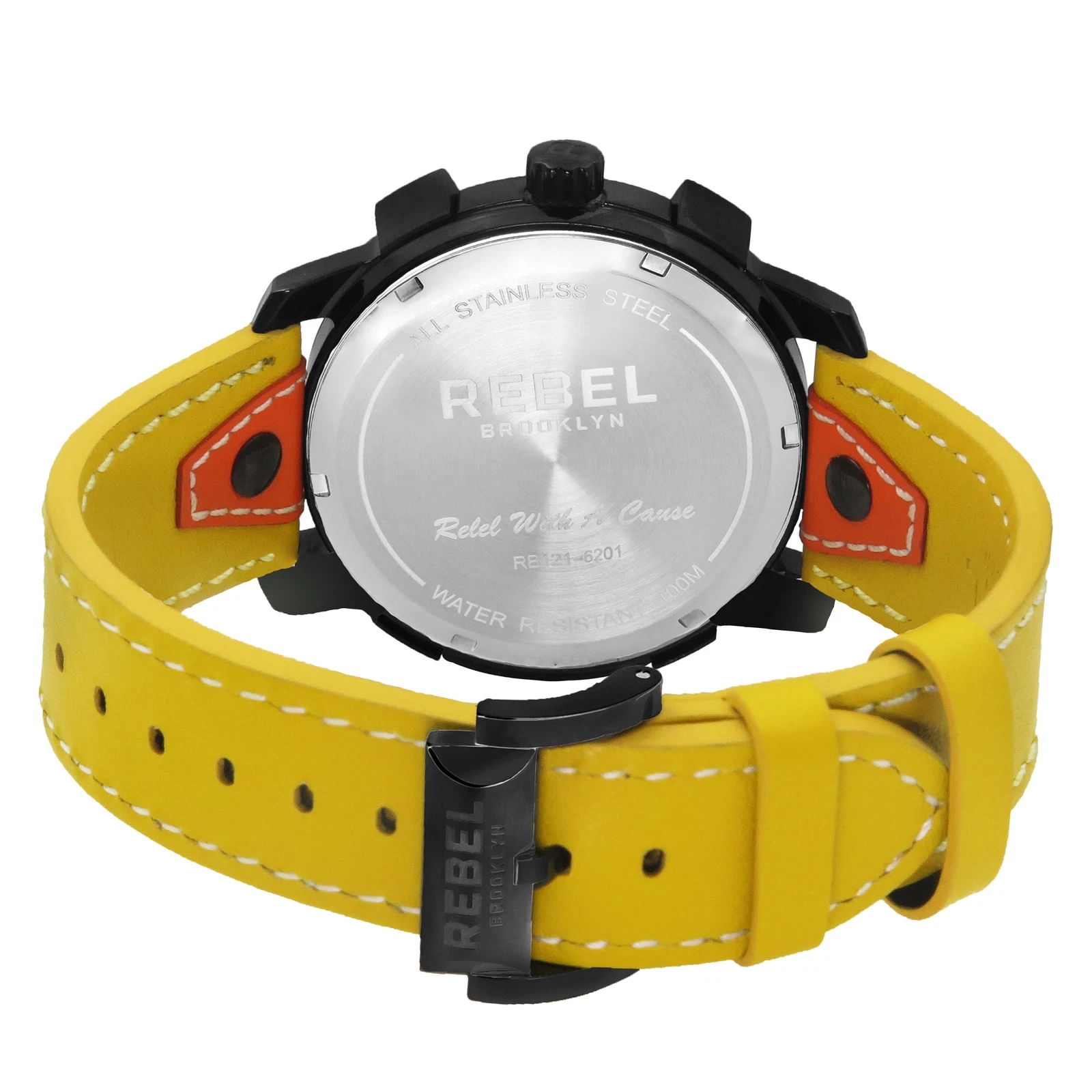 Rebel Men's RB121-6201 Weeksville Black IP Steel Yellow Leather Wristwatch