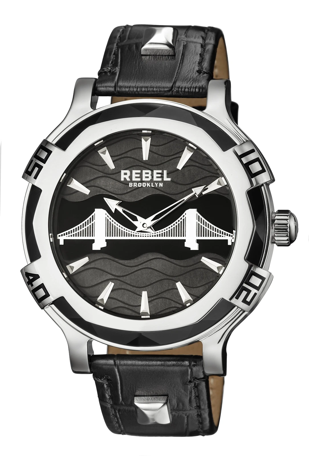 Rebel Men's RB102-4071 Brooklyn Bridge Black Dial Black Leather Wristwatch