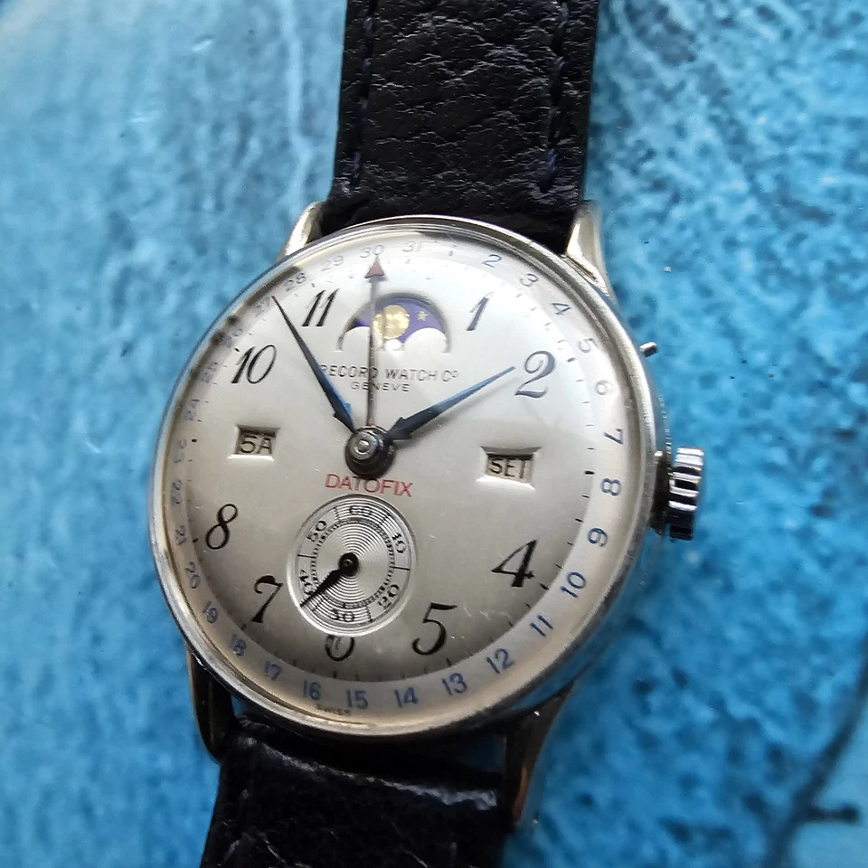 Vintage Record Datofix Moonphase Hand-Winding Men's Wristwatch