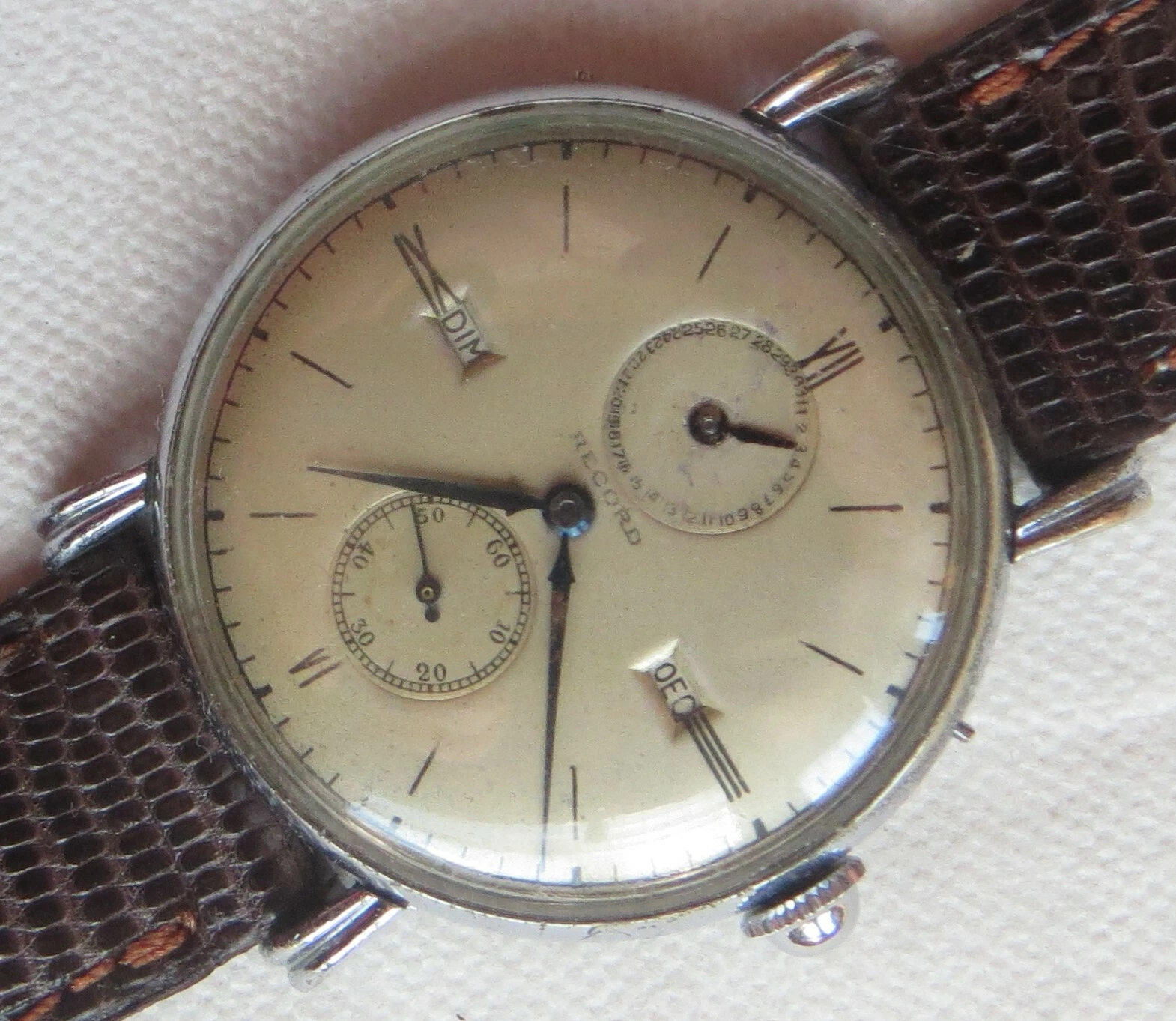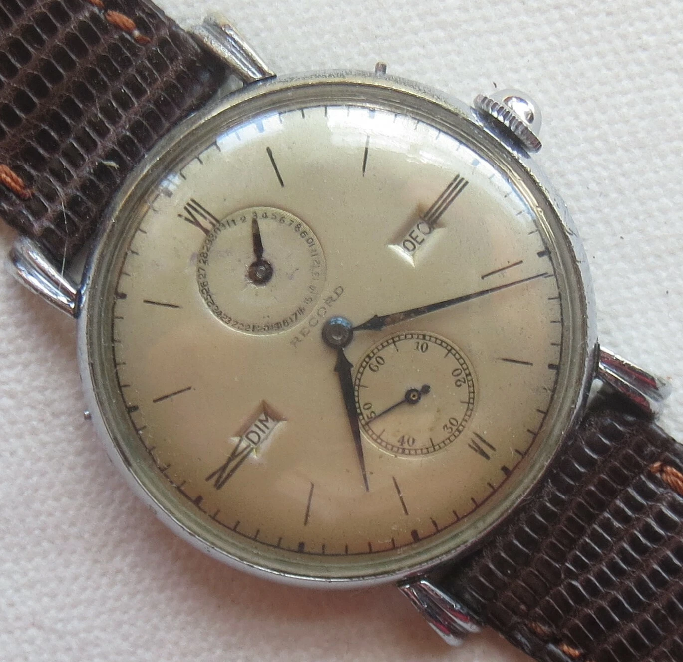 Record Triple Date mens wristwatch nickel chromiun case load manual all original
