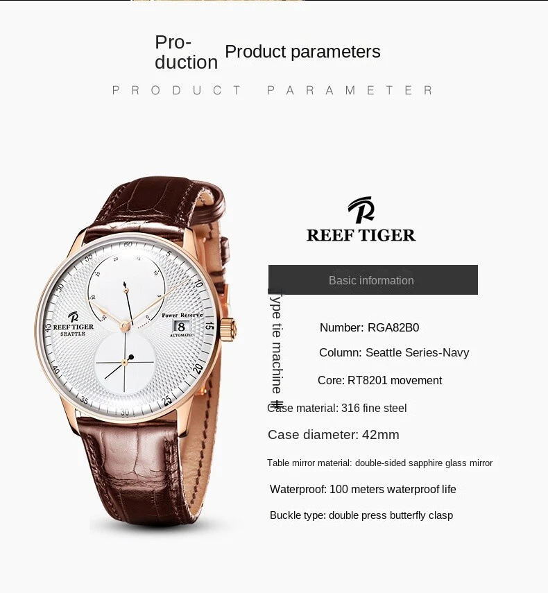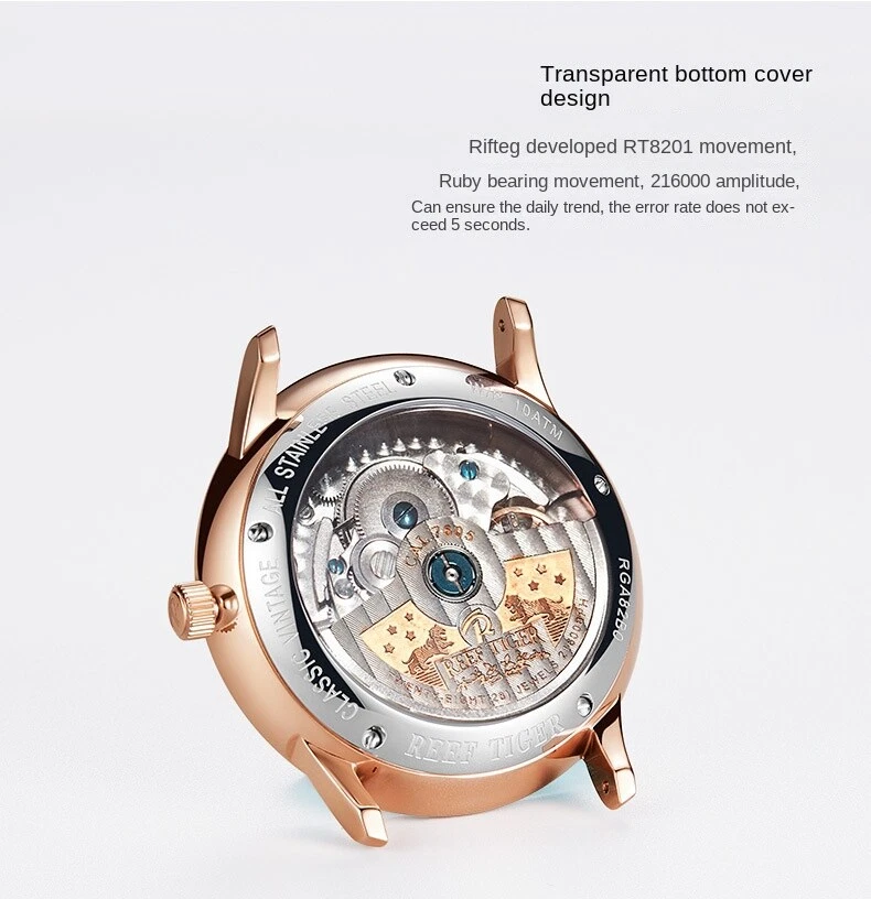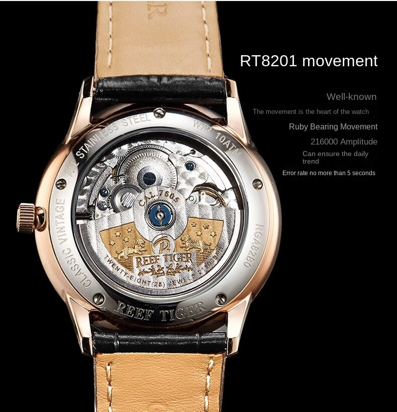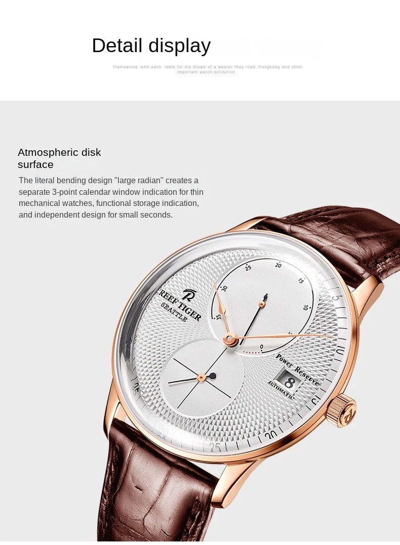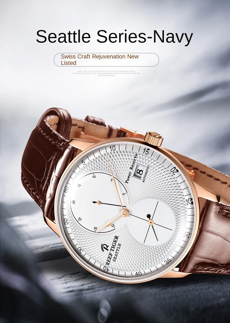Reef Tiger Men's Business Mechanical Watch Curved Surface Popular Business Watch