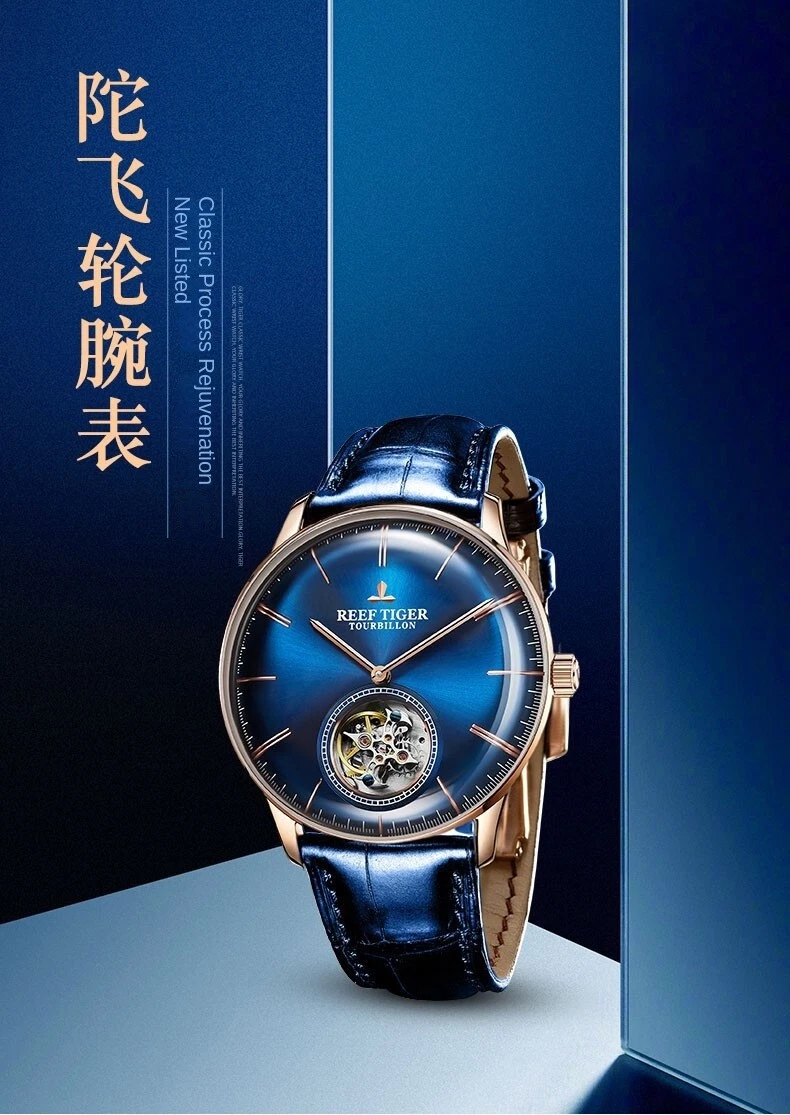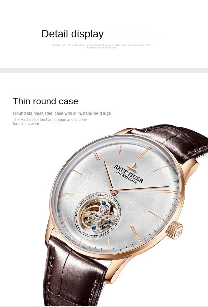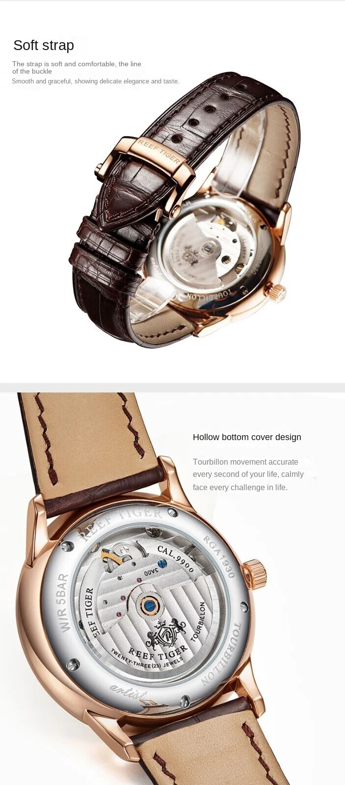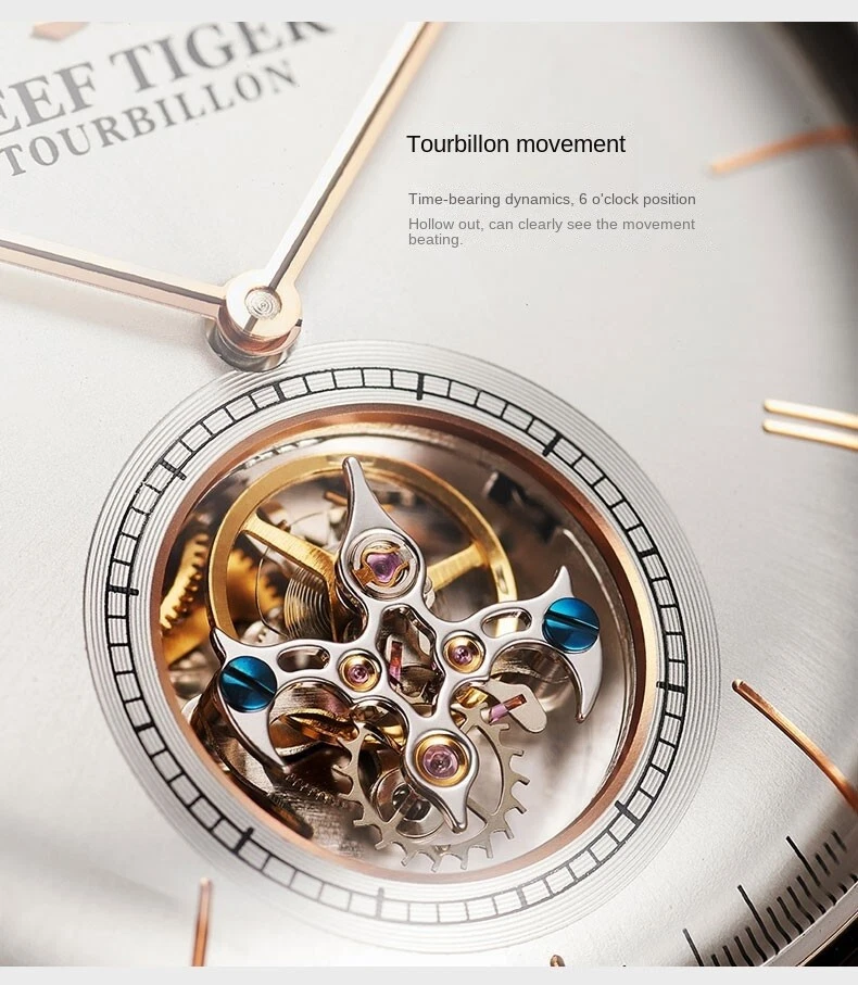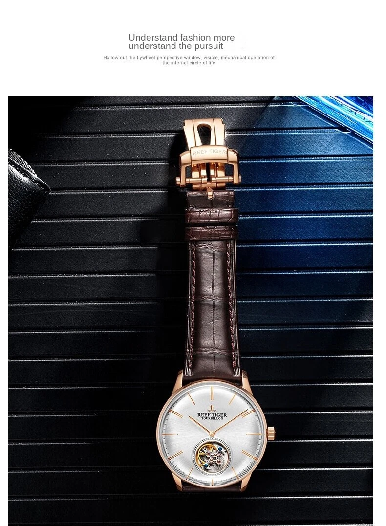 Reef Tiger Men's Tourbillon Mechanical Watch Top High Quality Wrist Watch