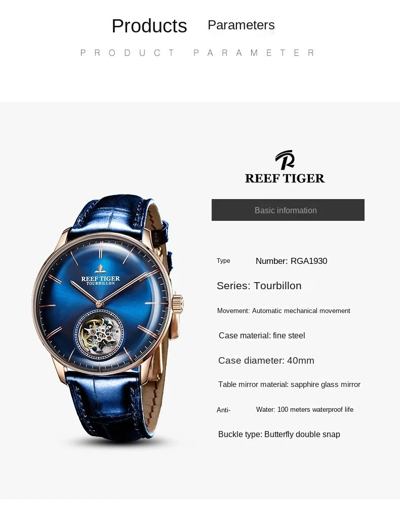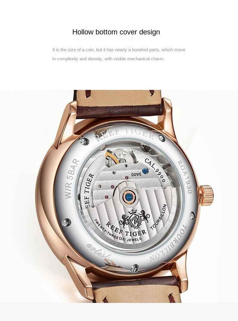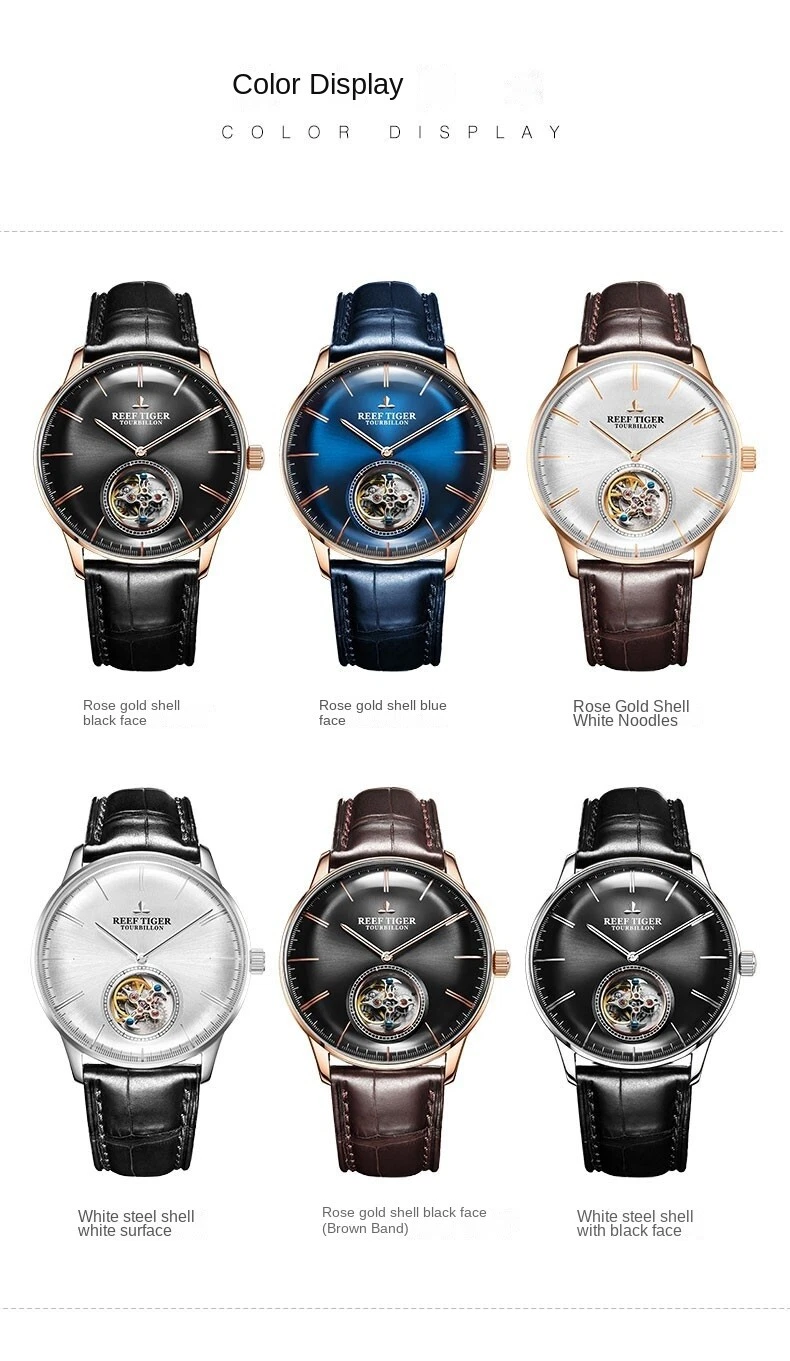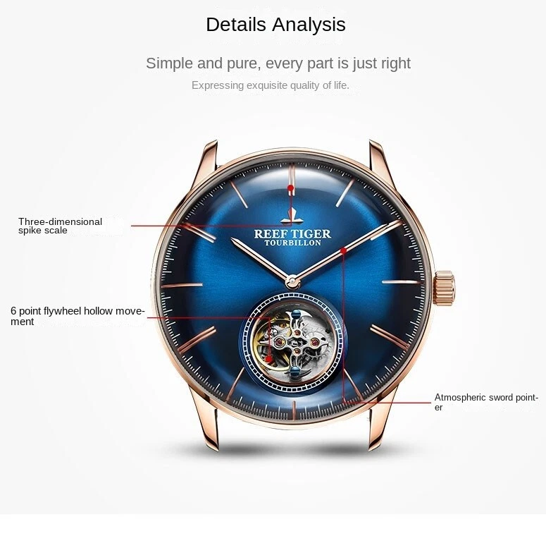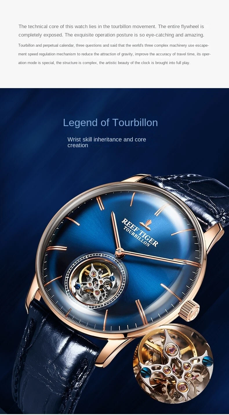 Reef Tiger Men's Tourbillon Mechanical Watch Top High Quality Wrist Watch