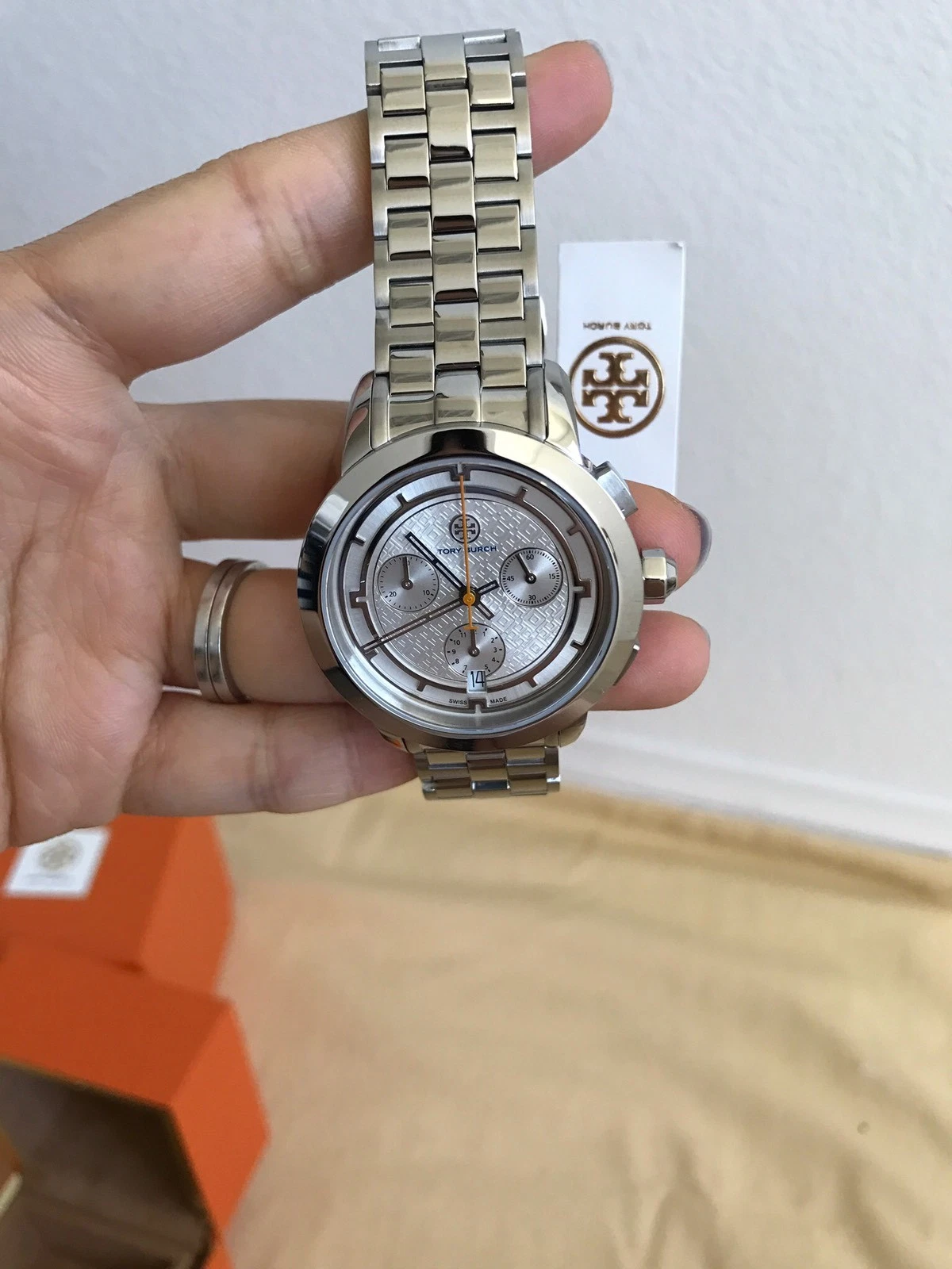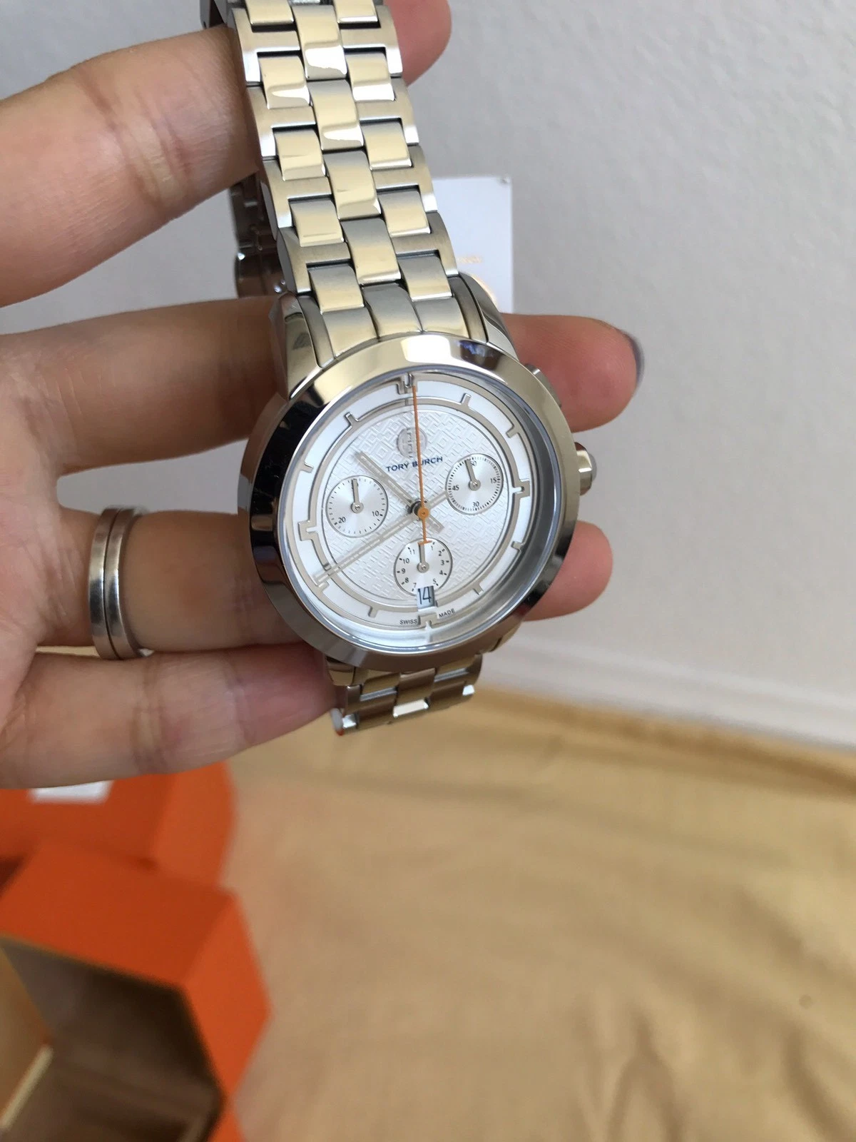 Tory Burch Silver Tone Stainless Chronograph Women's 37mm Watch TRB1001