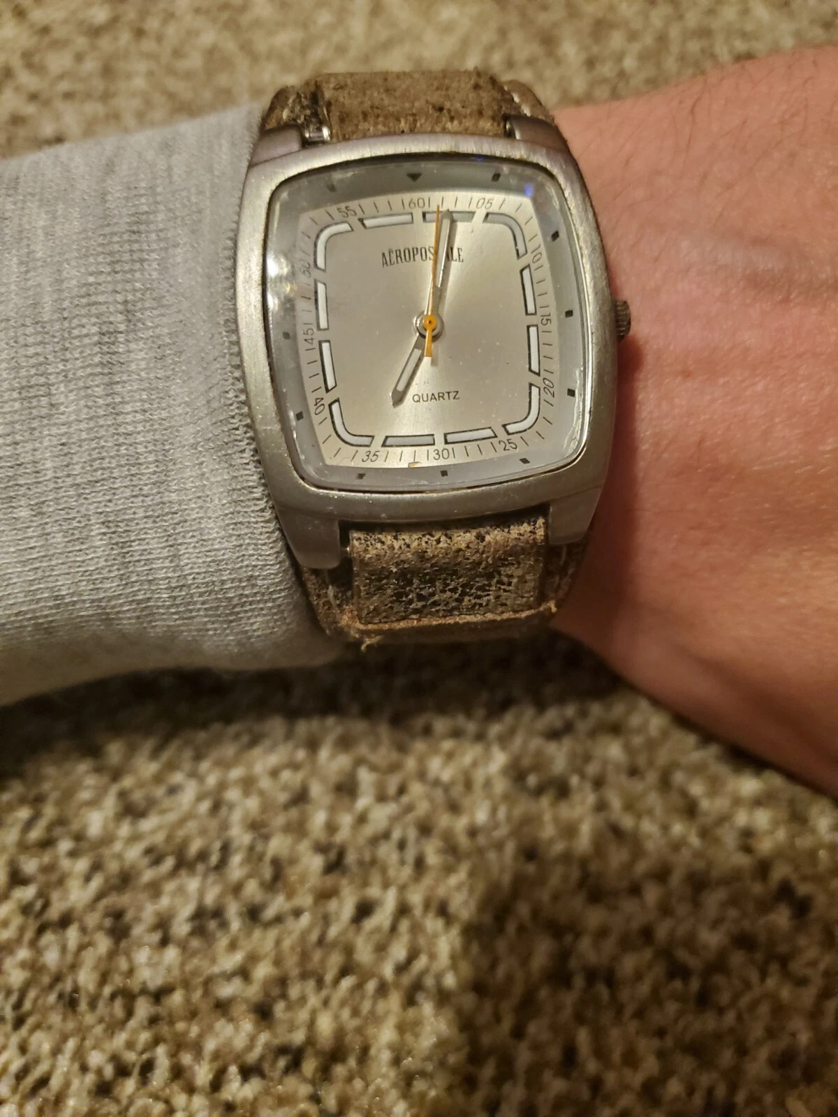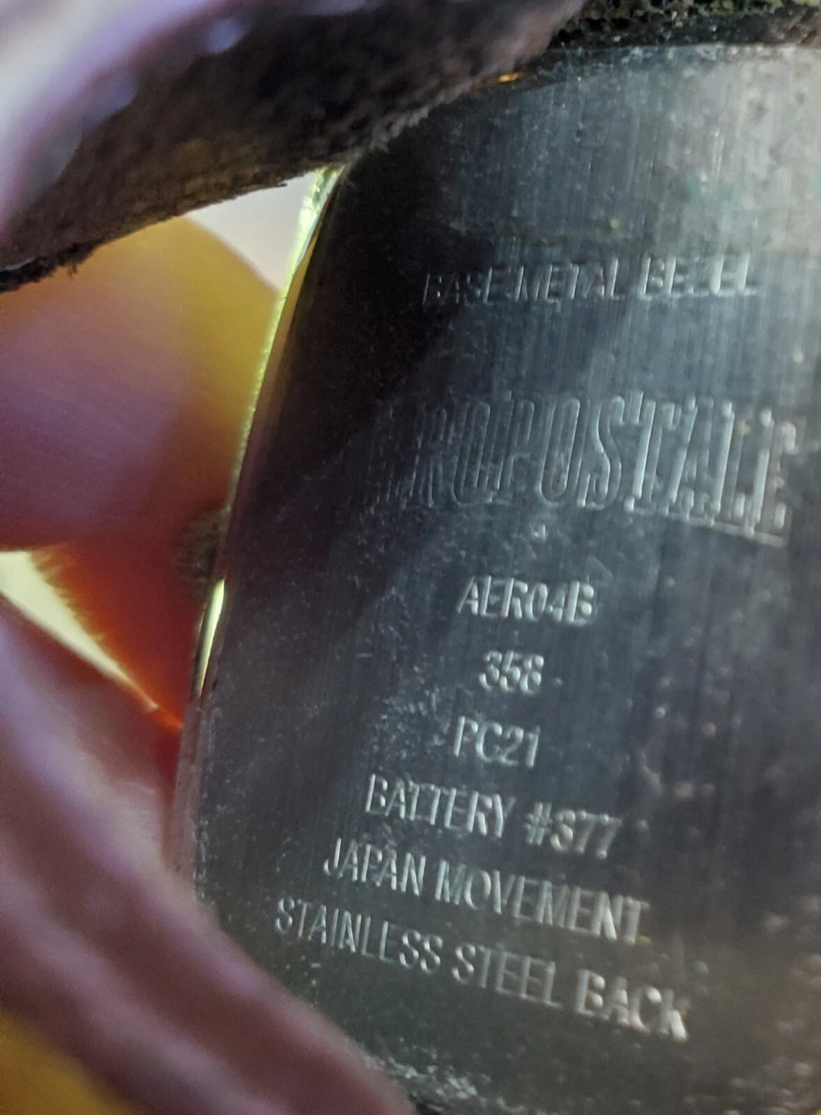 Aeropostale Mens Square Analog Quartz Watch with Brown Leather Strap - Tested
