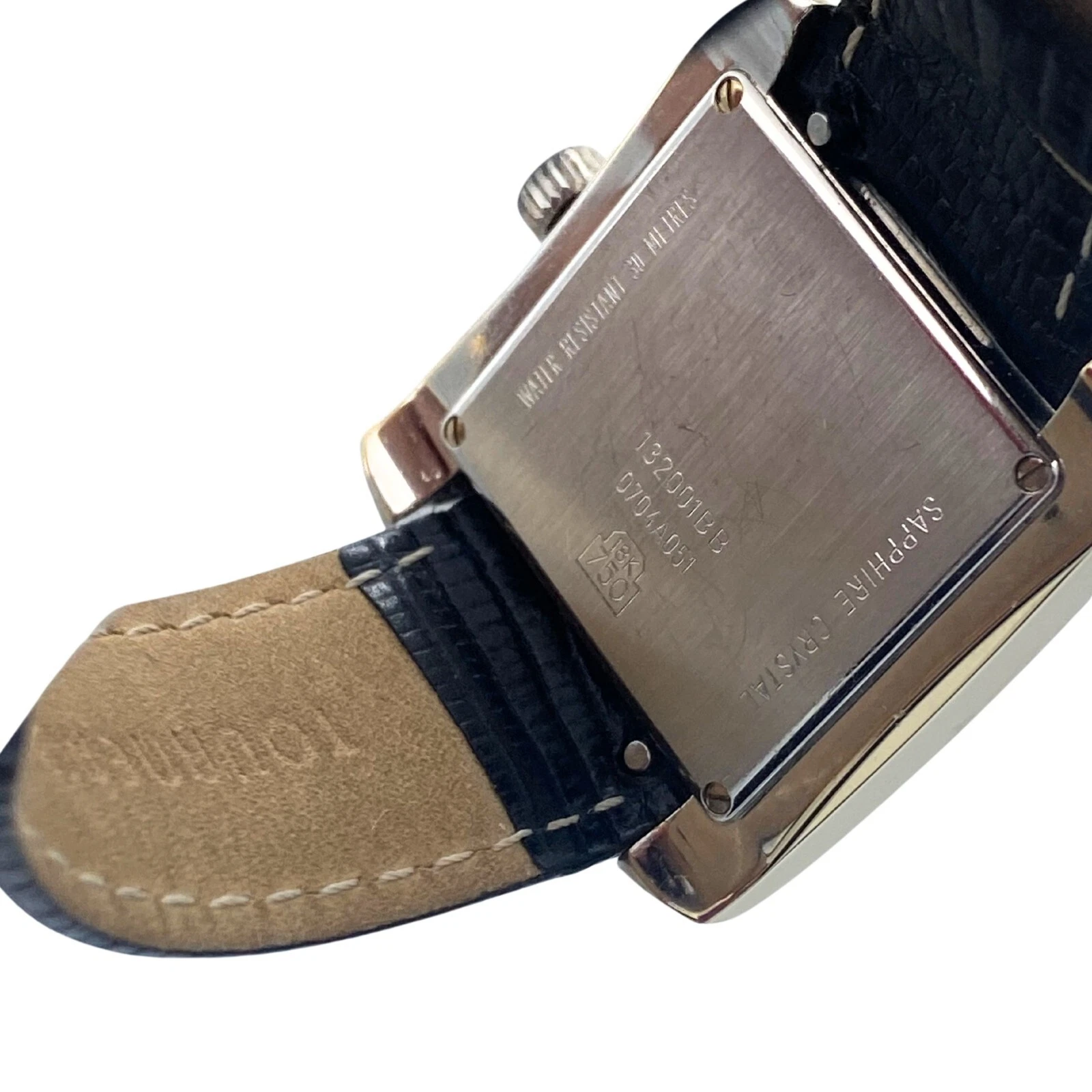 Tourneau Ladies 18k White Gold tank watch with diamond bezel and MOP dial