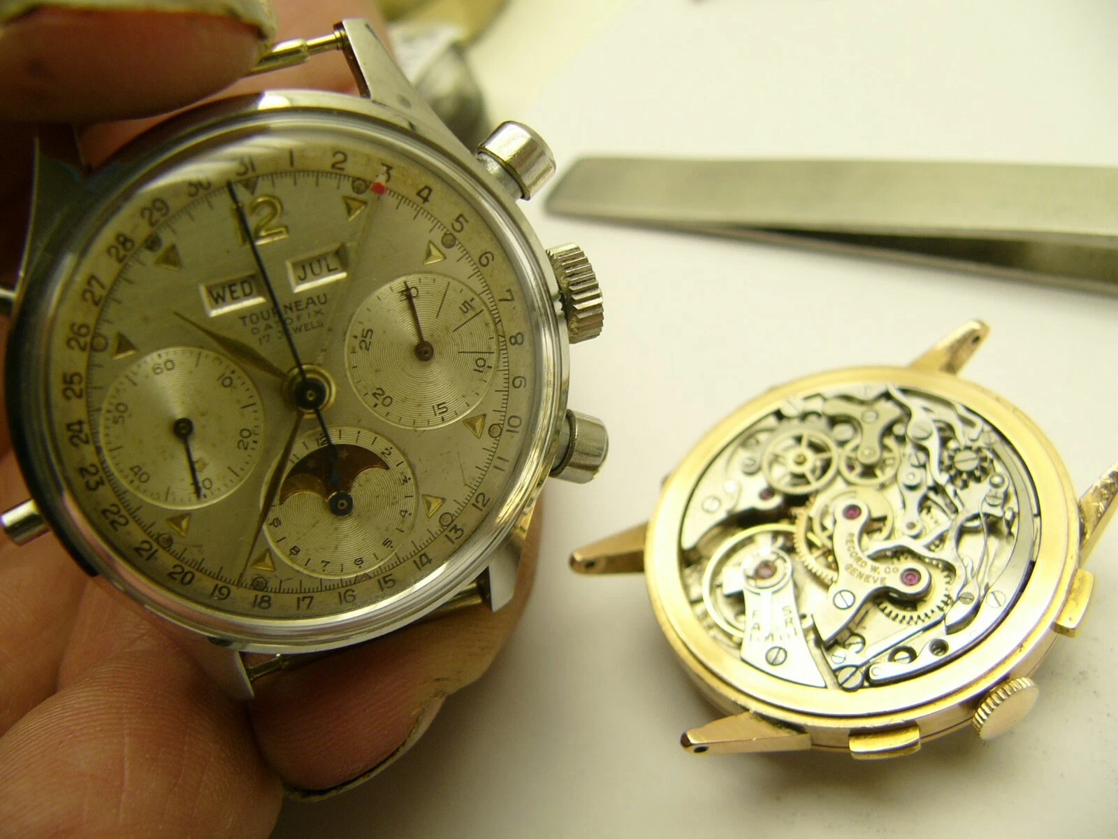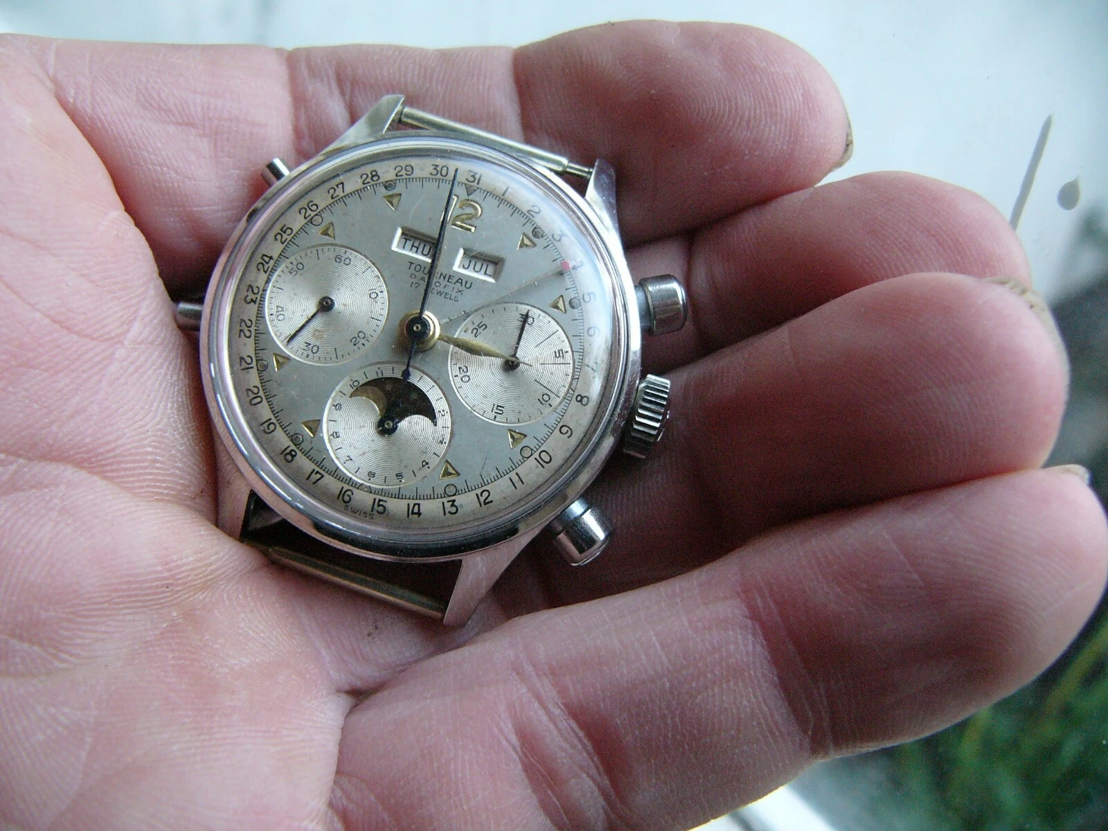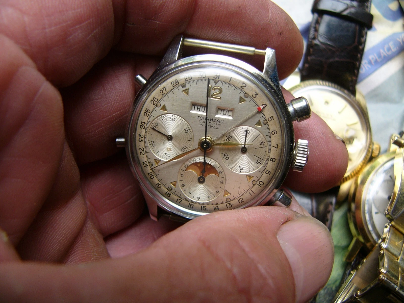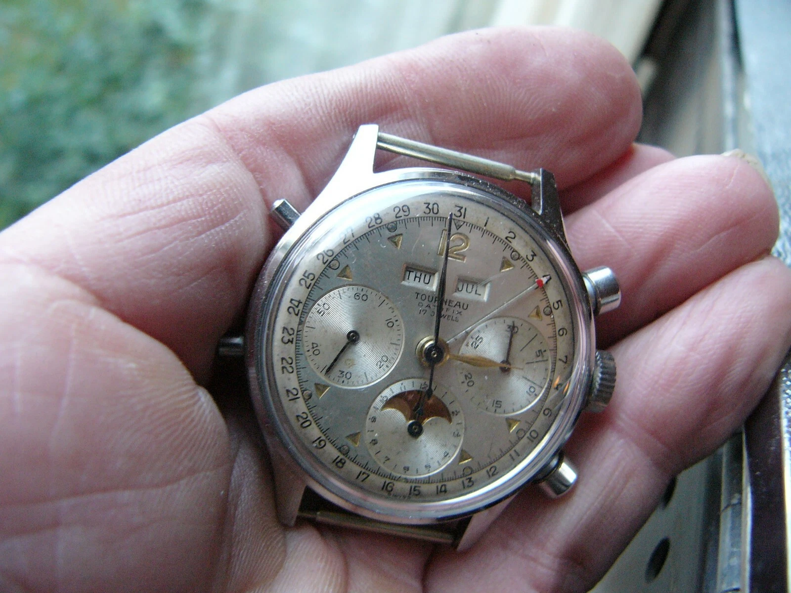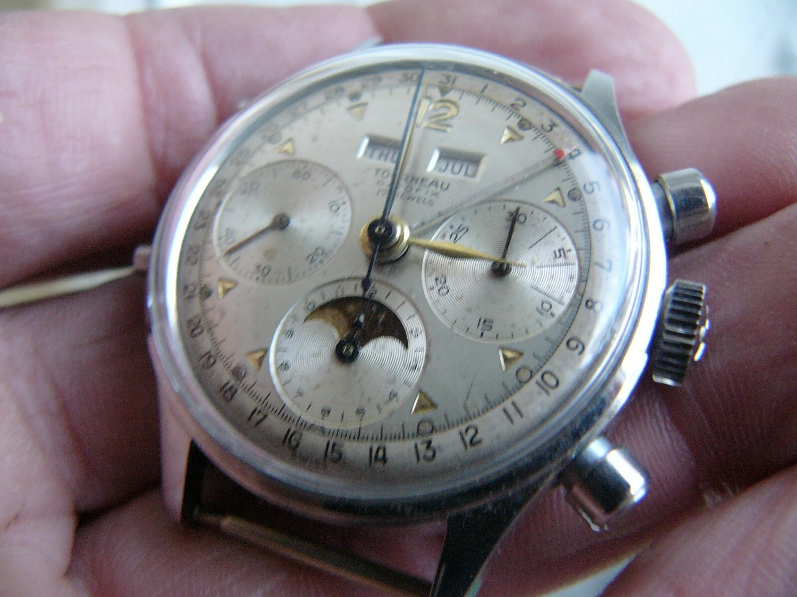 Tourneau Datofix Valjoux 88 all  S/S screw back Chronograph tripledate moonphase