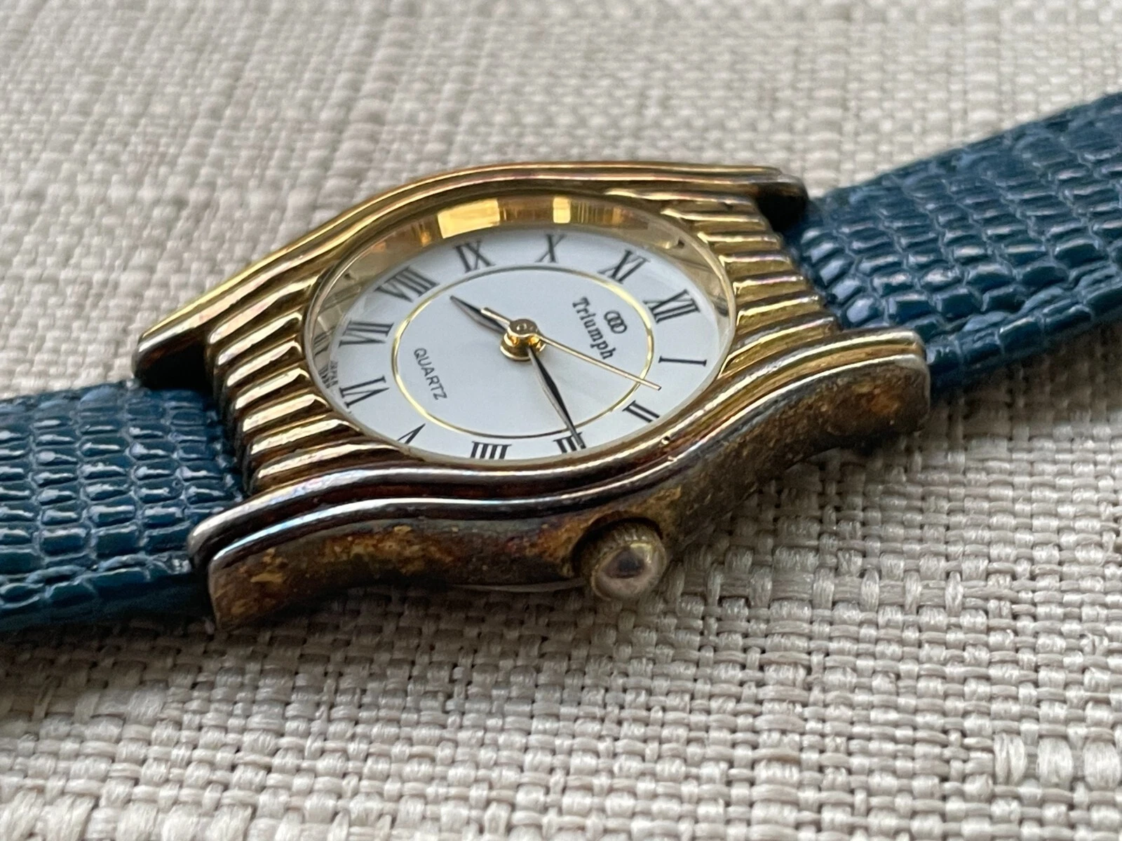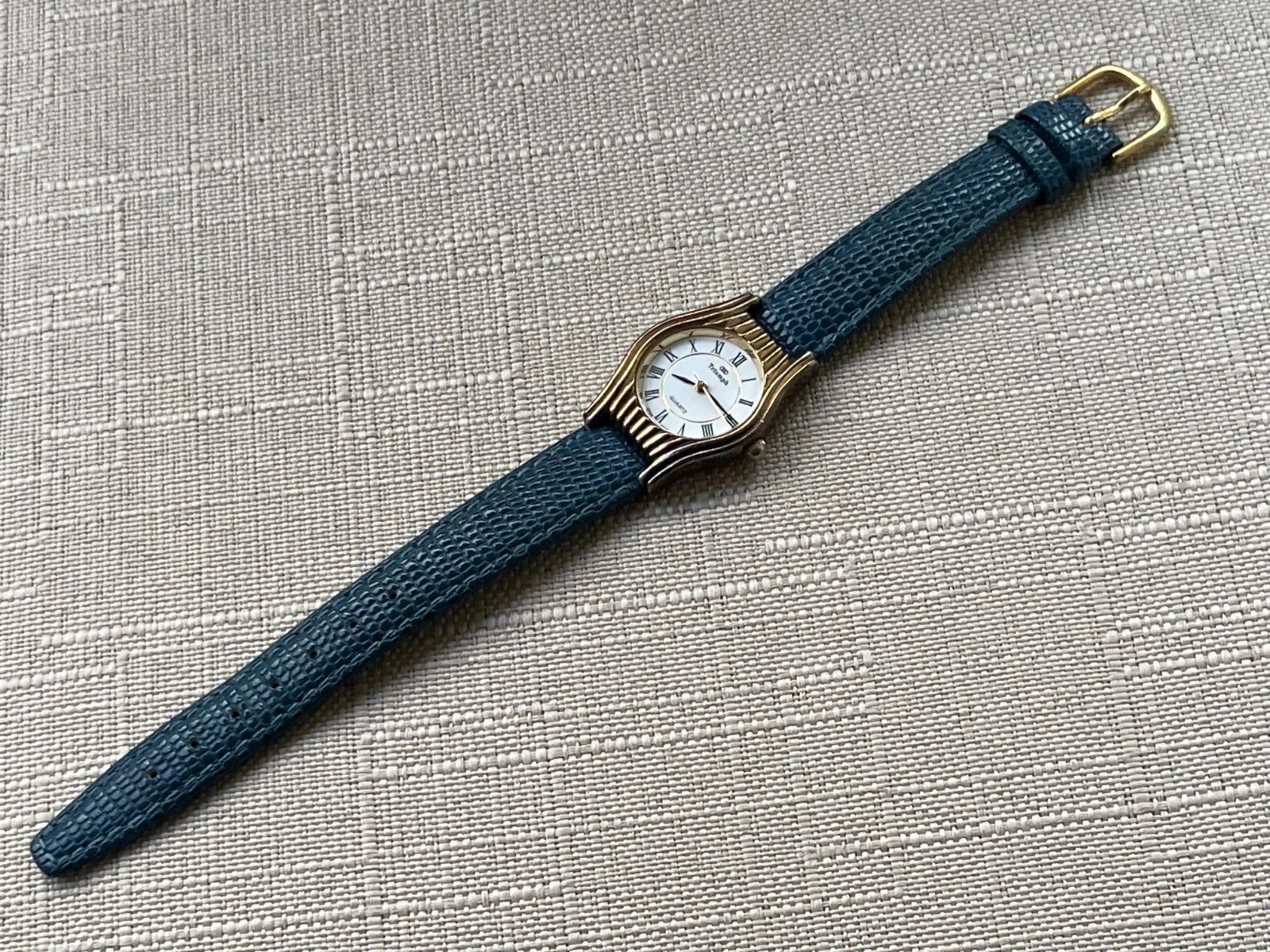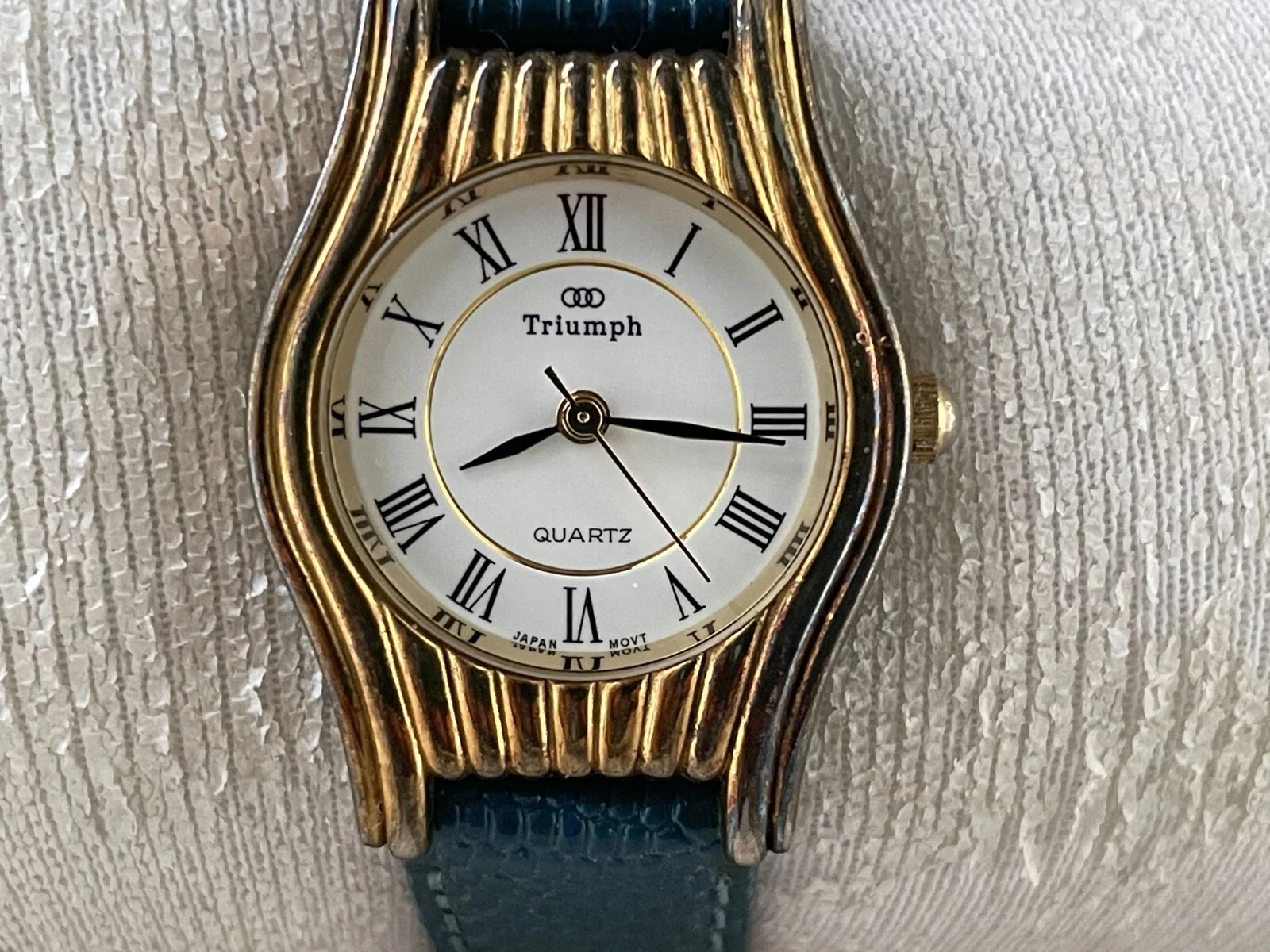 Vintage Triumph Ladies Wristwatch Blue Leather Band Japan Movement Analog Watch