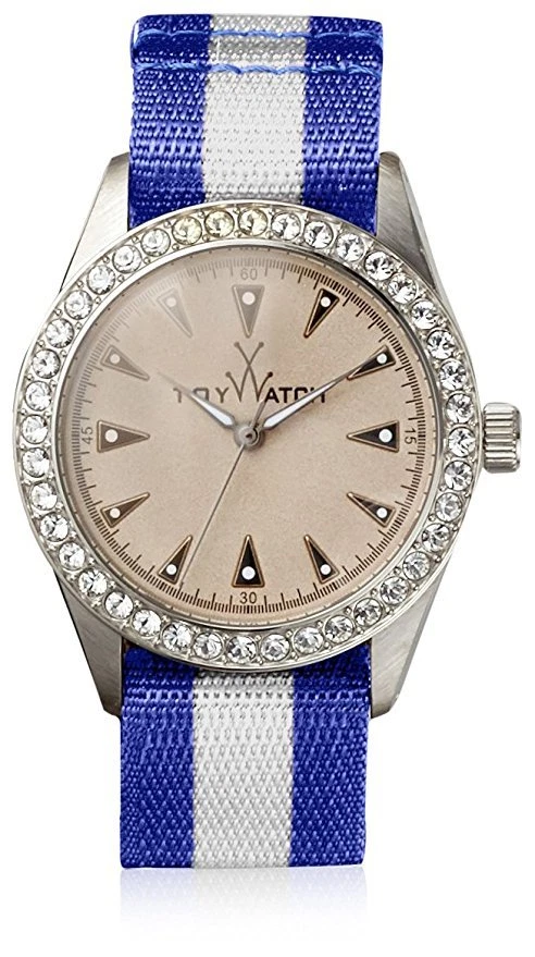 Toy Watch Vintage Women's Blue Grey Stripe Band VI08SL Swarovski Crystals 2703