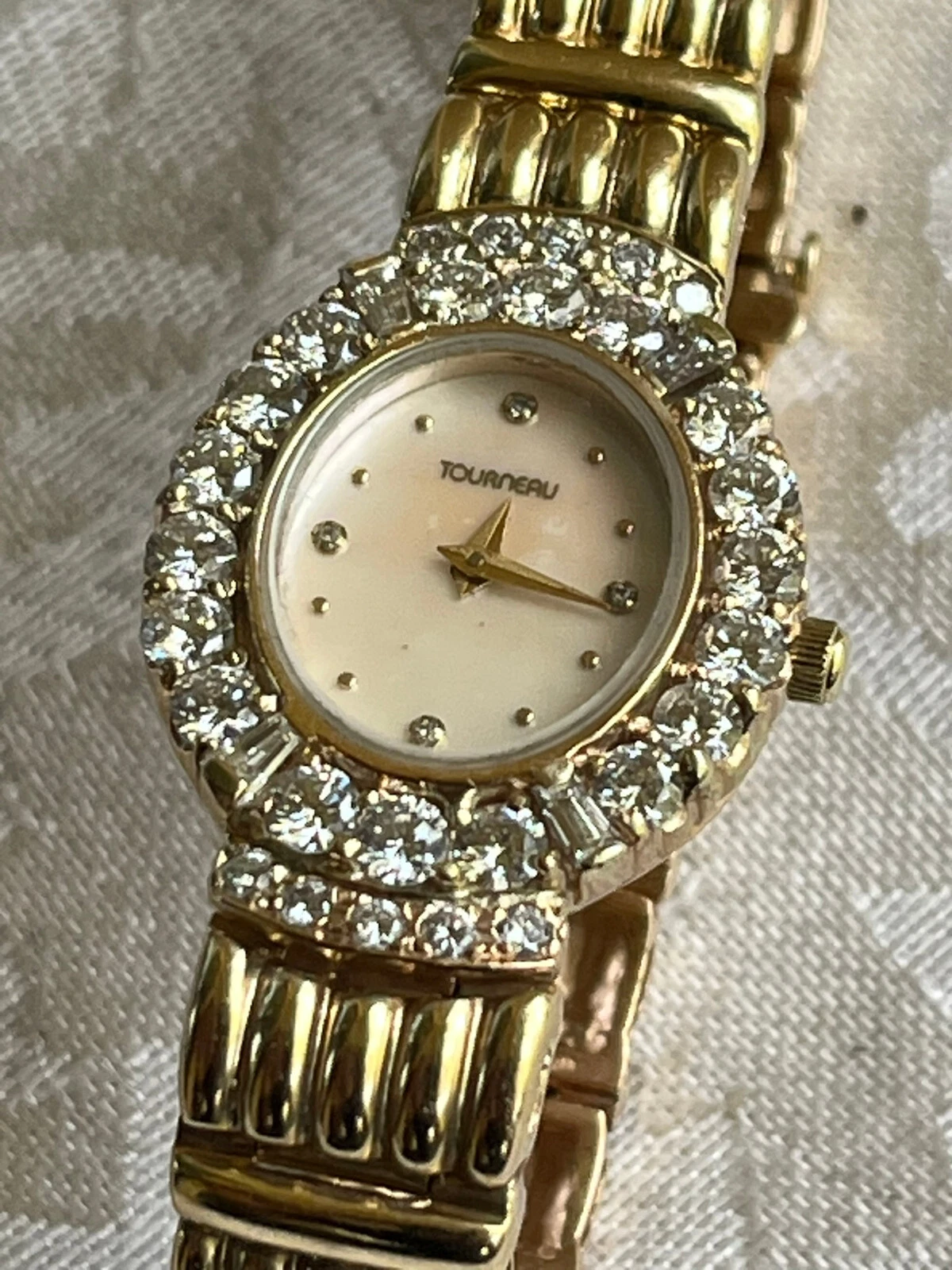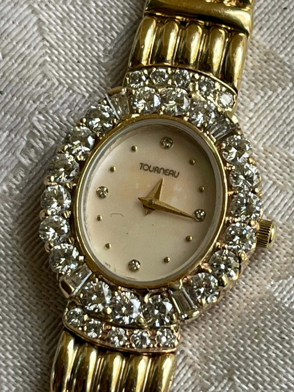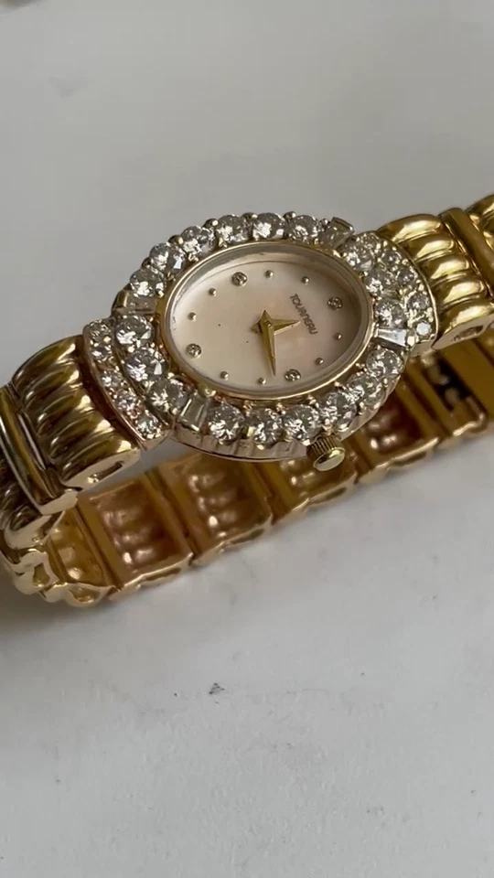 Tourneau 14K Solid Yellow Gold Watch & Solid Yellow Gold Band w 2.28 TCW Diamon