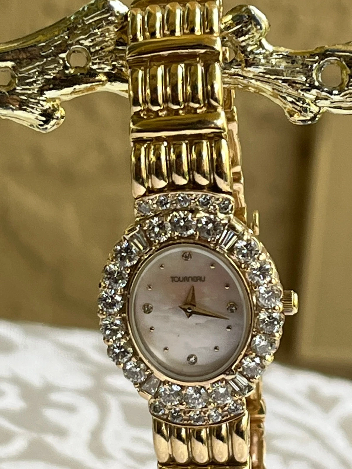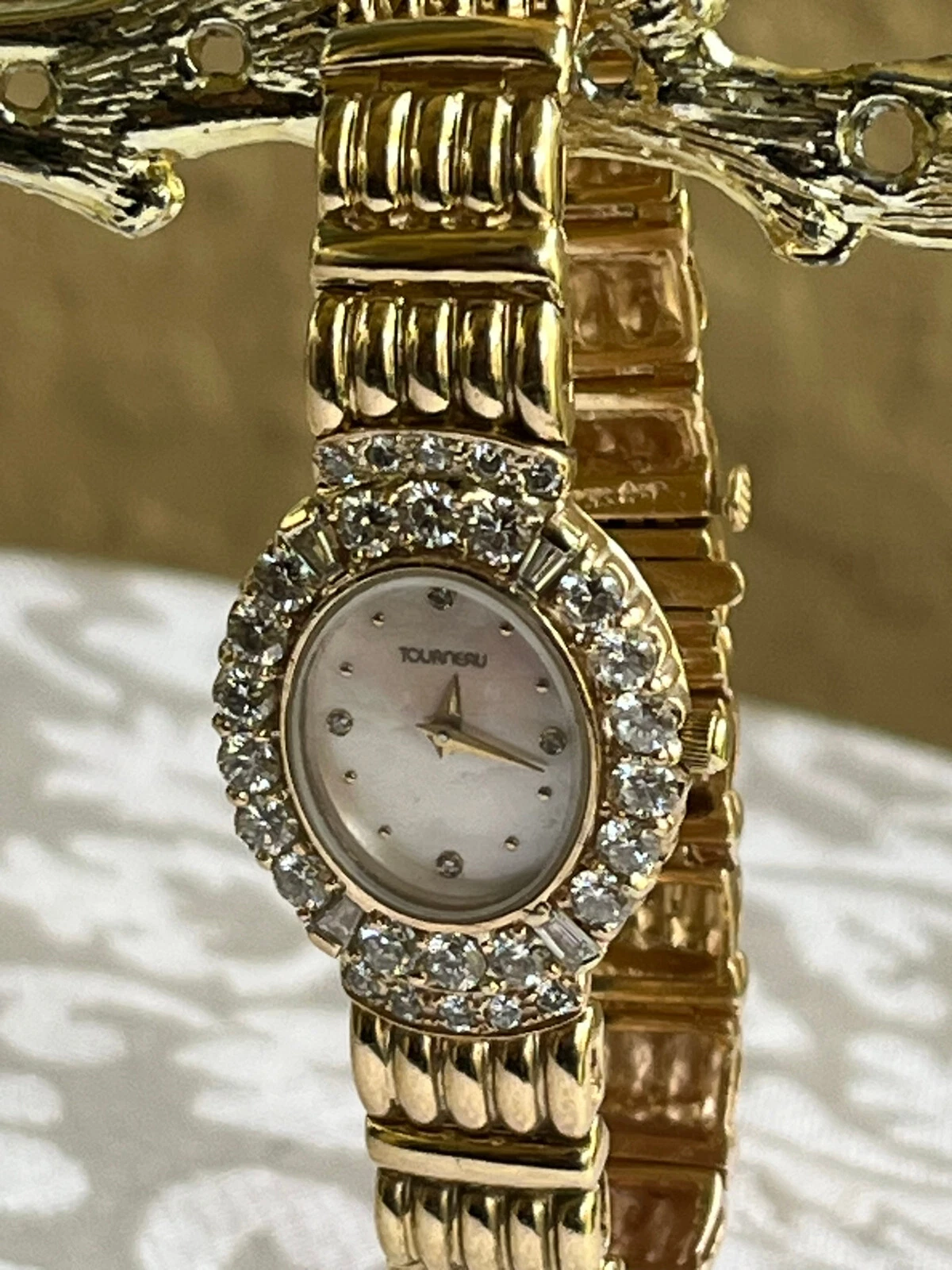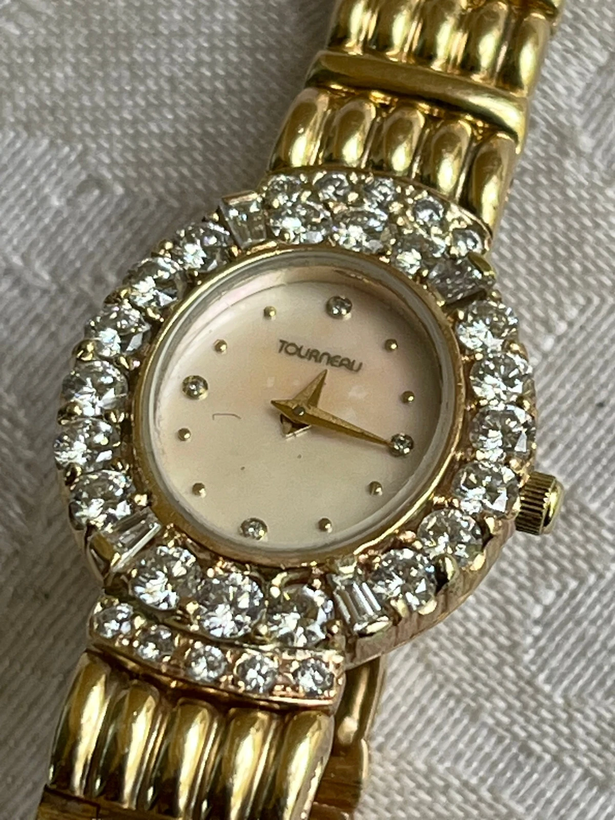 Tourneau 14K Solid Yellow Gold Watch & Solid Yellow Gold Band w 2.28 TCW Diamon
