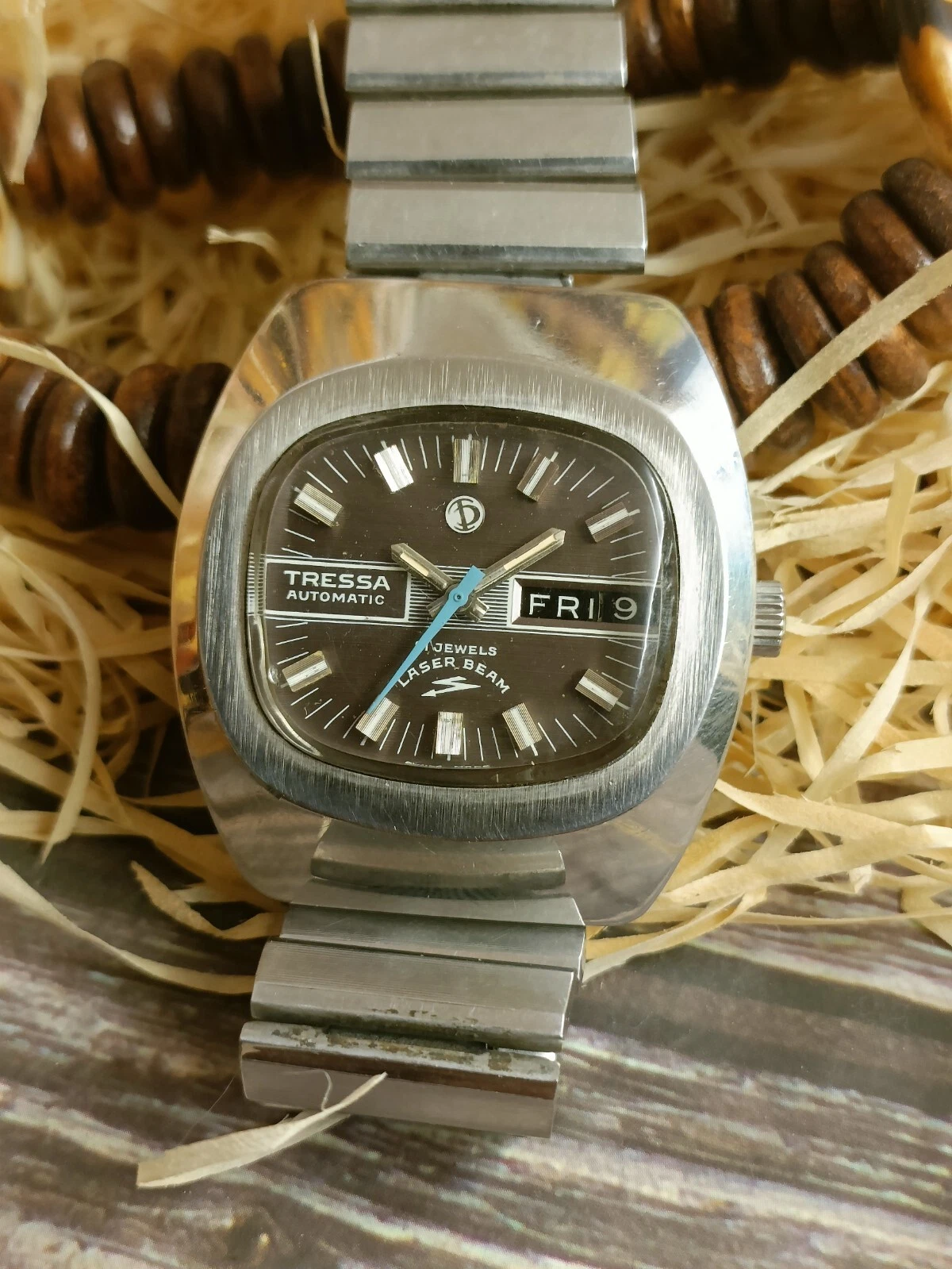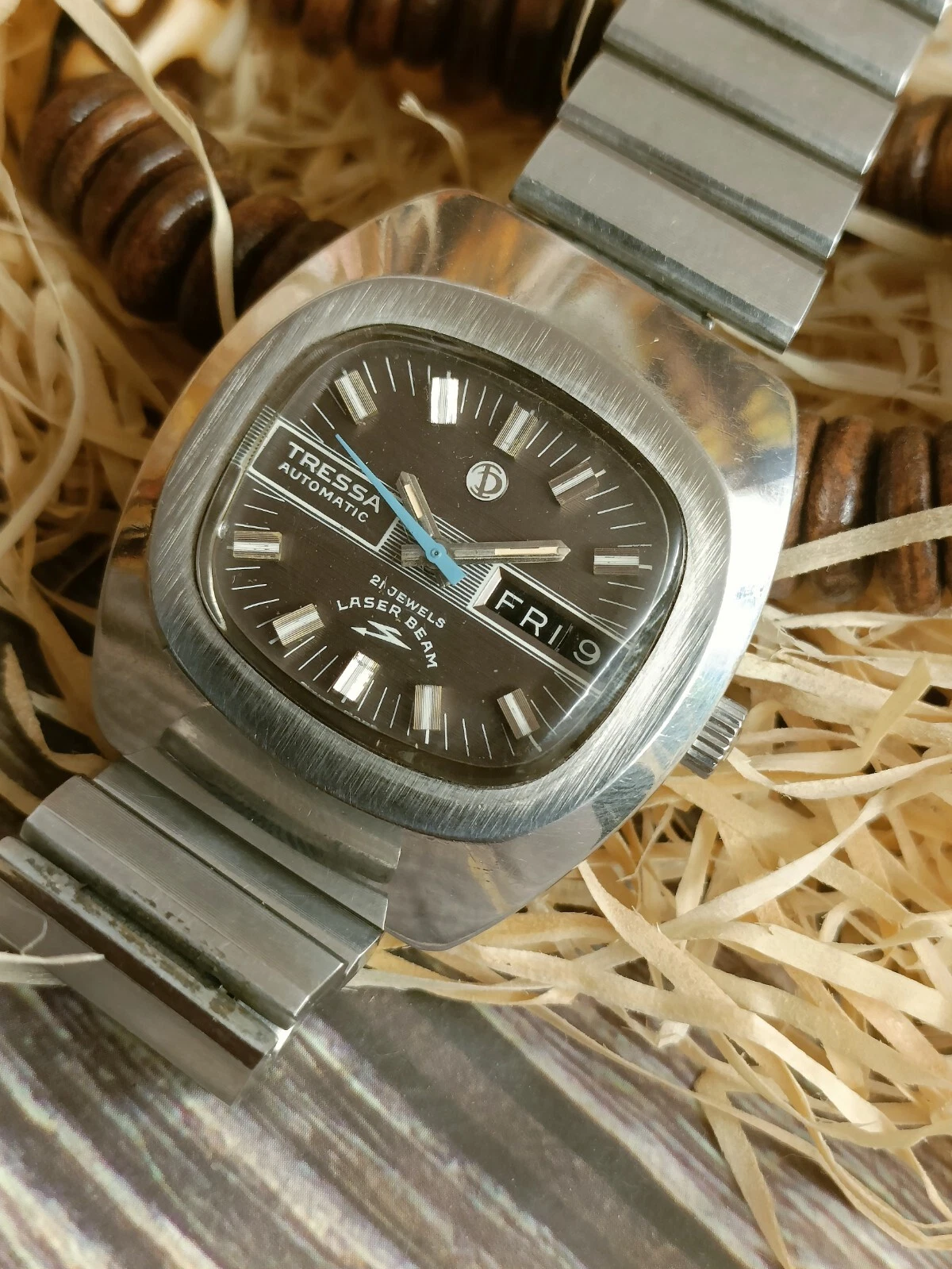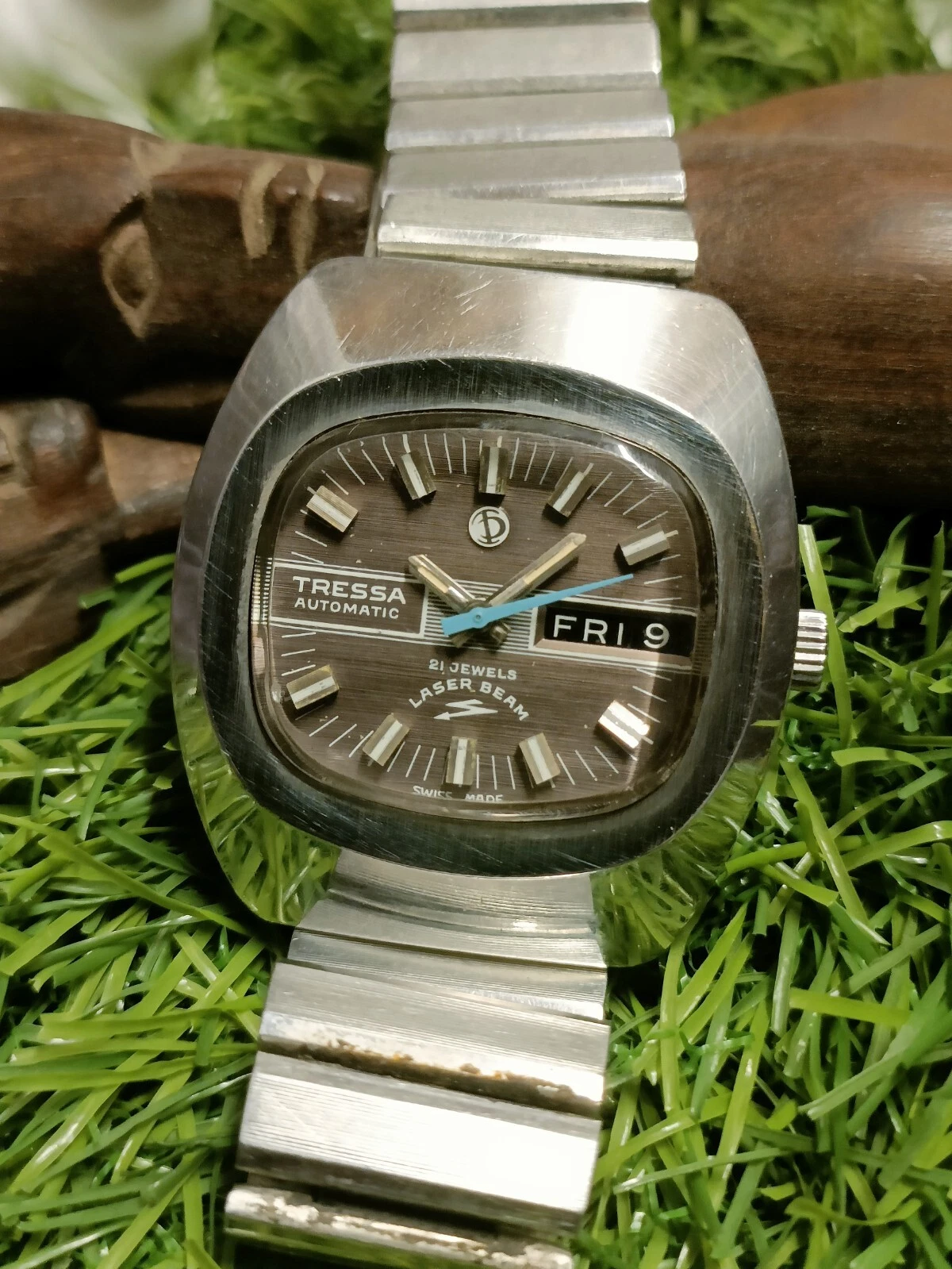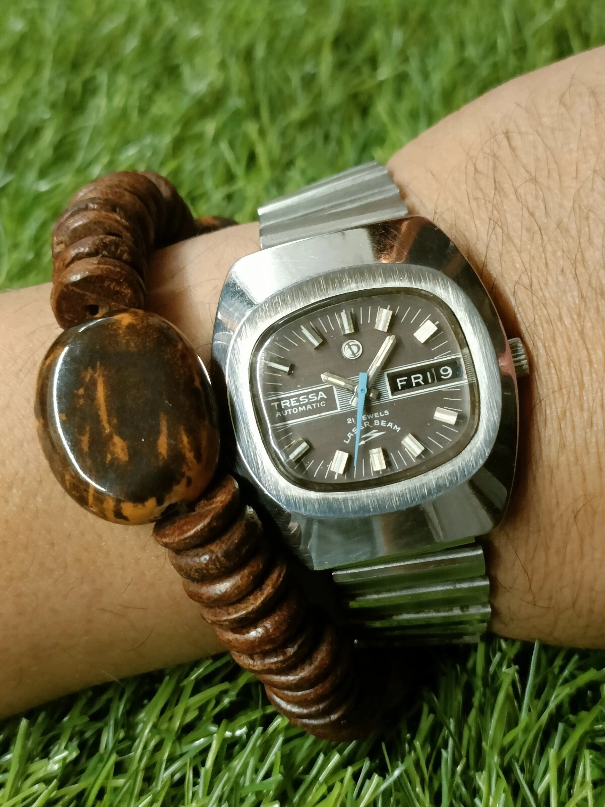 AUTHENTIC TRESSA AUTOMATIC 21 JEWELS LASER BEAM MEN'S MINT TEXTURED DIAL WATCH