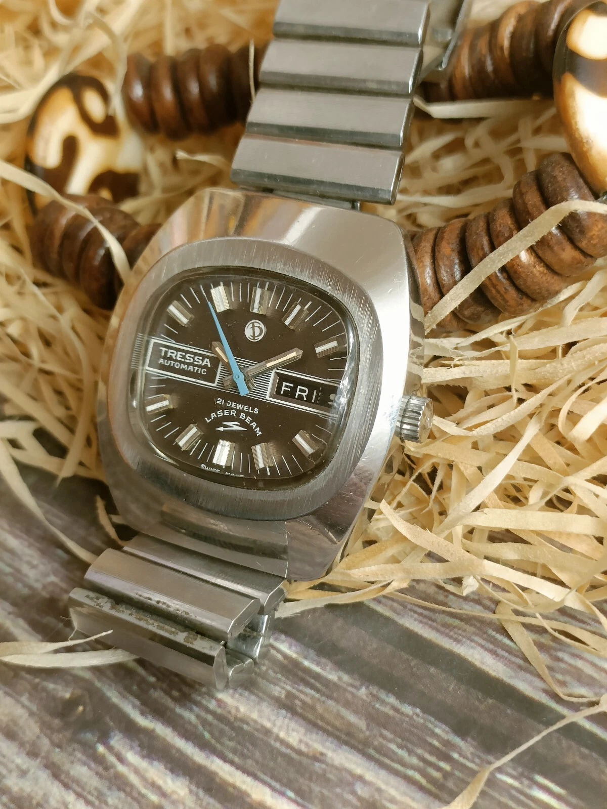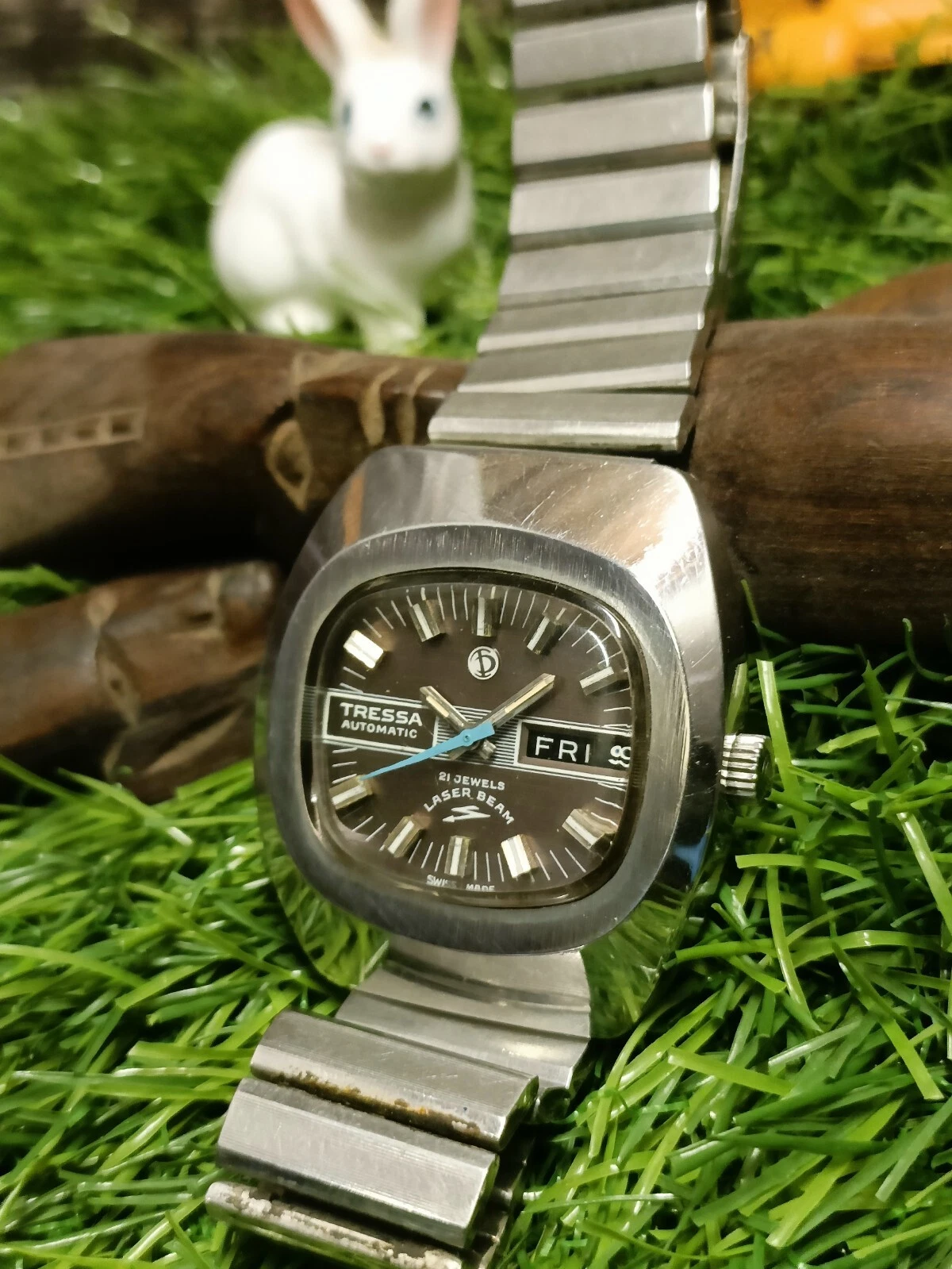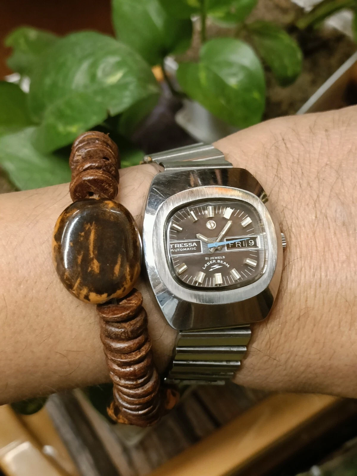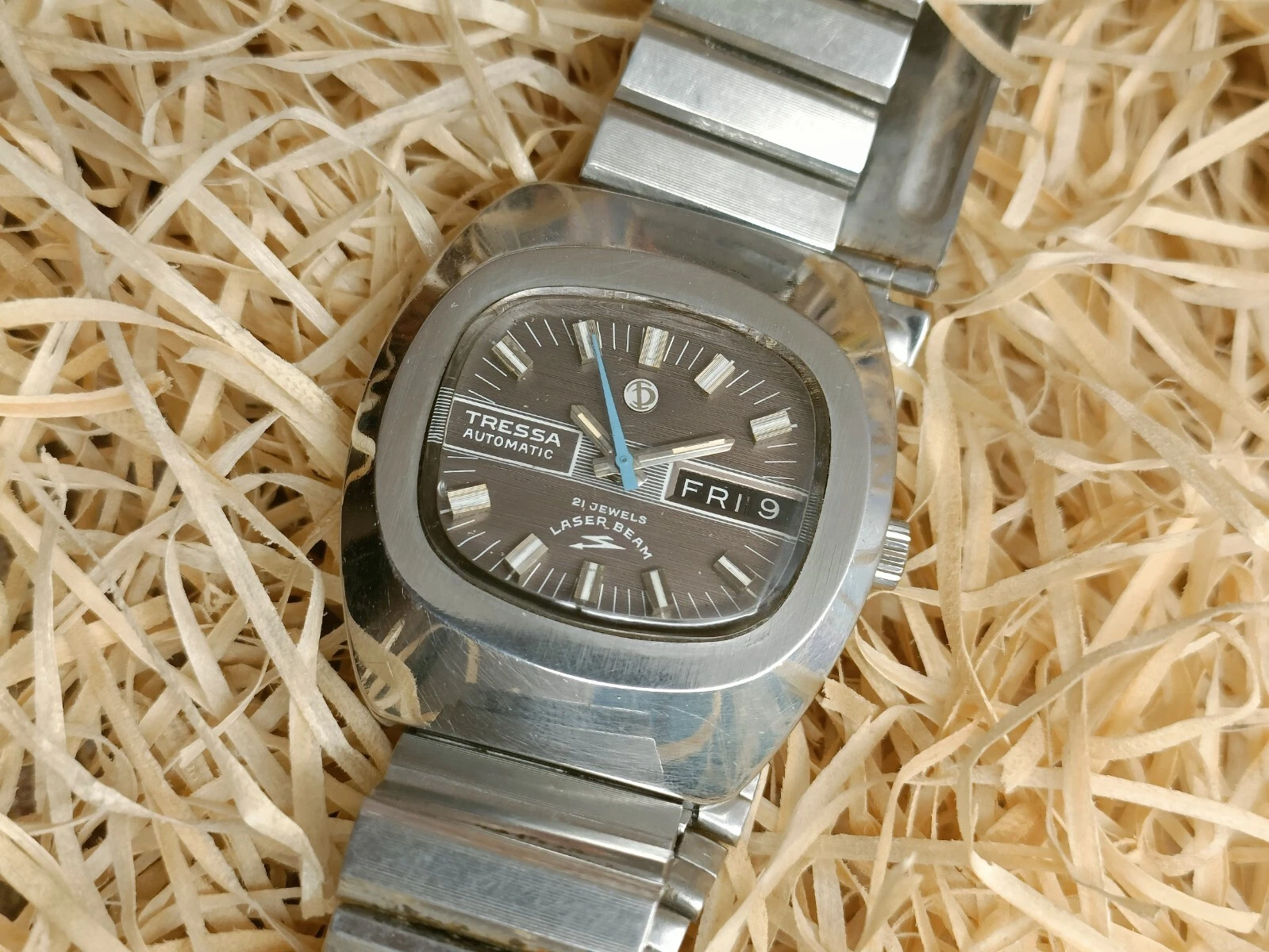 AUTHENTIC TRESSA AUTOMATIC 21 JEWELS LASER BEAM MEN'S MINT TEXTURED DIAL WATCH