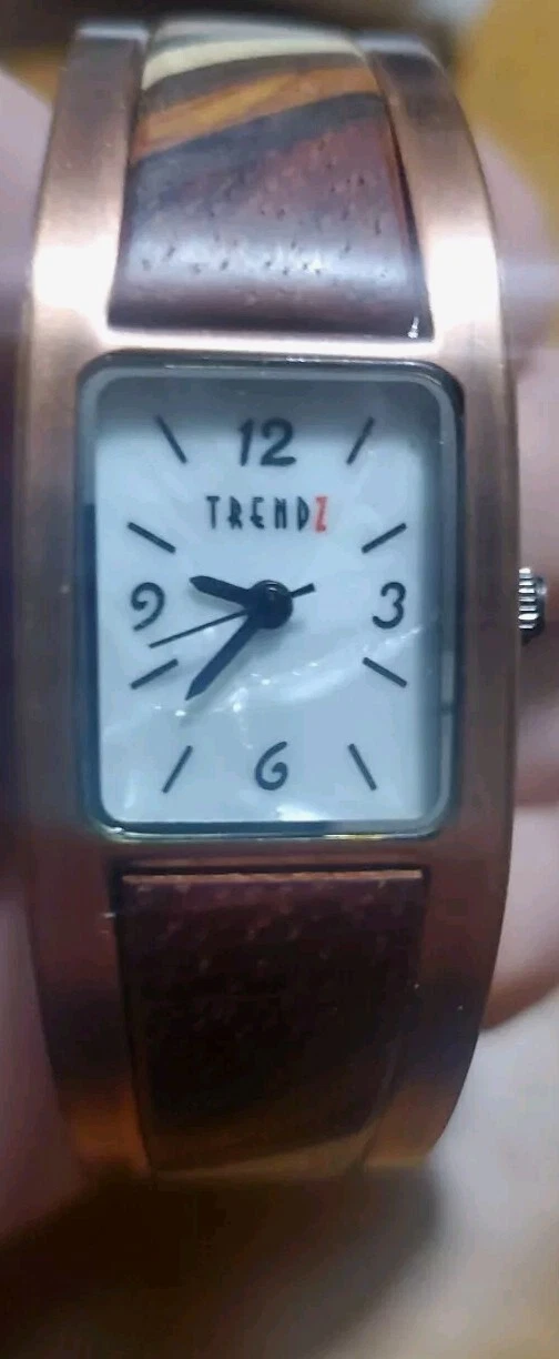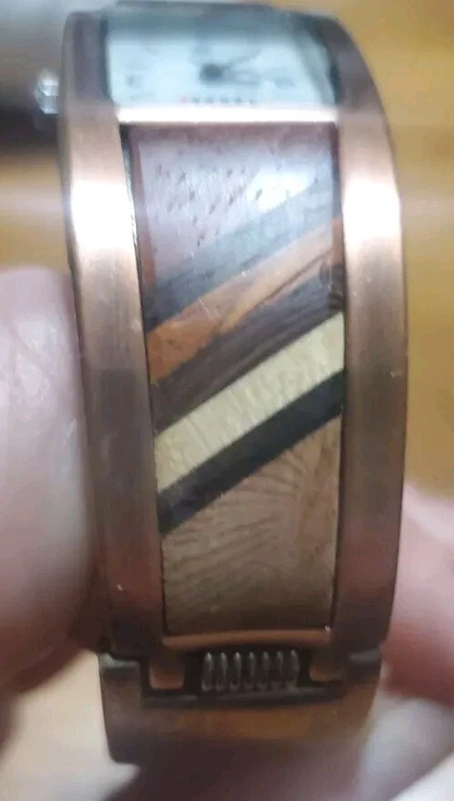 Cool Trendz Ladies Coppertone Watch Band With Stacked Woodtone Inset In Band And