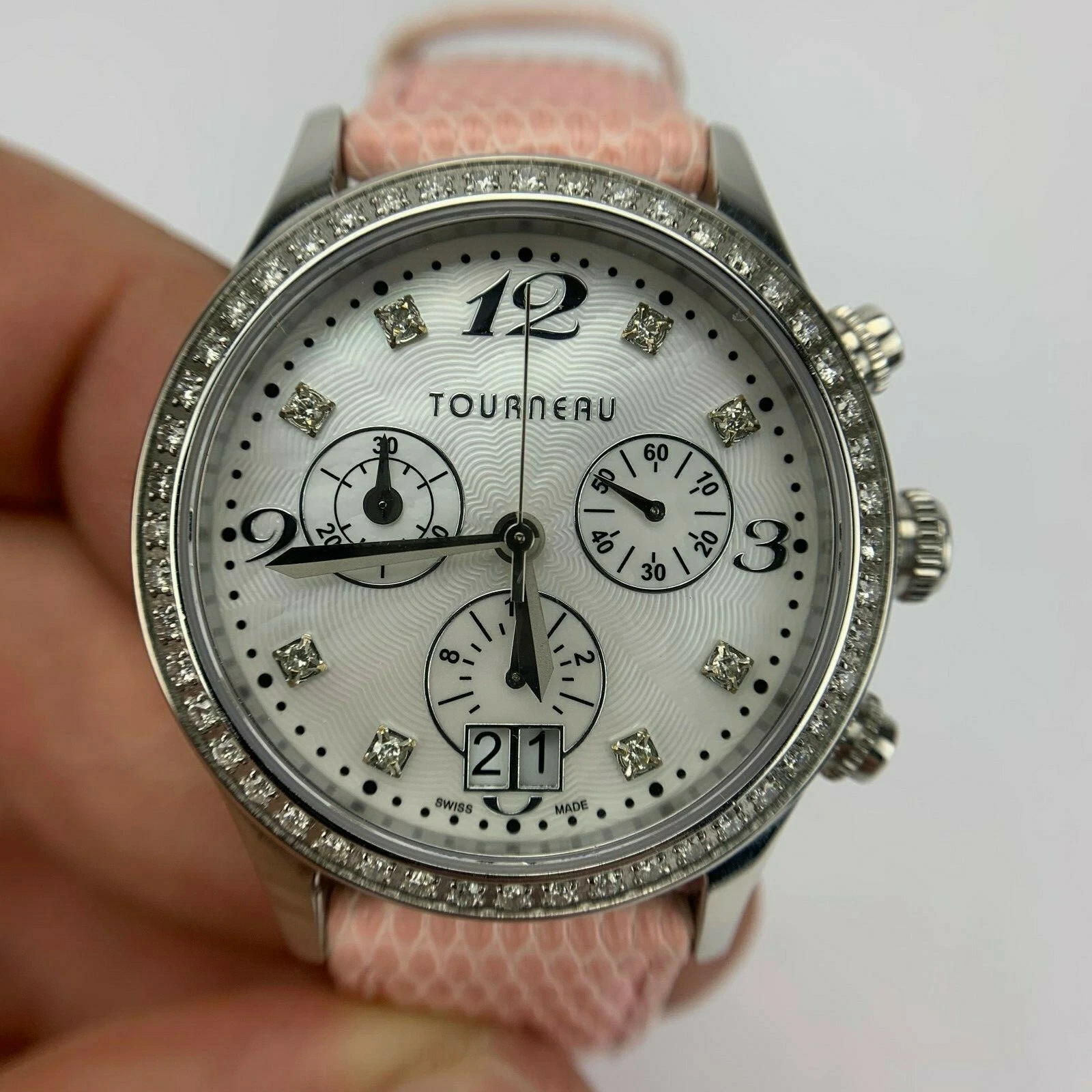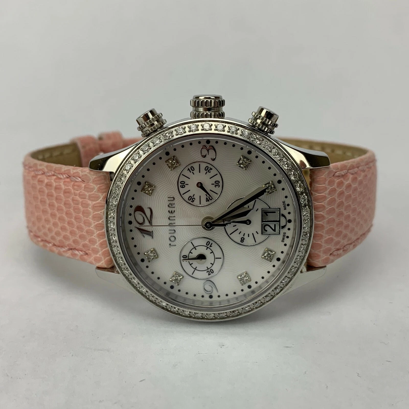Tourneau Diamond Dial Diamond Bezel Chronograph Watch