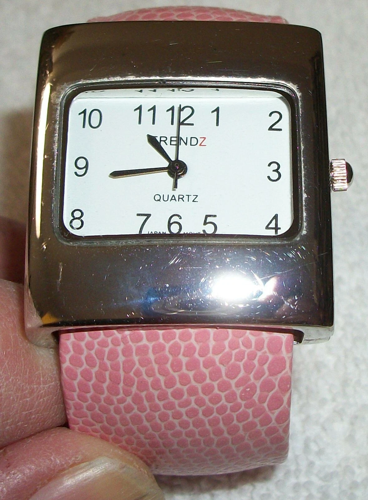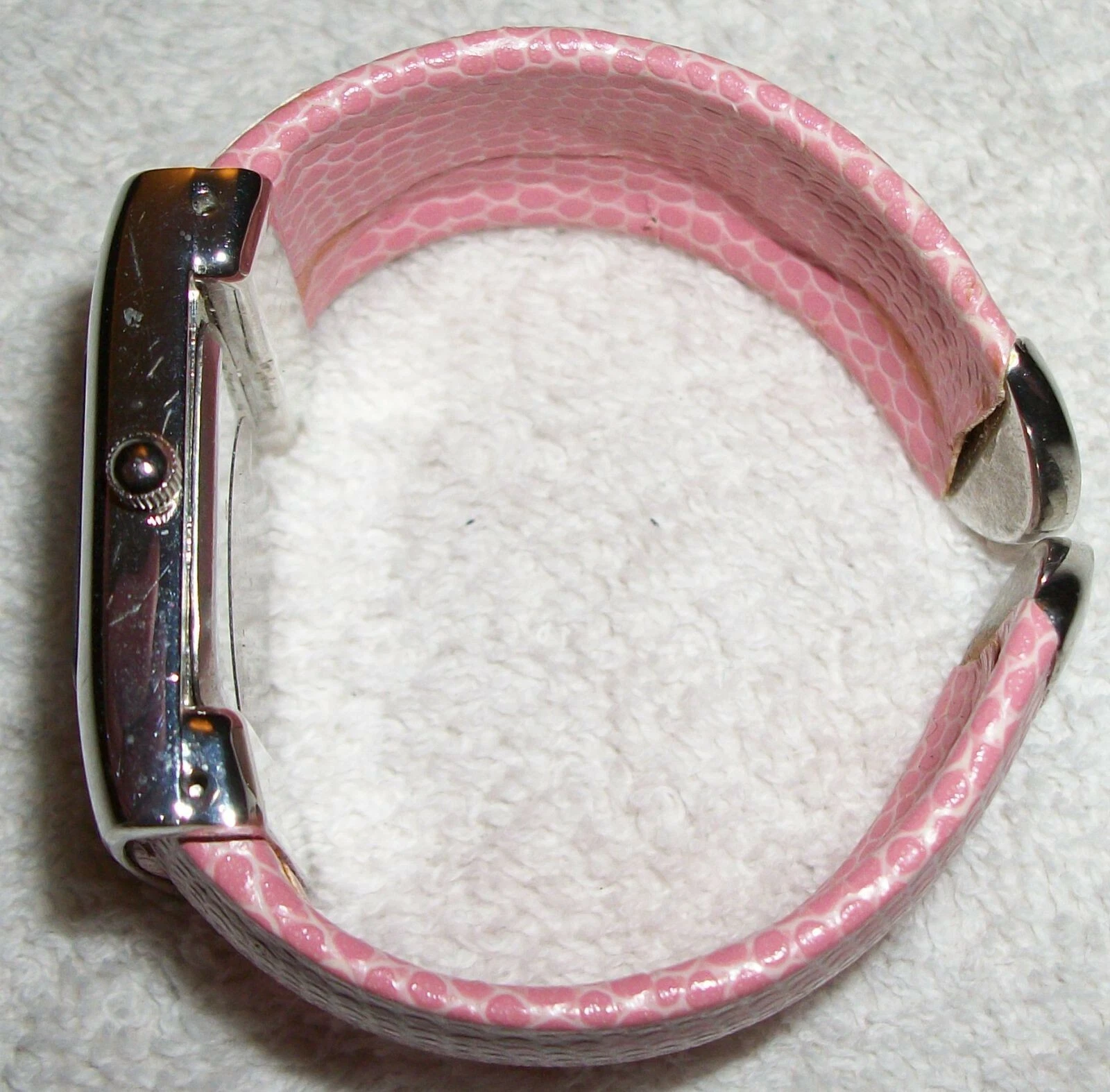 Vintage Trendz pink "snakeskin" Womens Bracelet Watch, new battery, runs great