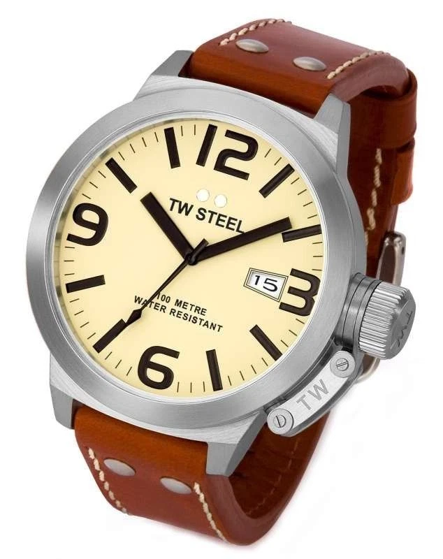 TW Steel TW0021 Brown Leather Strap Date Champagne Dial Men's Watch