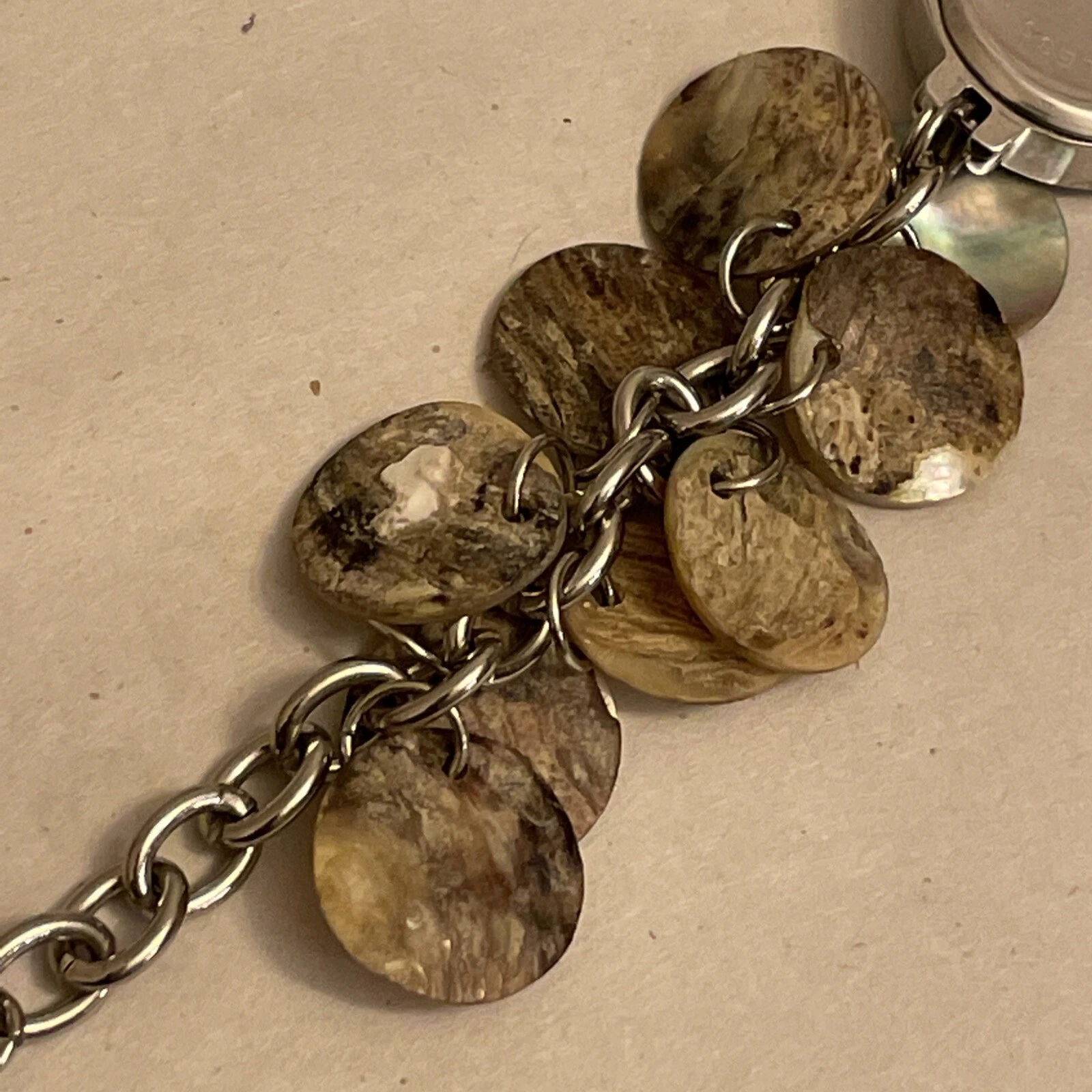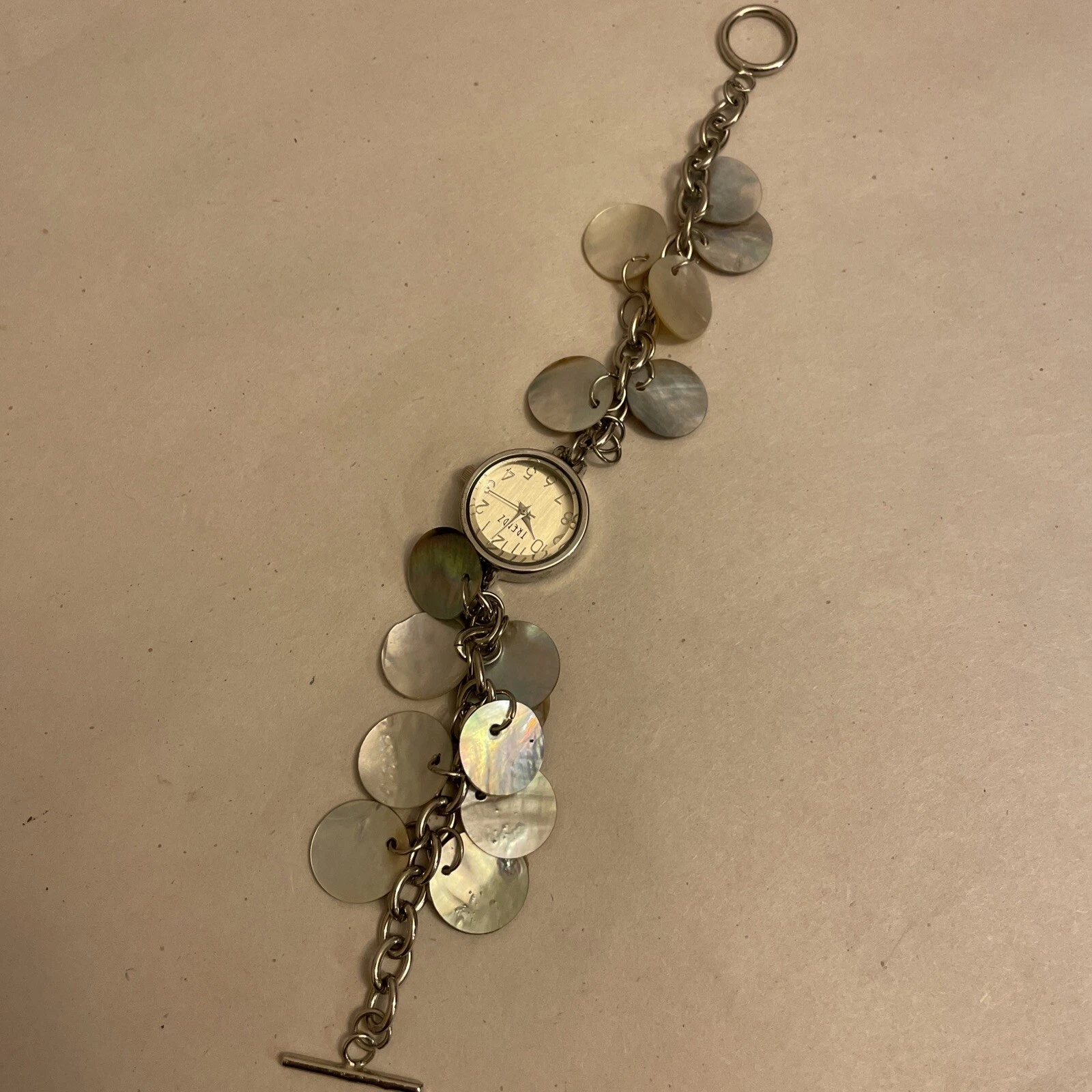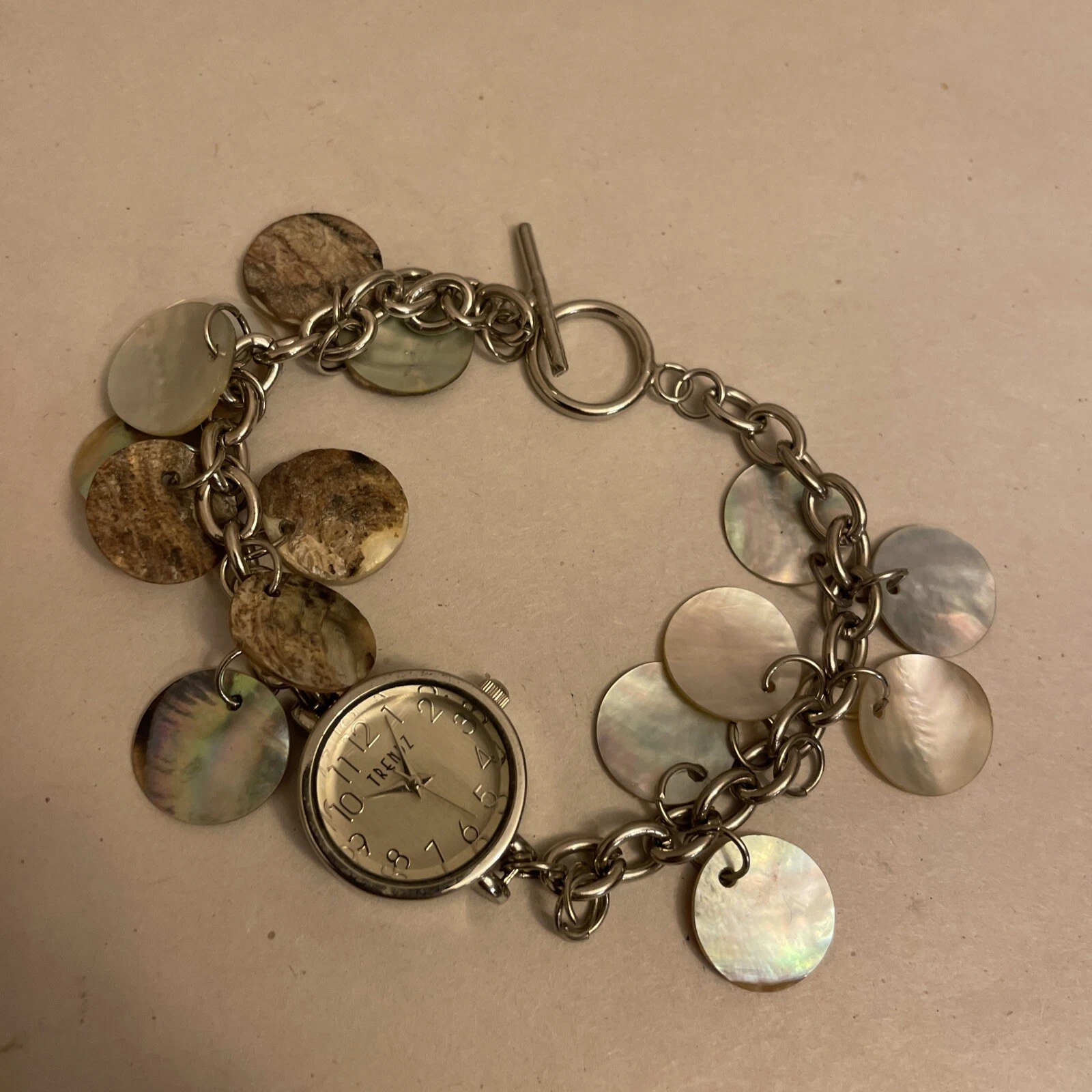 Trendz Watch Womens Silver Tone Cluster Shell Band Toggle Clasp 7"tested