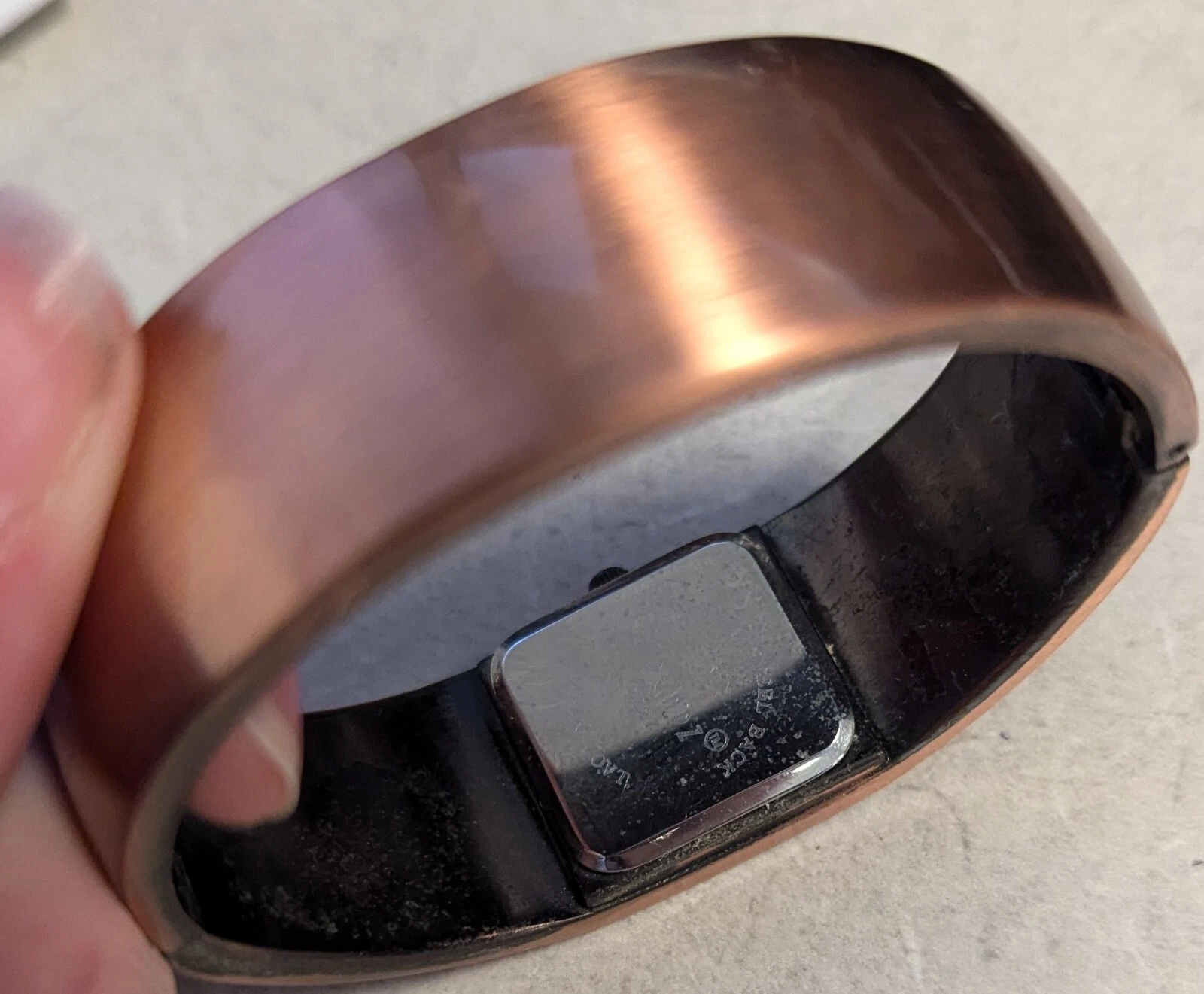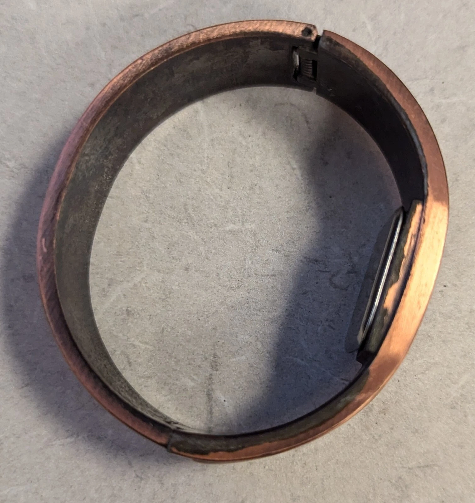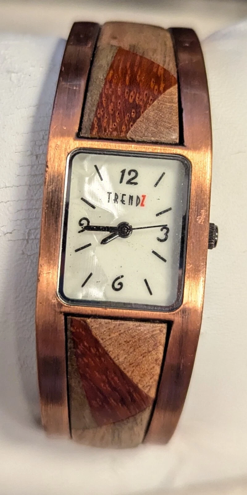WORKING Vintage Wood Inlay Women's Copper Tone Cuff Bangle Watch