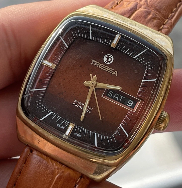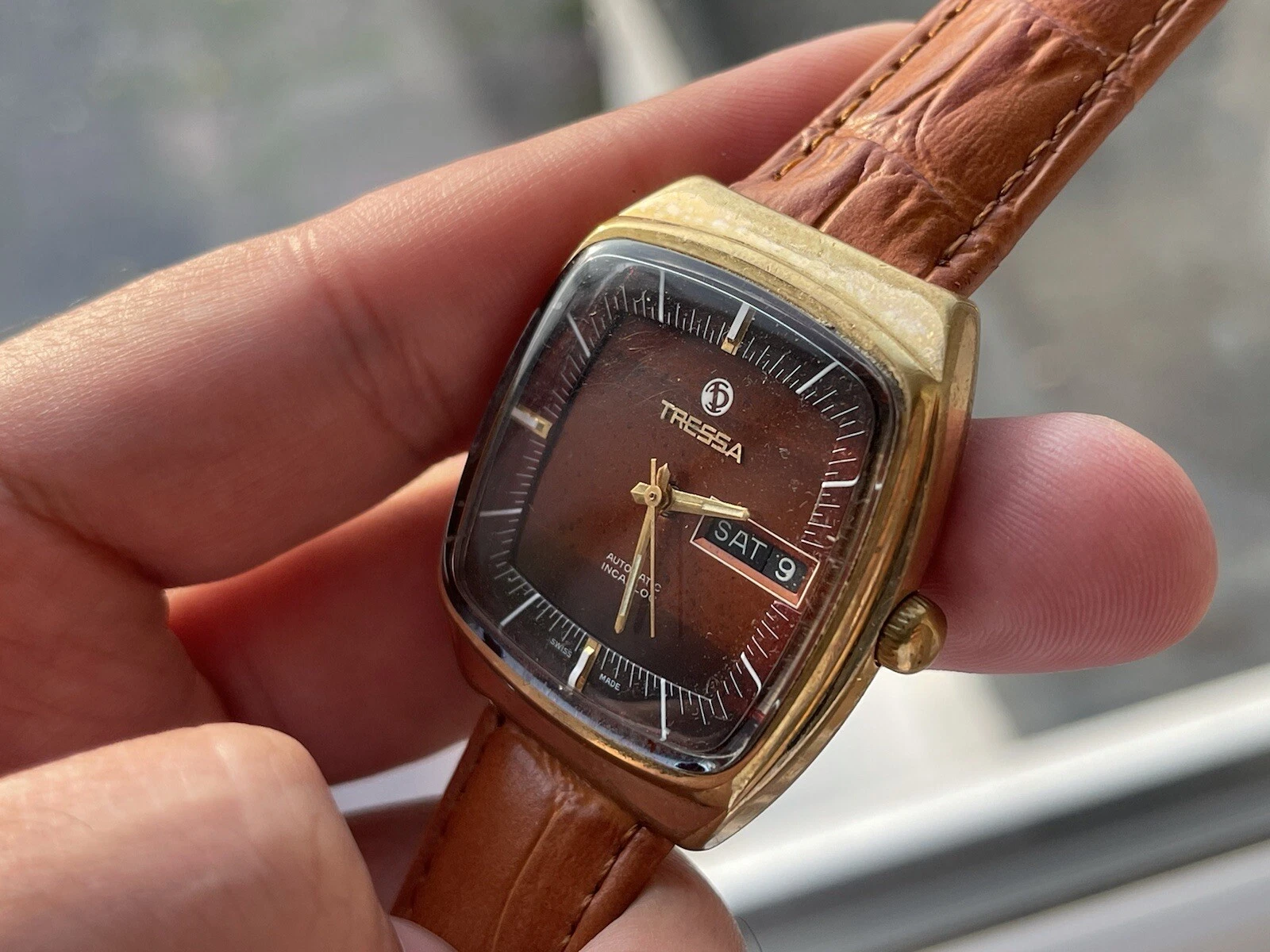 Vintage Watch Tressa Incabloc 641 Red/Black Dial, 35mm Automatic Mens Watch