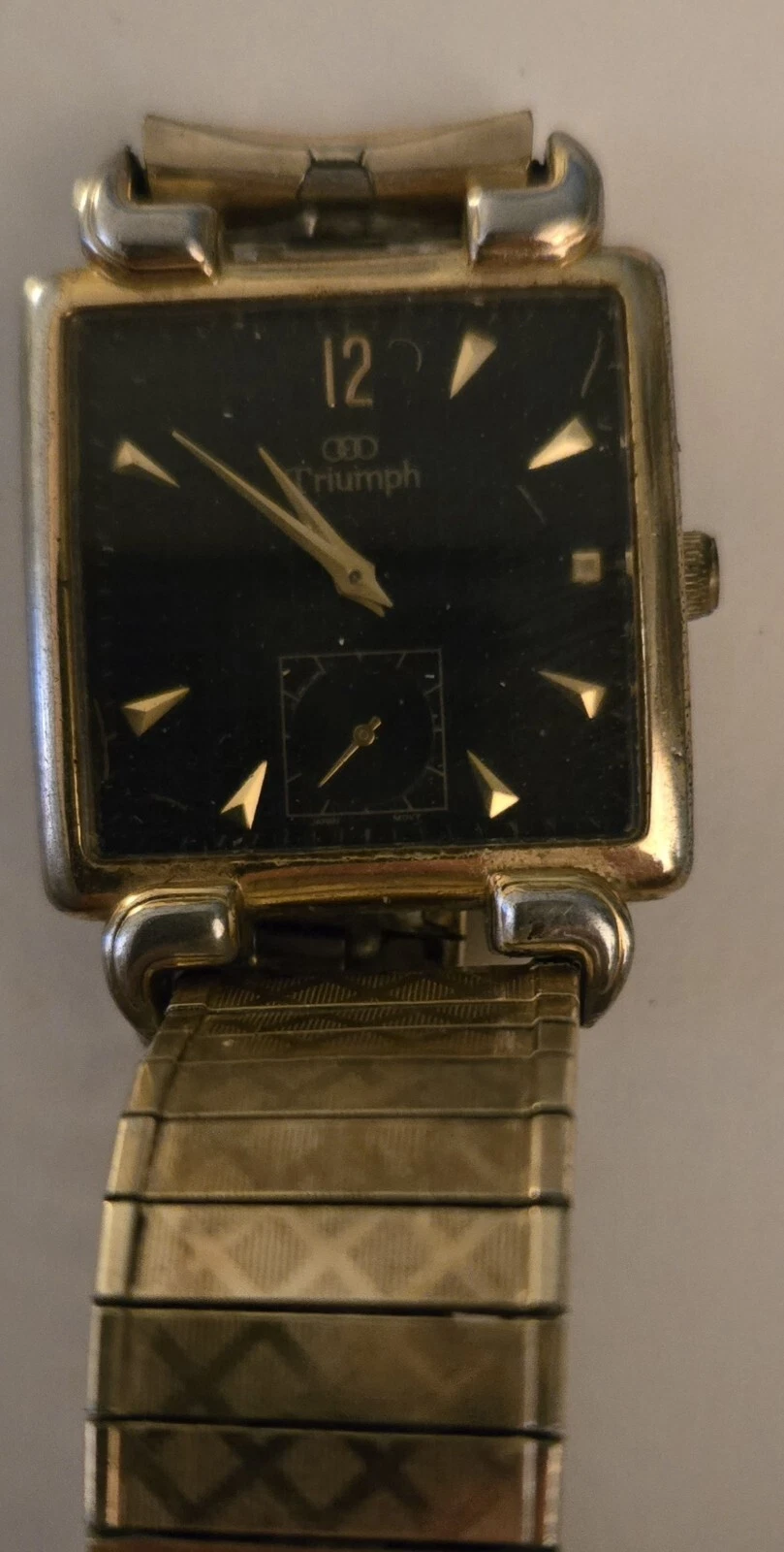 Vintage Mens Triumph Quartz Gold Wristwatch Square Face
