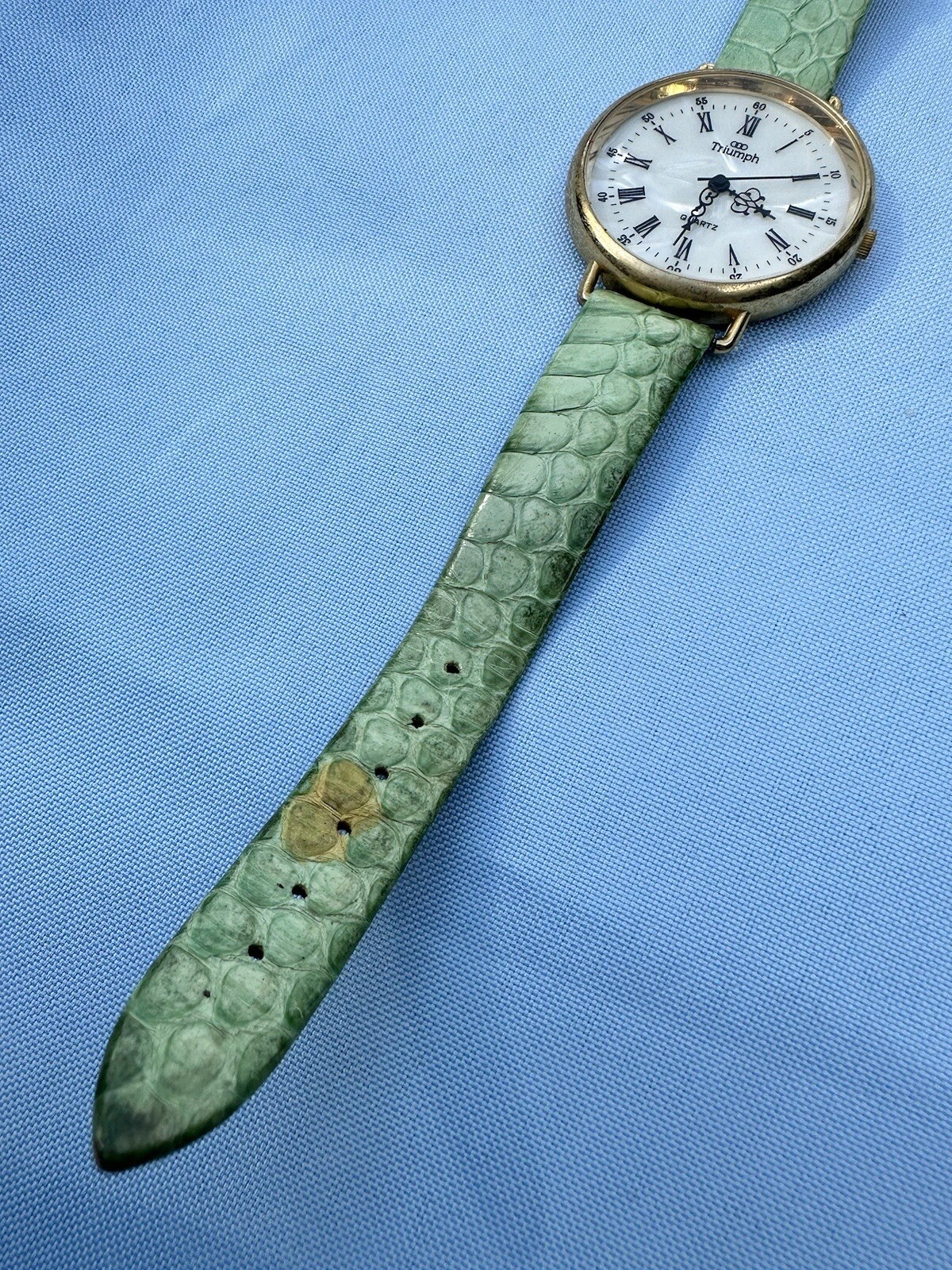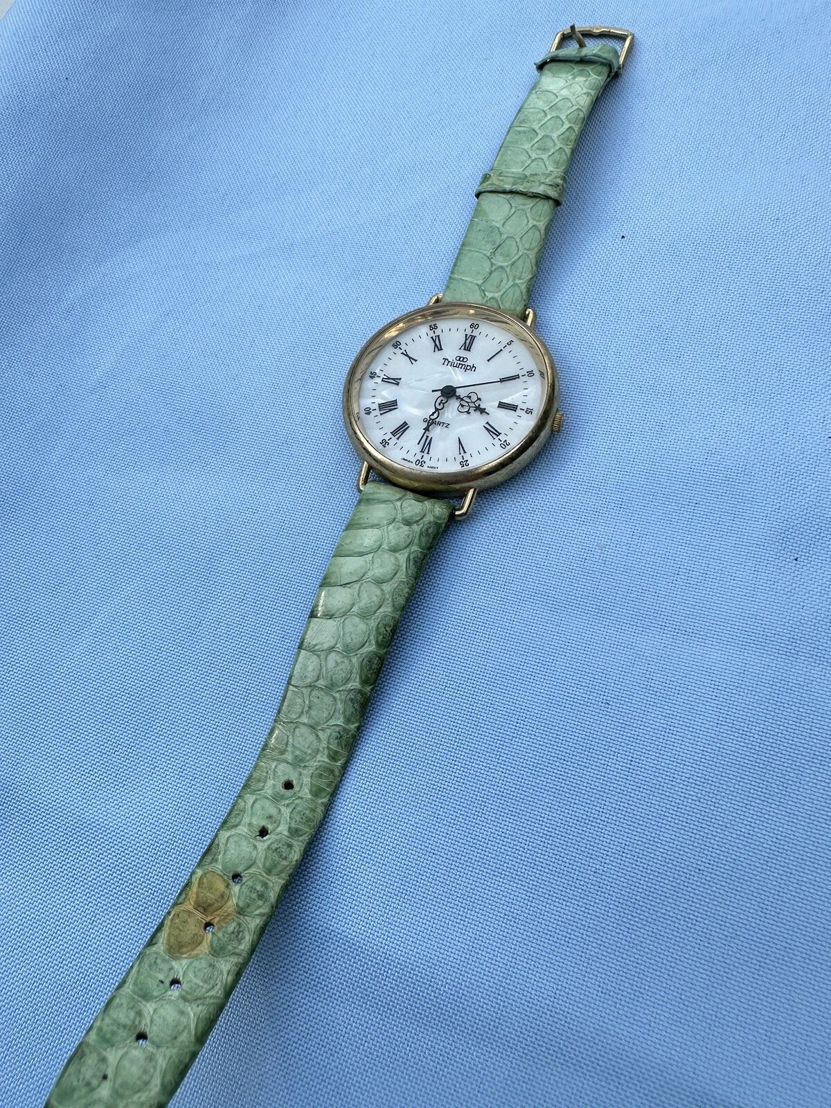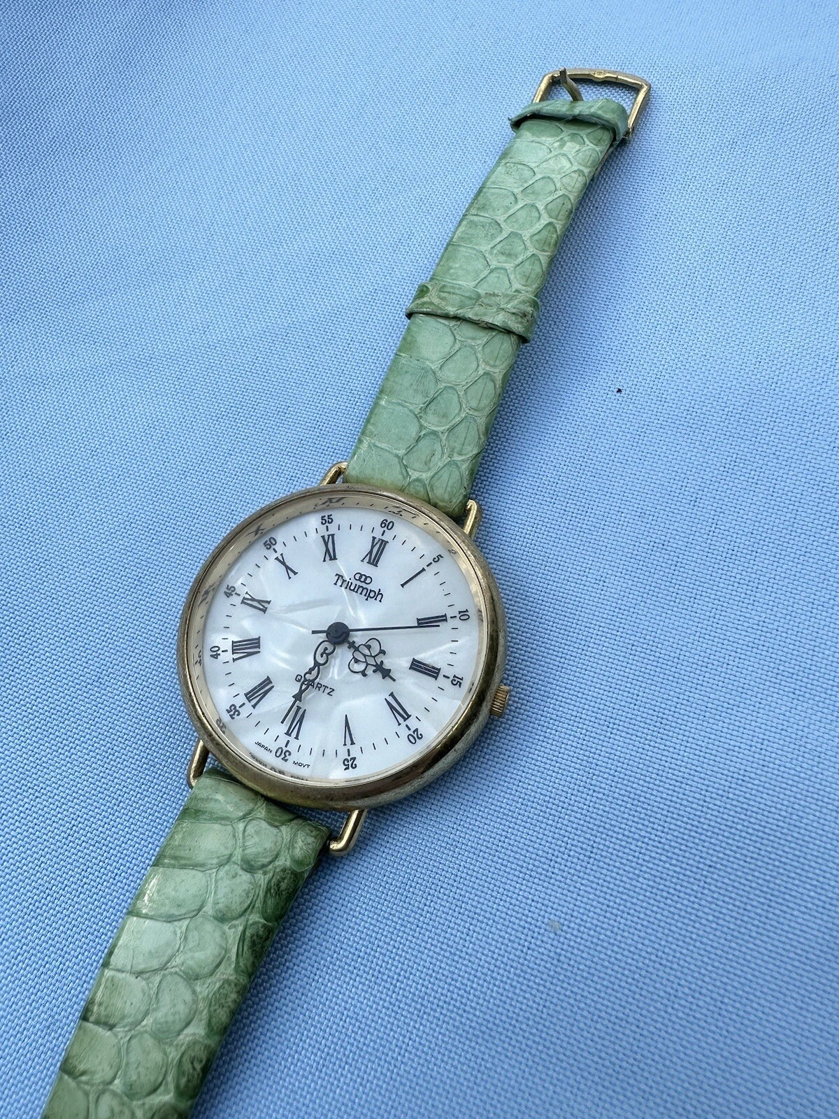 Vintage woman's Watch Triumph Quartz Green Genuine Leather Band