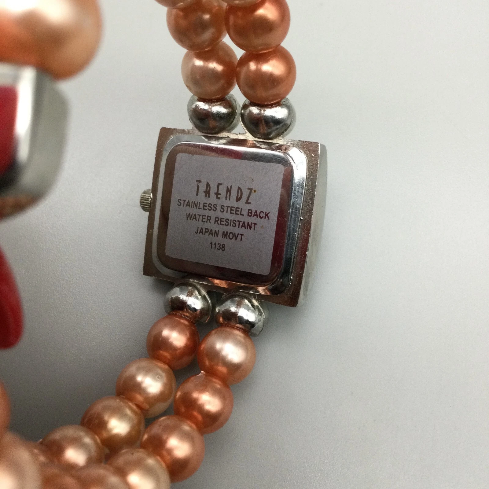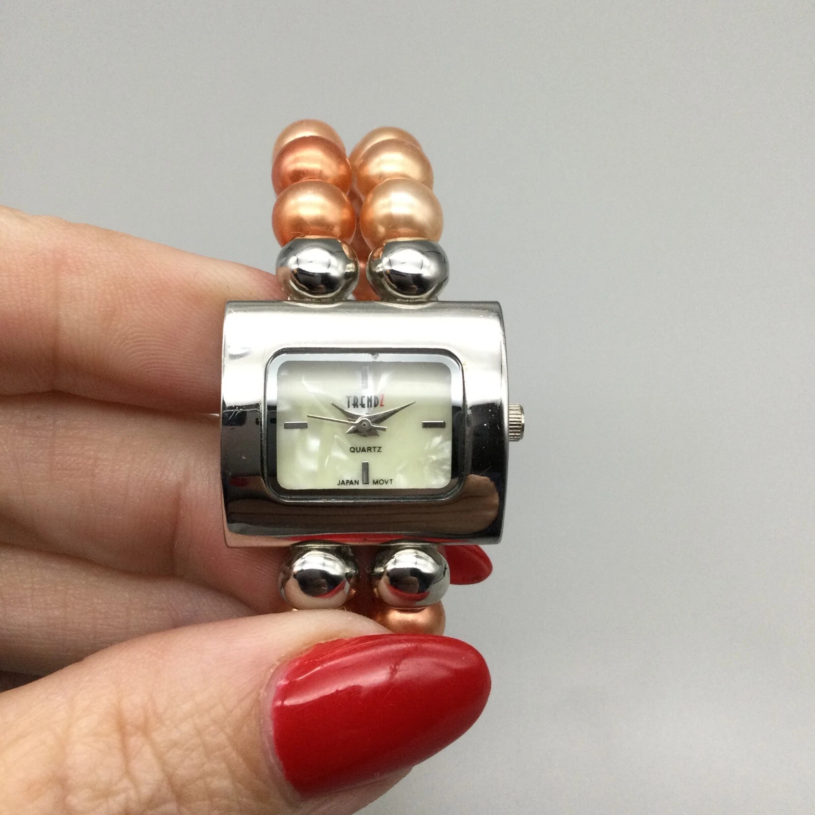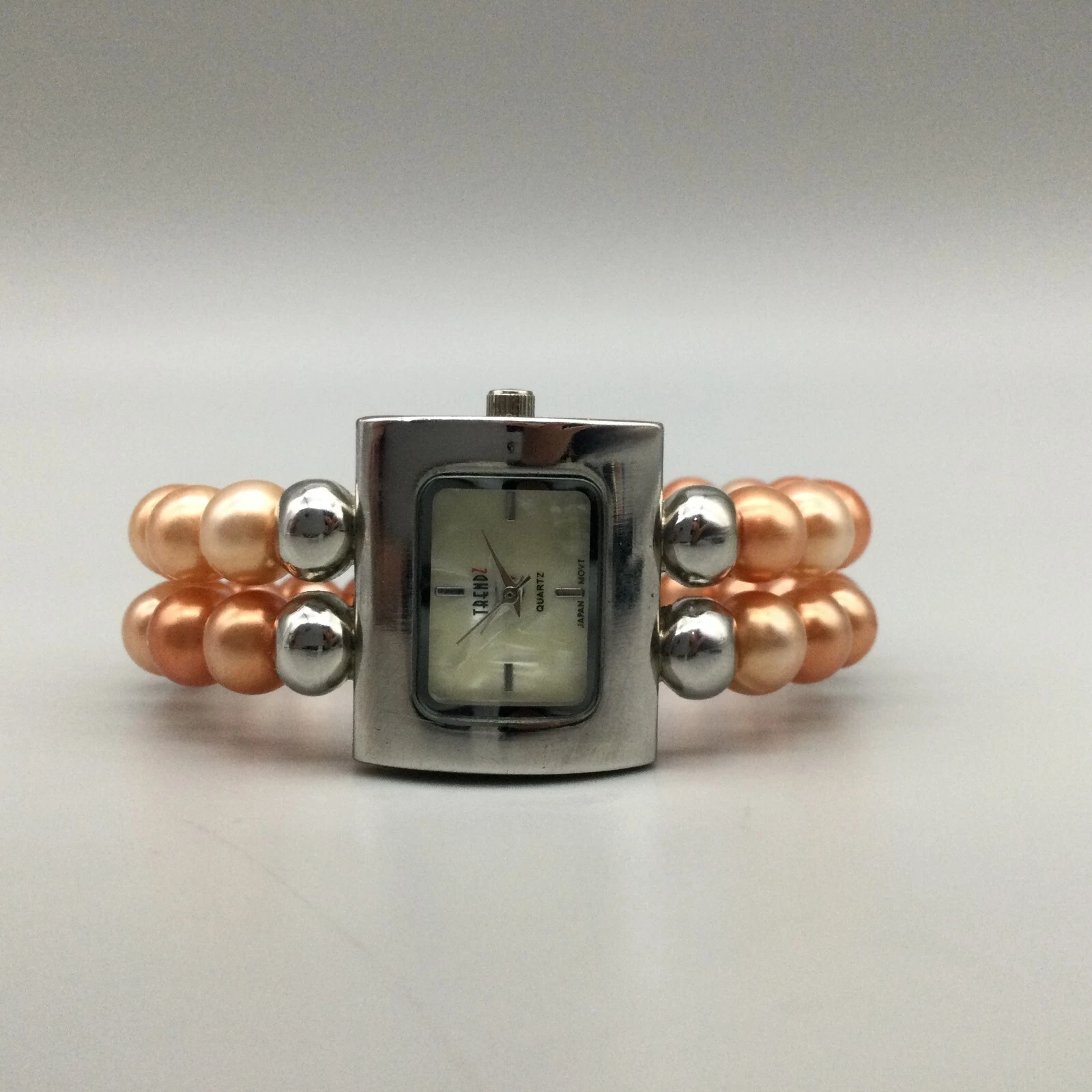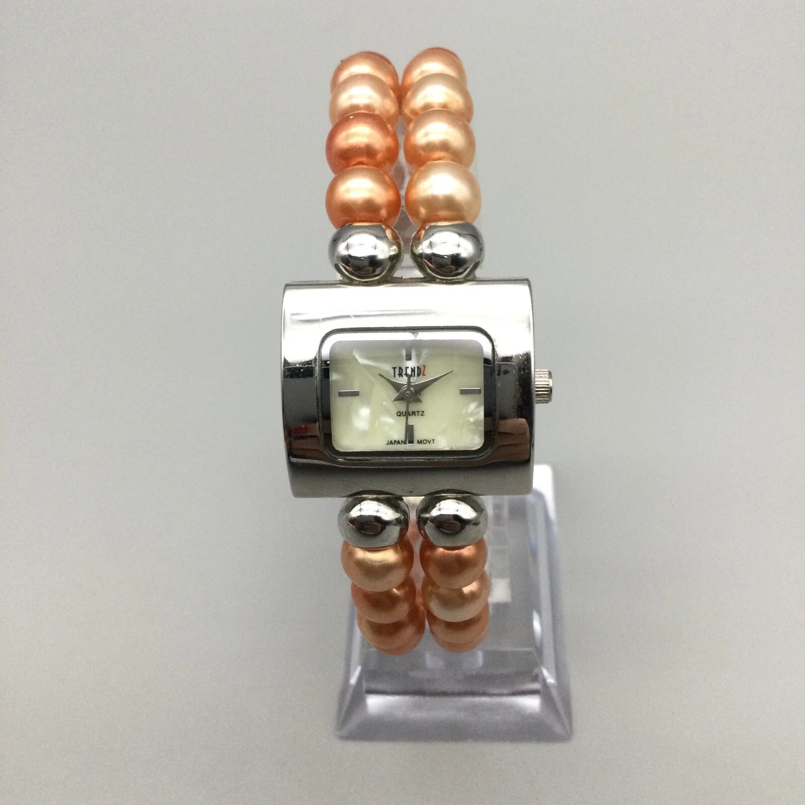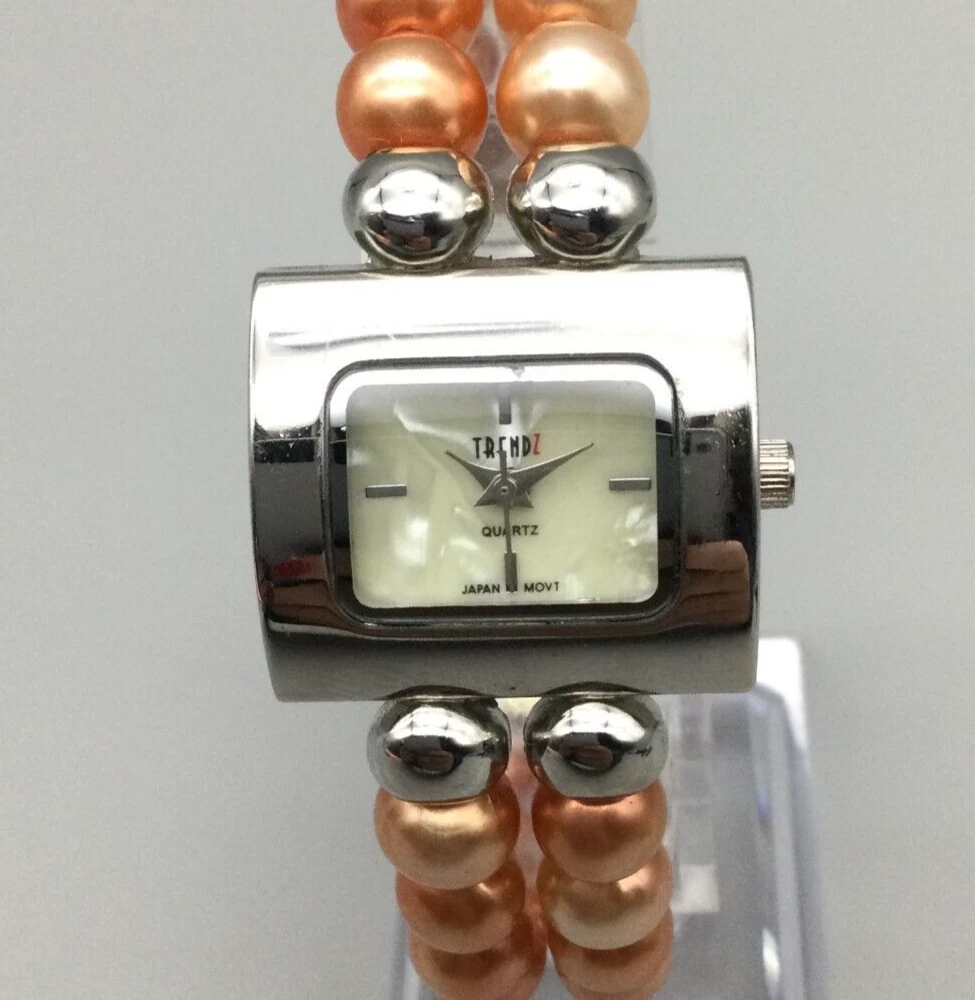 Trendz Faux Pearl Watch Women 25mm MOP Dial Open Cuff Band New Battery