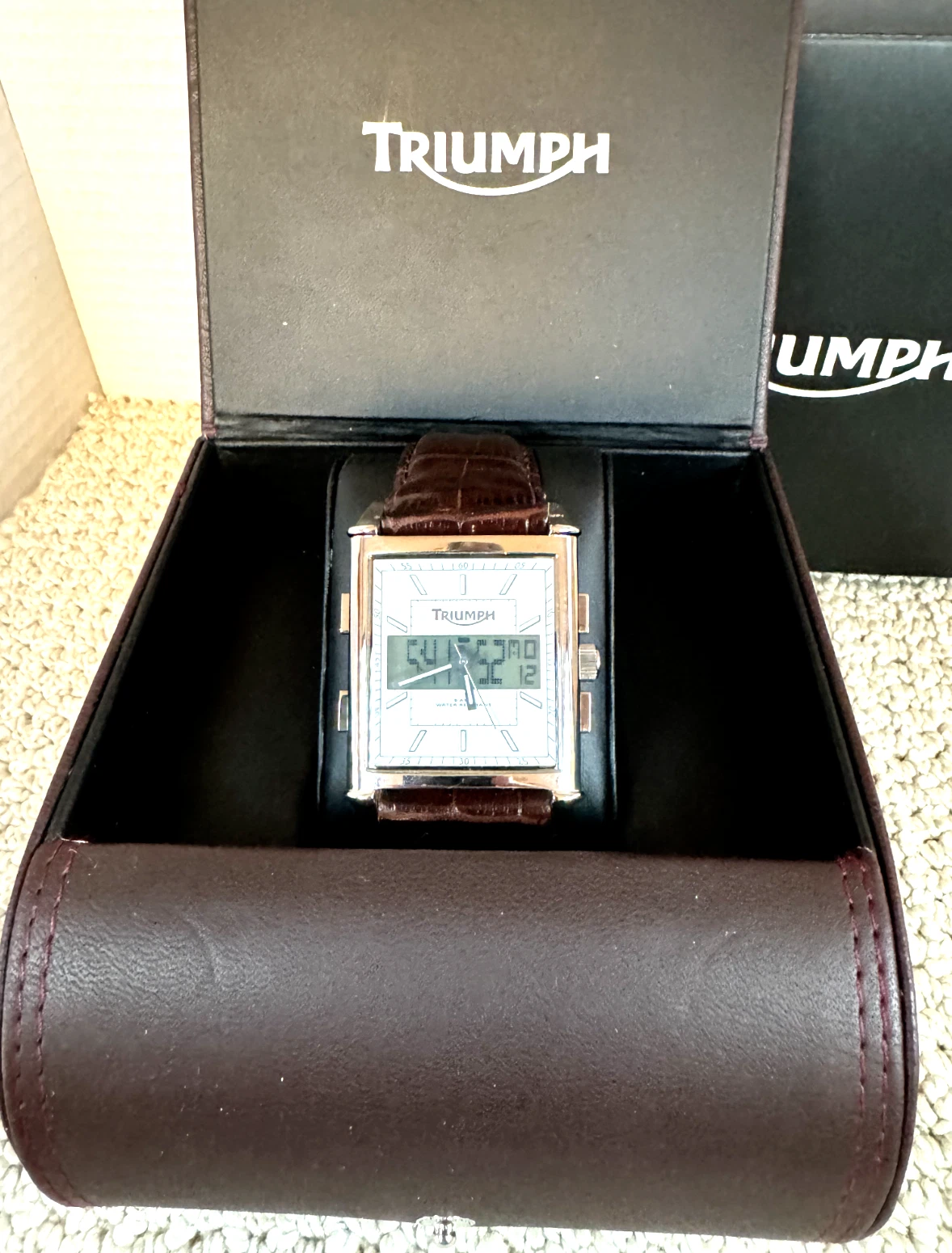 Triumph Motorcycle Watch Analog/ digital, New in Box w/ new battery Rare Vintage