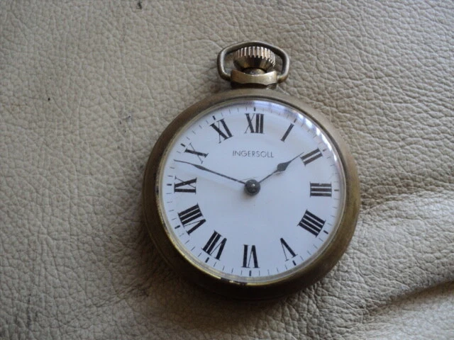Antique Ingersol Hand Winding Man's Pocket Watch Gold Plated Working