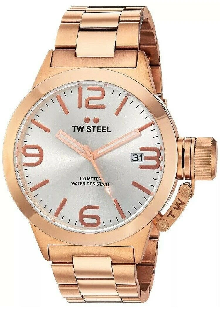TW STEEL MEN'S CANTEEN CB162 WATCH WITH SILVER DIAL AND ROSE GOLD 50mm New