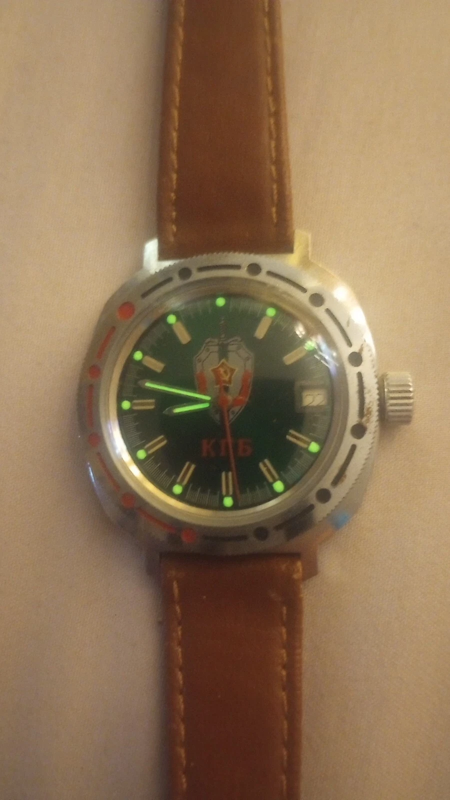KGB" Soviet Union fully automatic night light green frog man waterproof antique