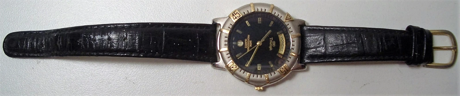 AUTHENTIC MEN'S TRIUMPH 5ATM PROFESSIONAL QUARTZ WRISTWATCH w LEATHER BAND