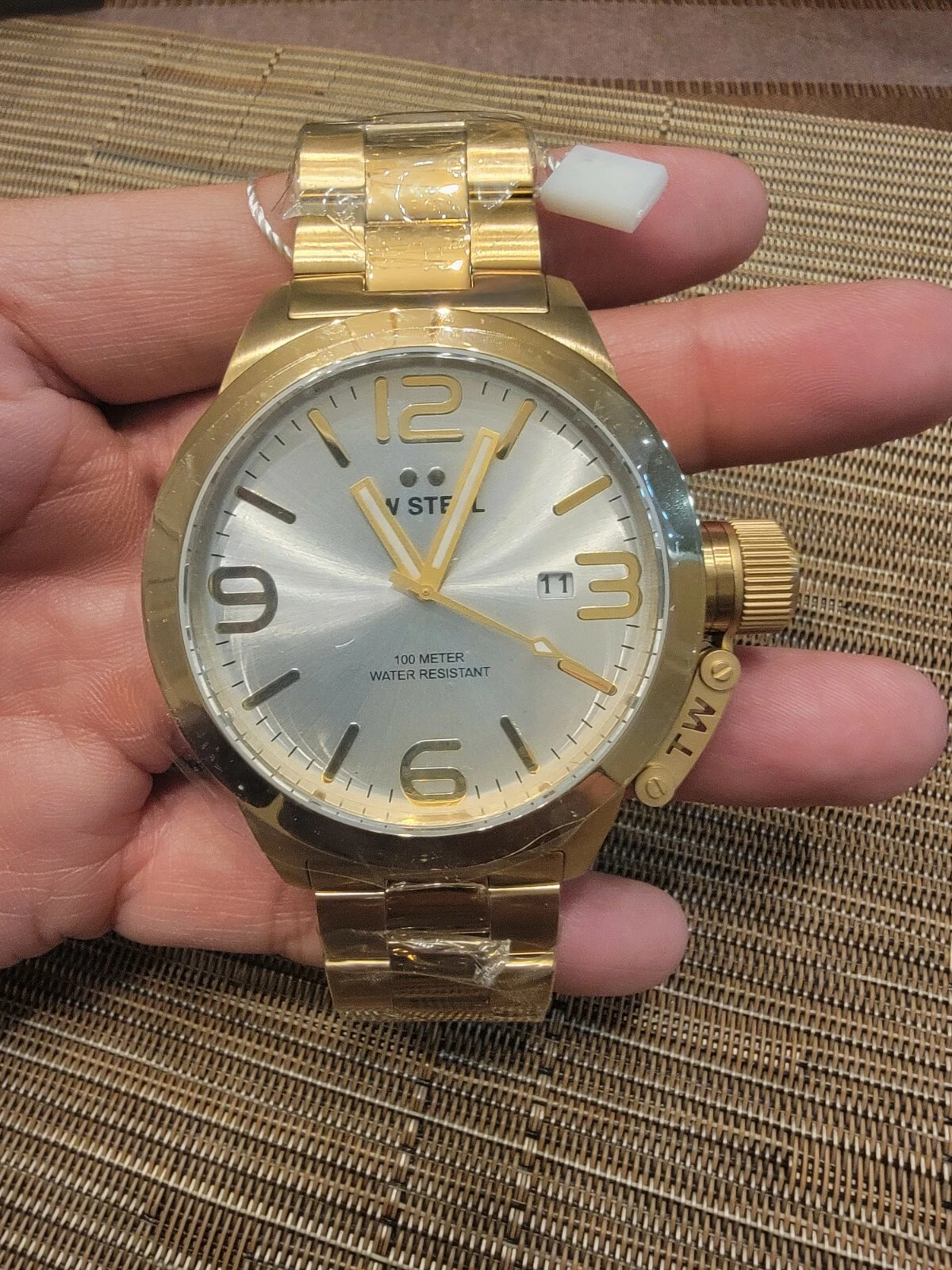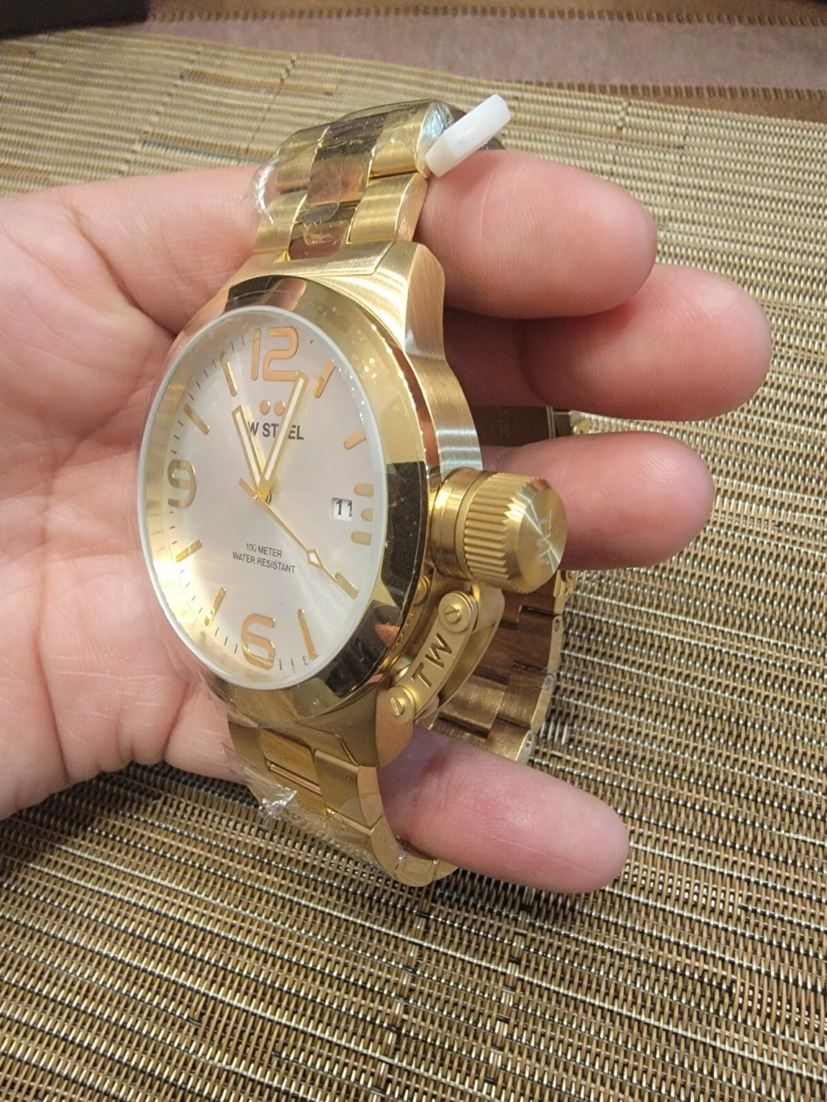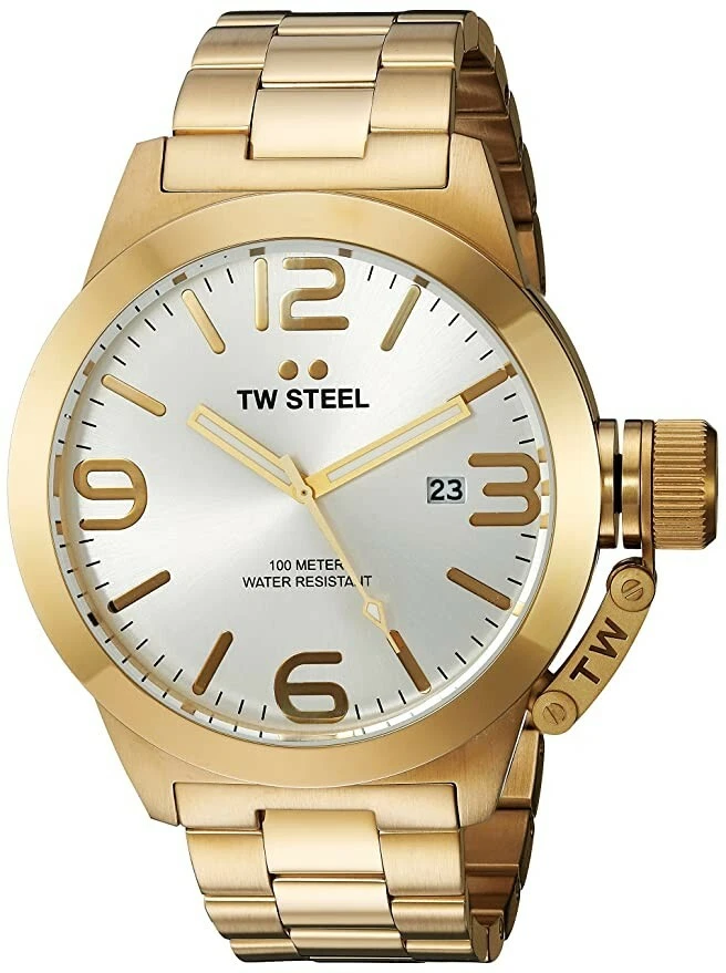 TW STEEL MEN'S CANTEEN QUARTZ WATCH WITH SILVER DIAL AND GOLD CASE 50mm New