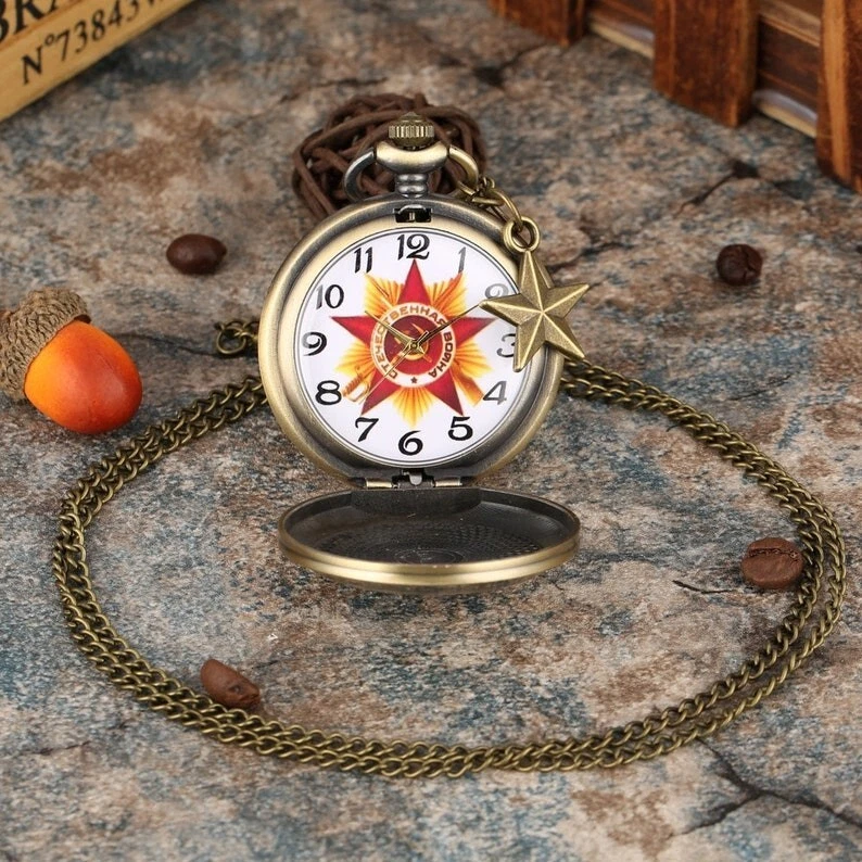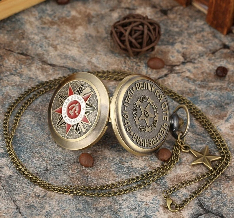 Vintage Soviet Pocket Watch Communist USSR Necklace Chain Soviet Union