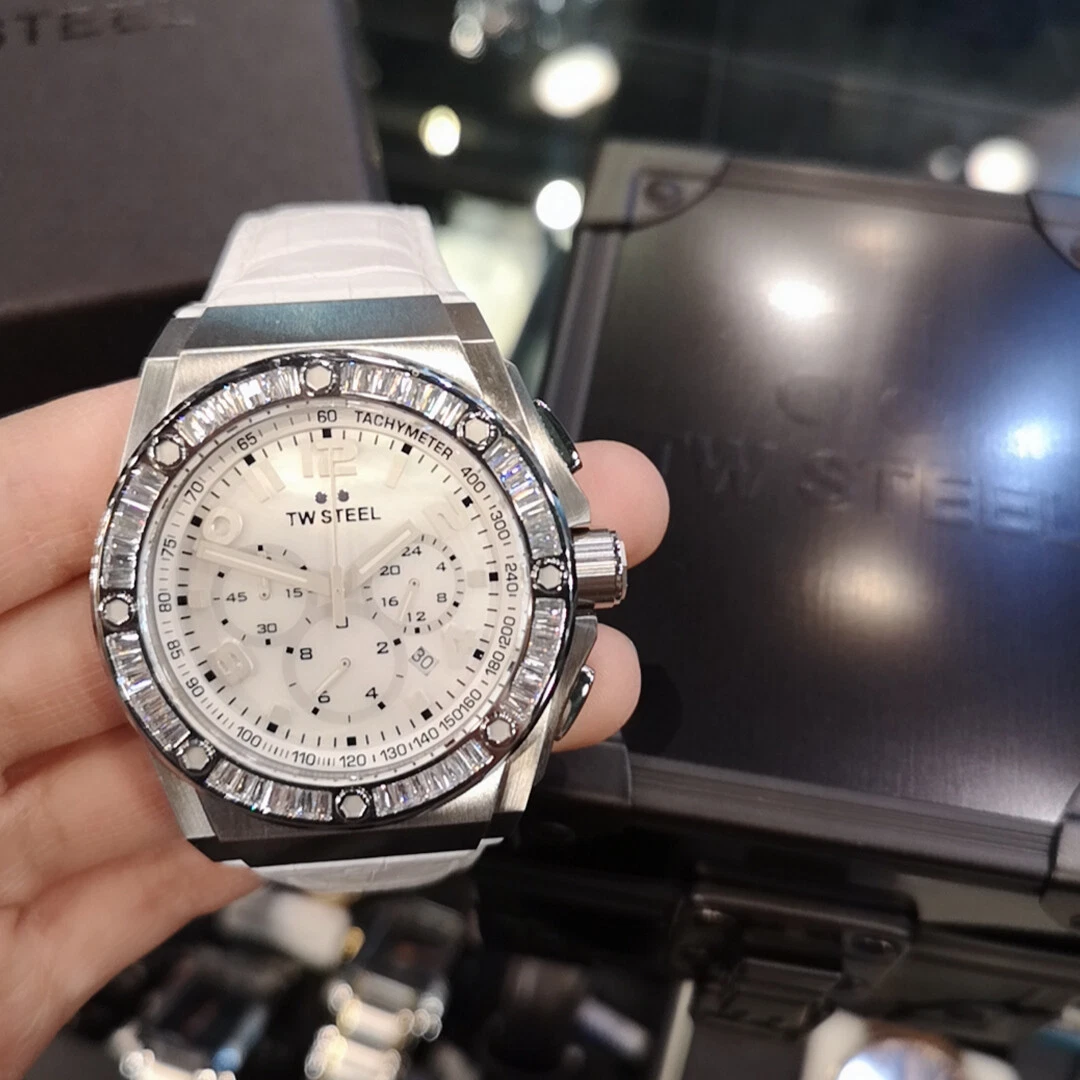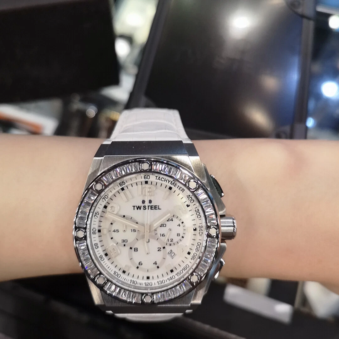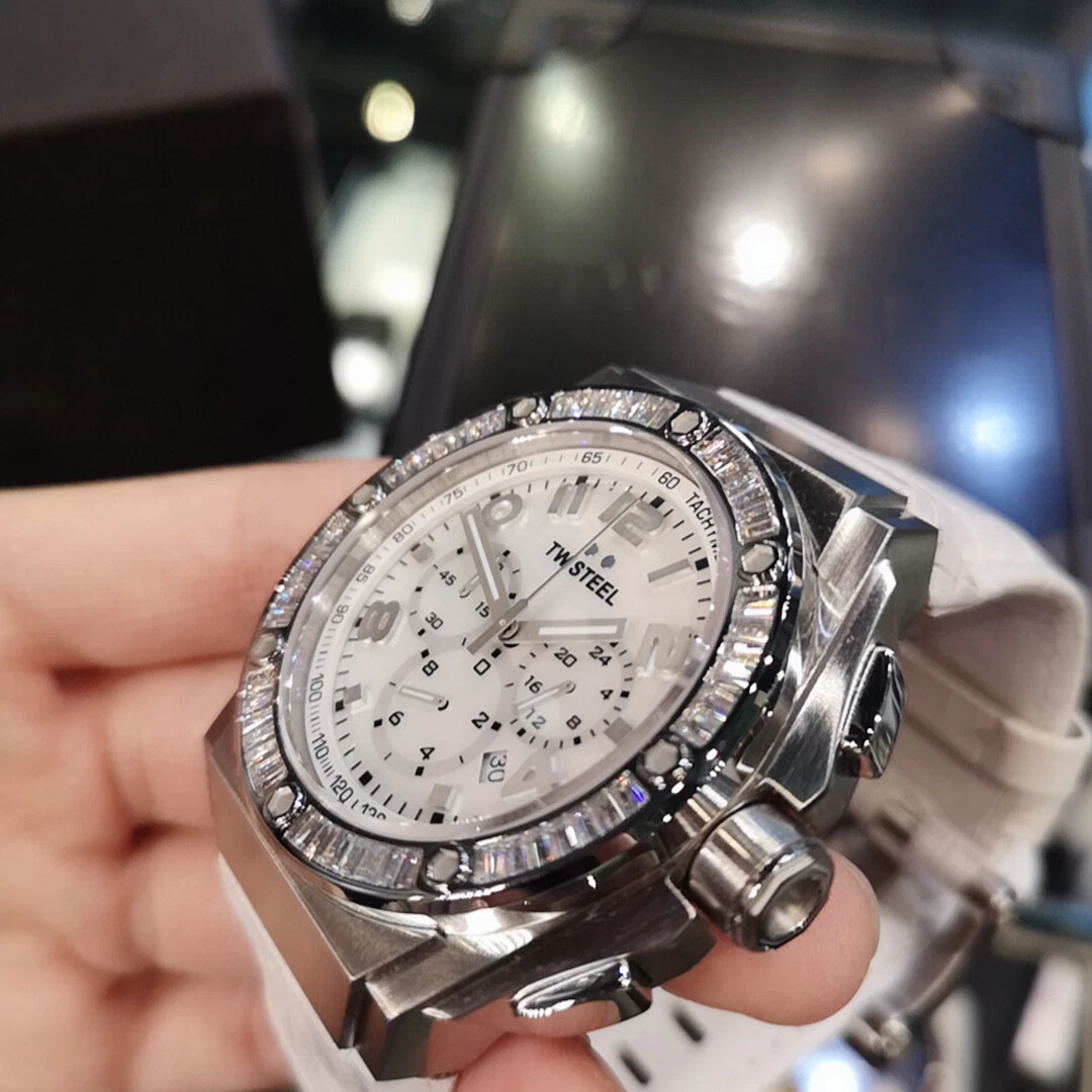 TW Steel CE4015 CEO Tech White MOP Dial White Leather Strap Chrono NEW IN BOX