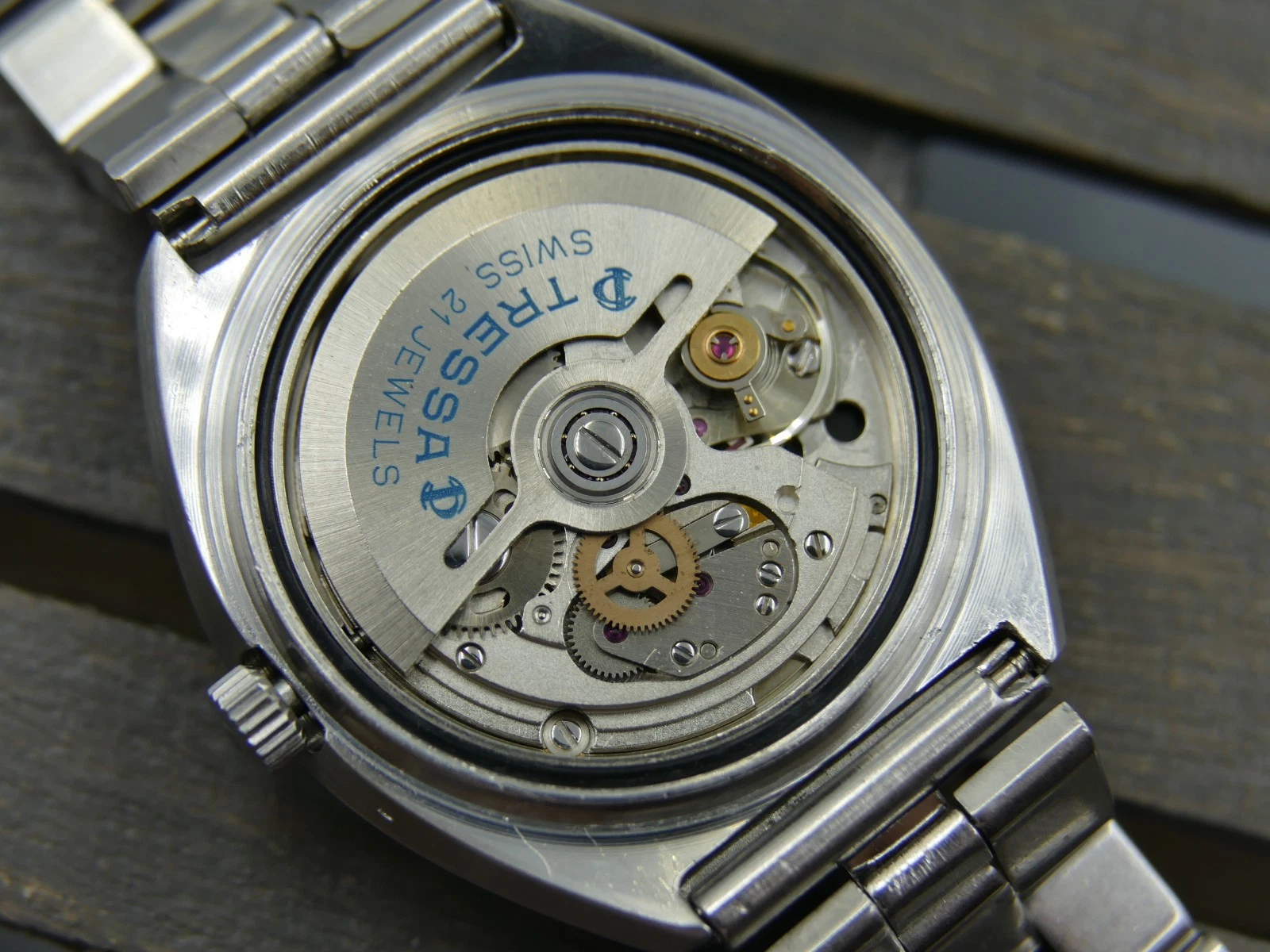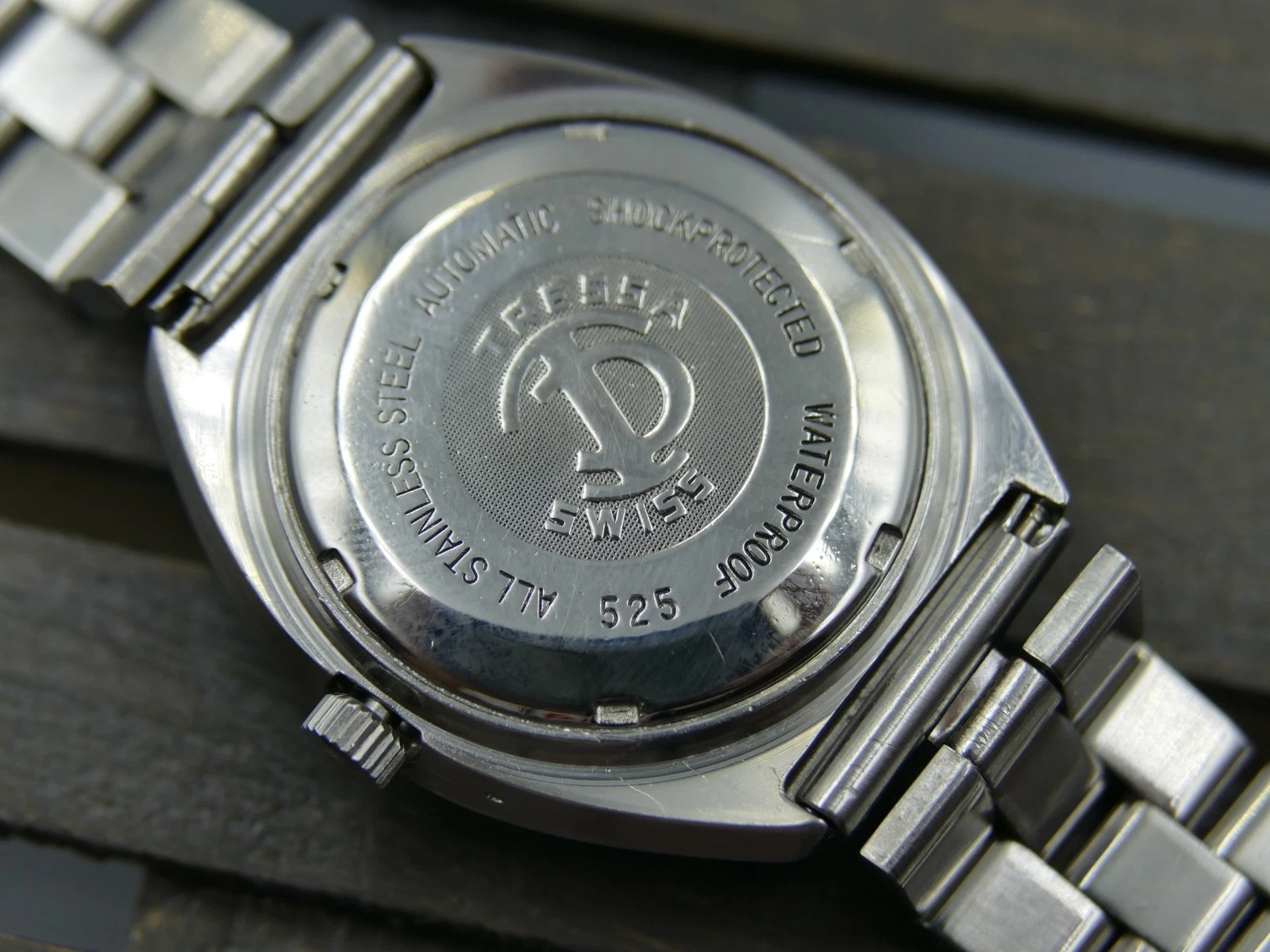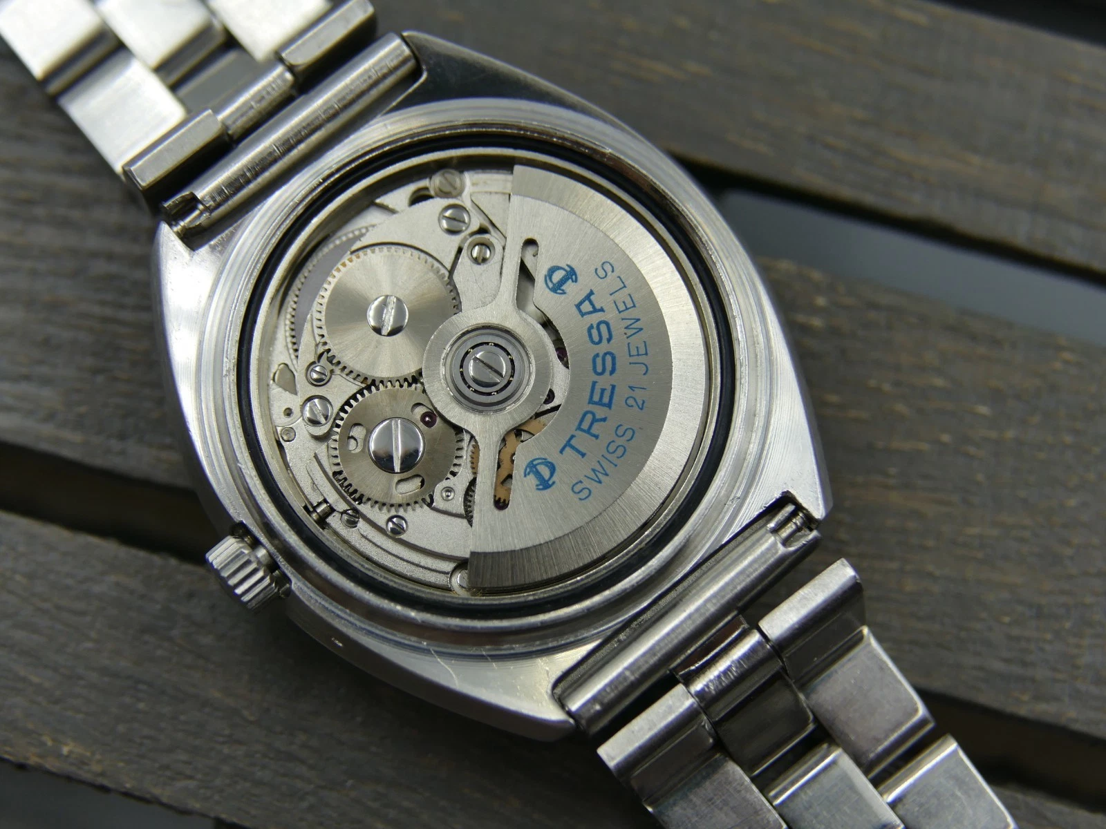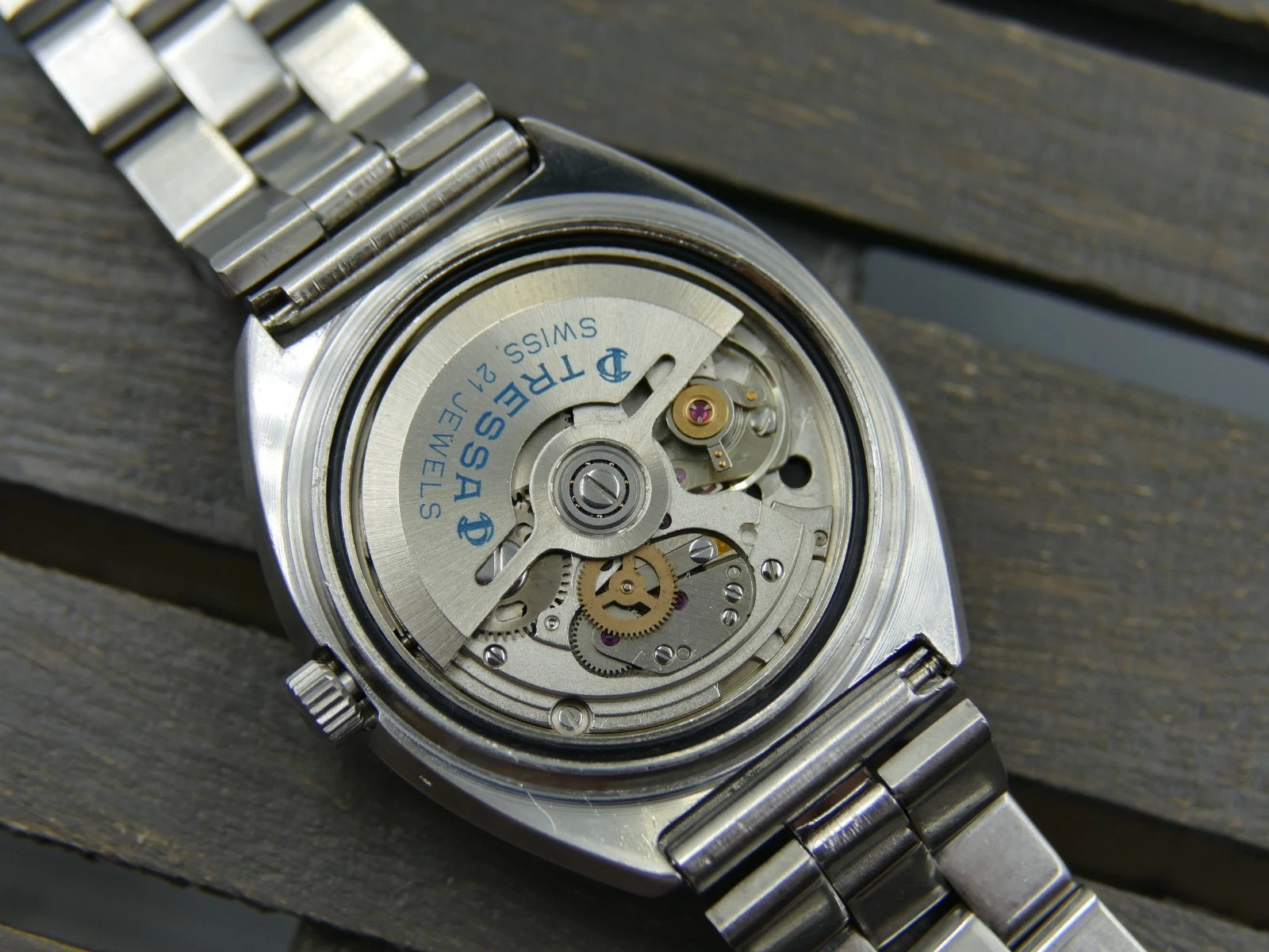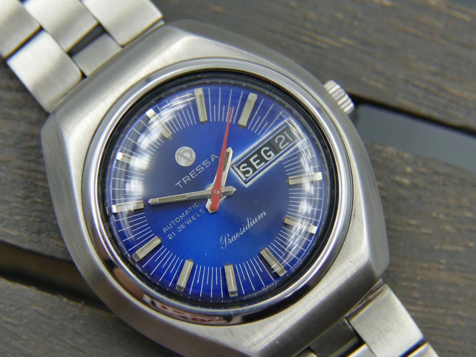 vintage watch mens TRESSA Automatic 21J Praesidium 525 all steel blue dial RARE