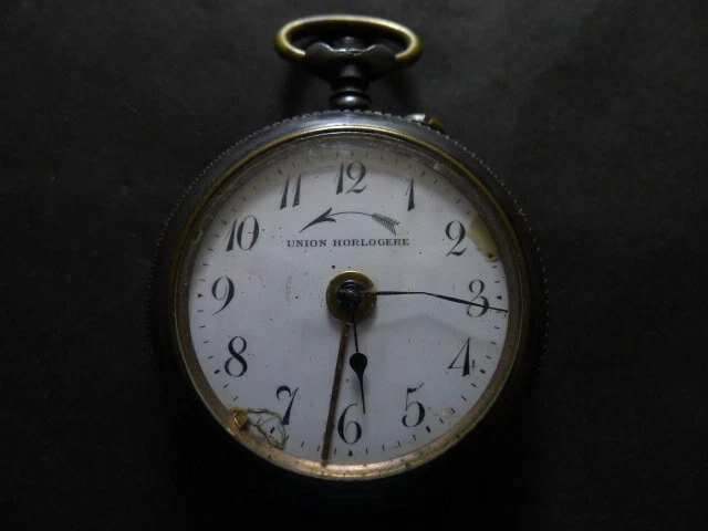 C 1900s Union Horlogere Pocket Watch. 50mm. Hand Wind. Enamel Dial..TLC..