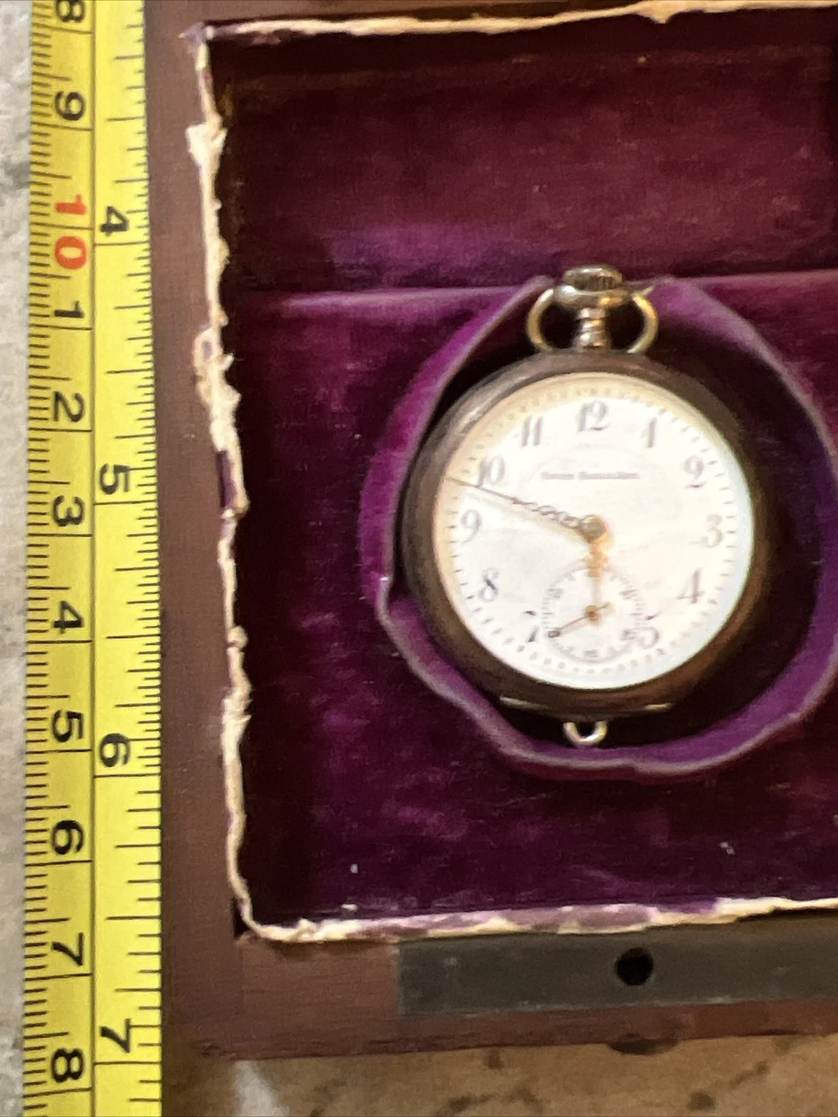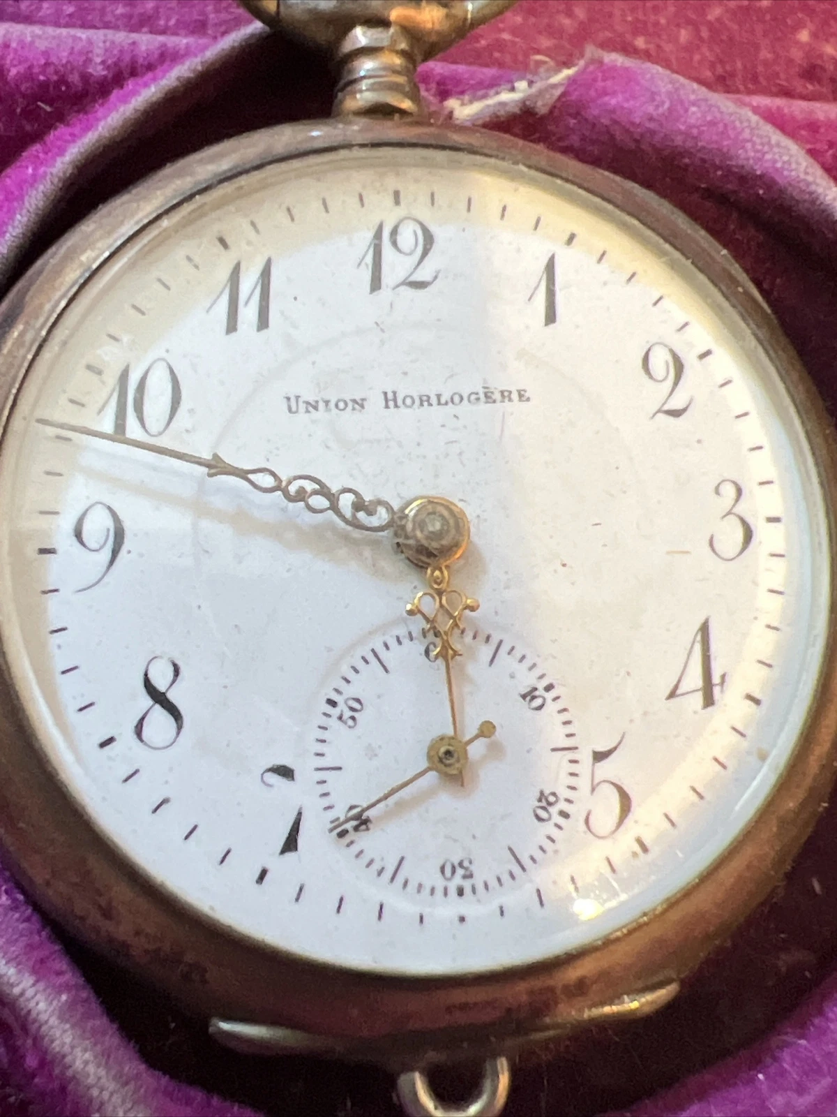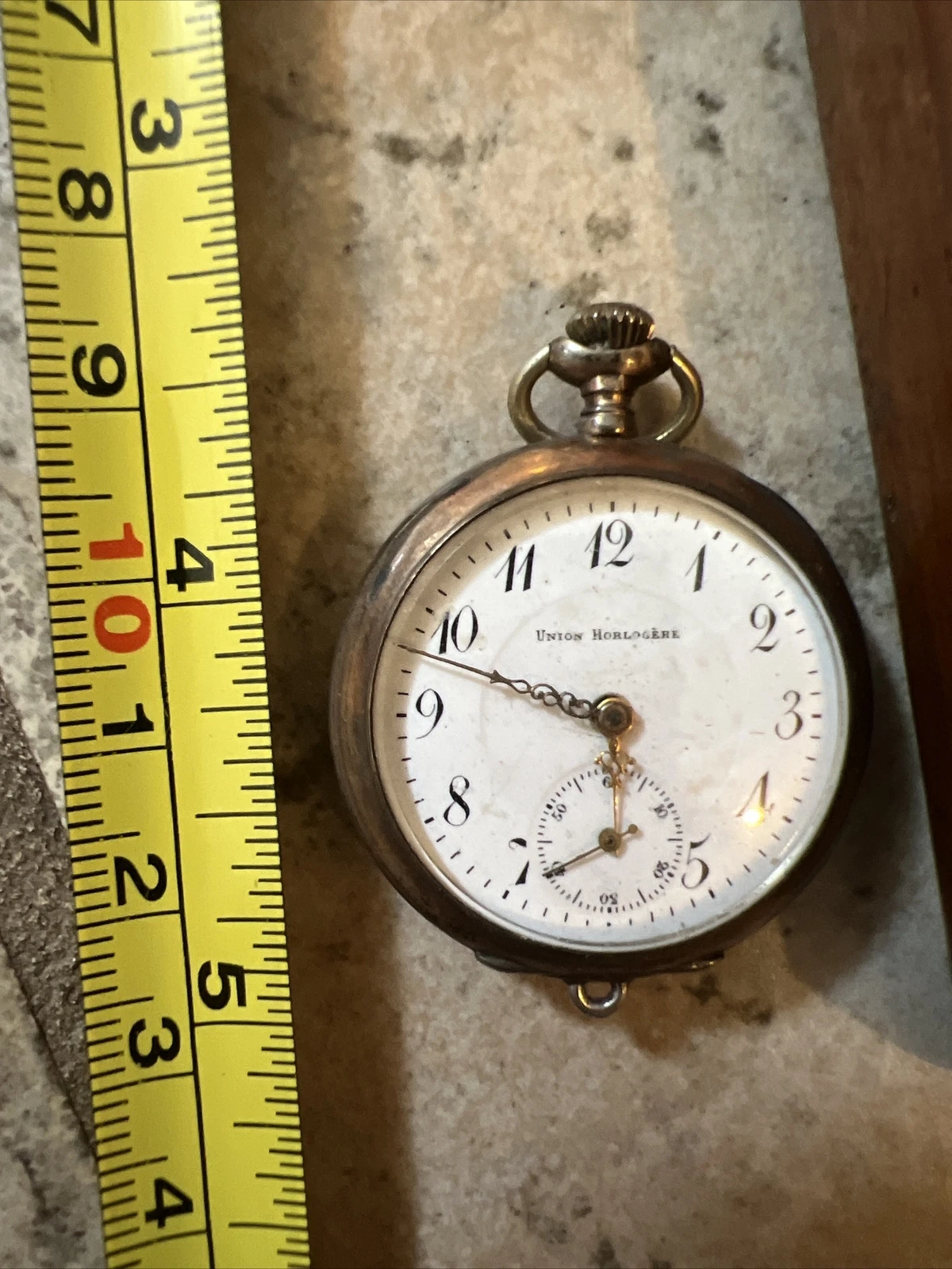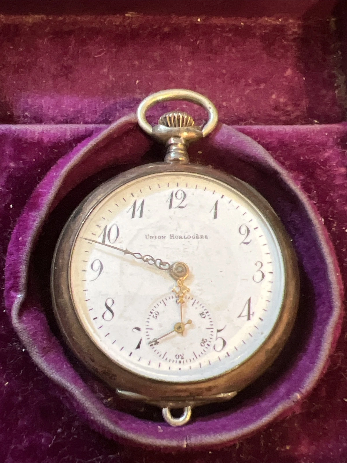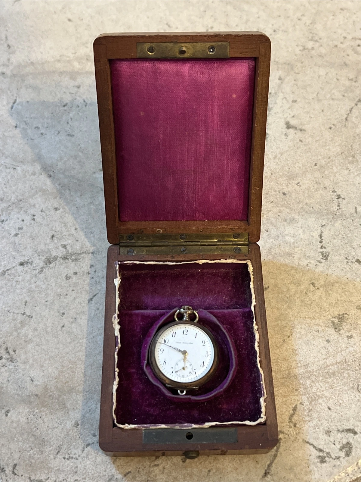 Union horlogere pocket watch RARE Untested Small In Original Union Wood Box