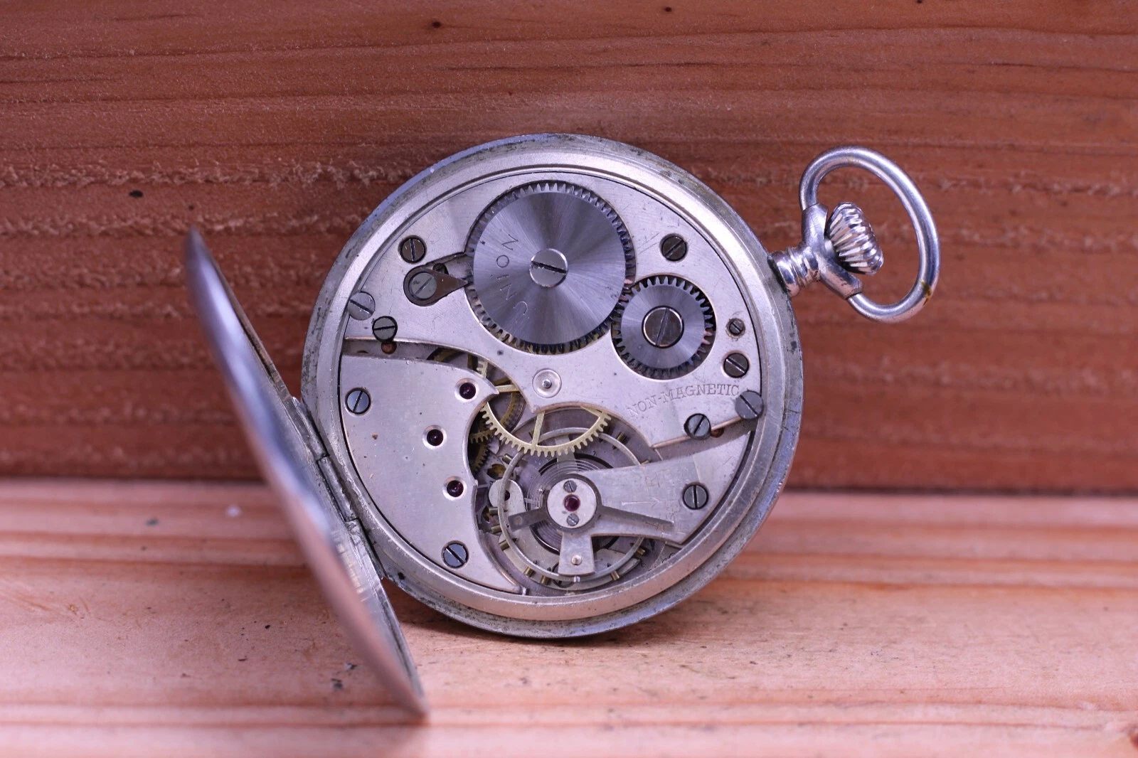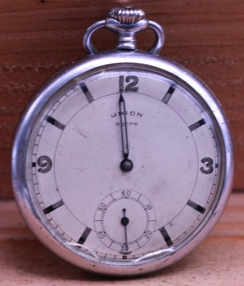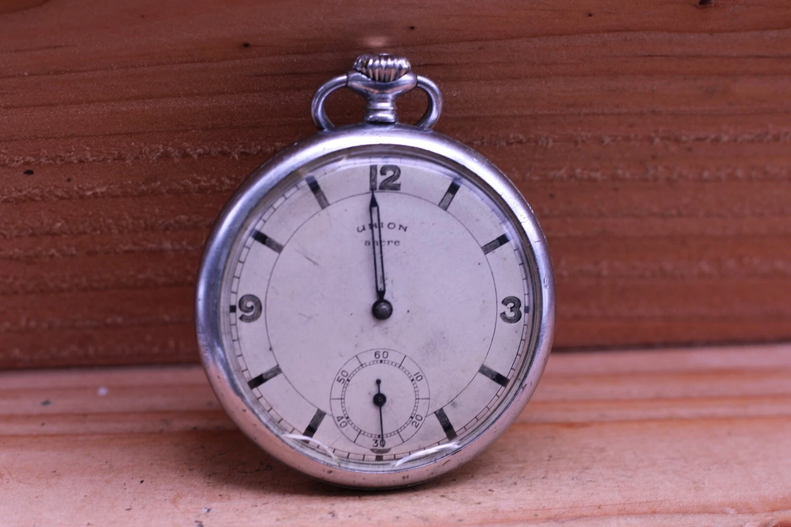 UNION ANCRE ART DECO SWISS HIGH GRADE POCKET WATCH 47.3mm FOR REPAIR (CP)
