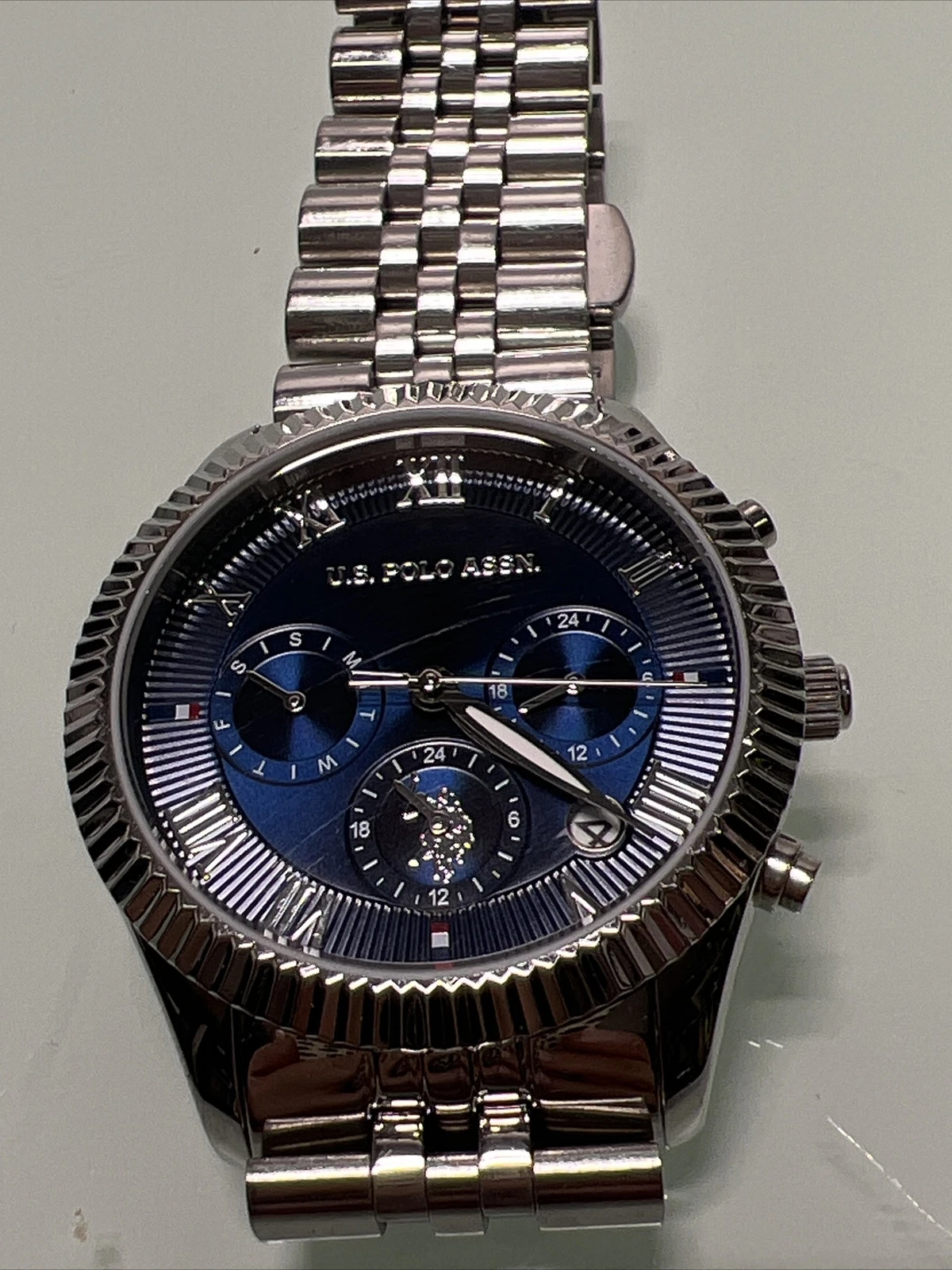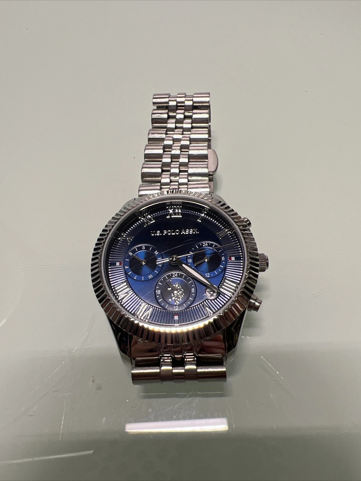 U.S. Polo Assn. Classic Men's Quartz Metal and Alloy Watch silver with blue face
