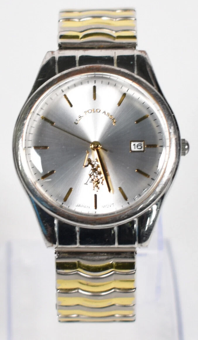 U.S. POLO ASSN. Men's Watch Analog Date Two Tone Stretch Band 38mm #A044