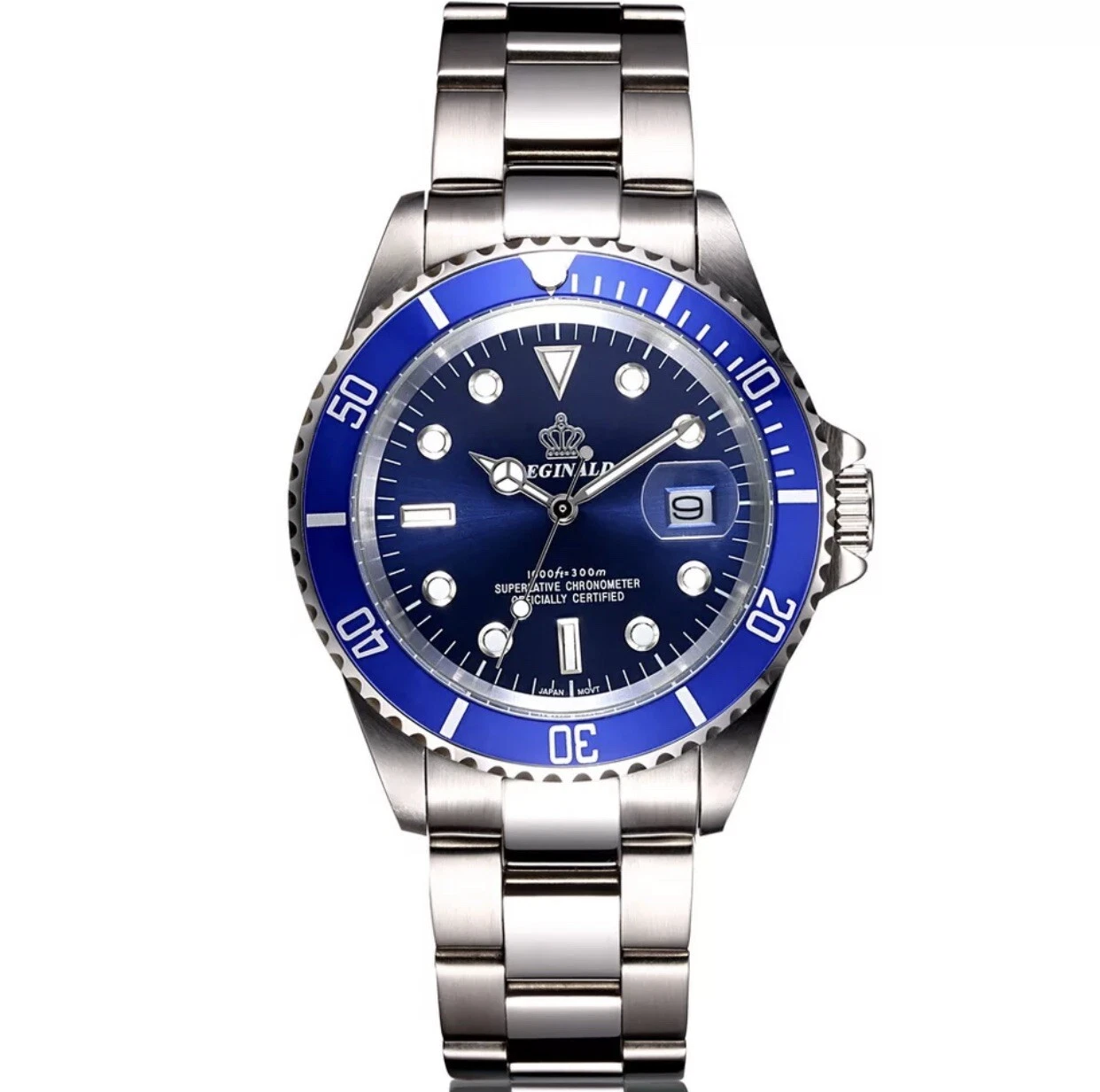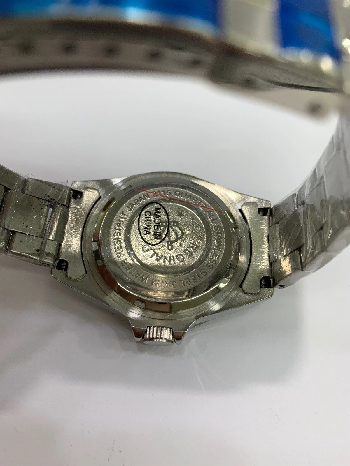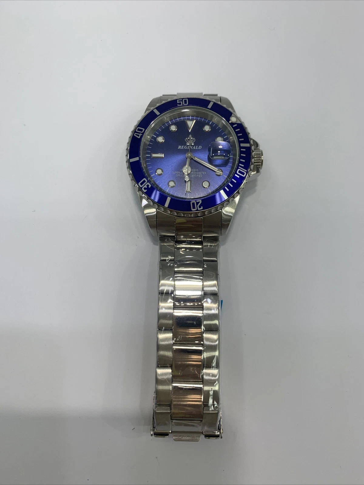 Reginald Mens Wrist Watch Silver Blue Navy White Analog Quartz New Battery. New