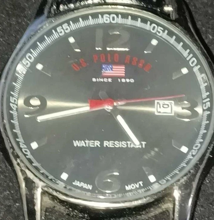 Analog wrist watch US Polo, black working early 2000s gunmetal silver date,...
