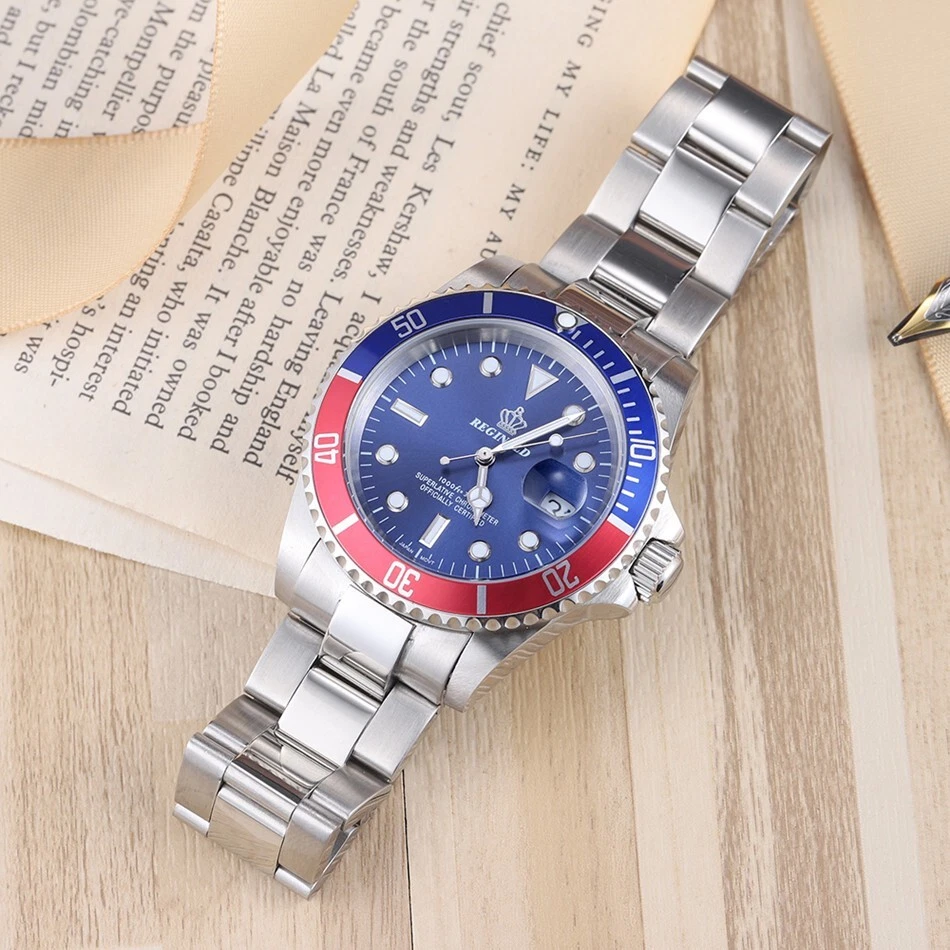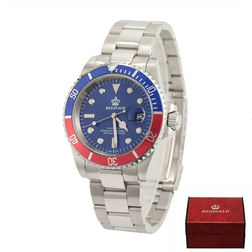 40MM REGINALD Quartz Men's Watch Diver Rotatable Bezel Stainless Waterproof NEW